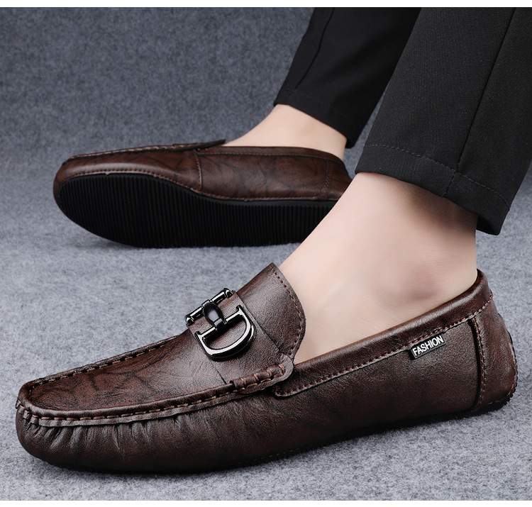 Transmisión en vivo de zapatos Bean para hombres de cuero de vaca transfronterizos de alta calidad perezosos zapatos casuales de un pie zapatos Lefour transpirables