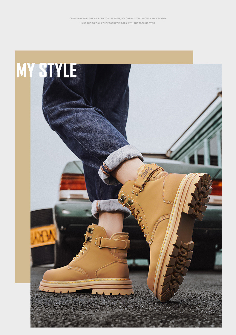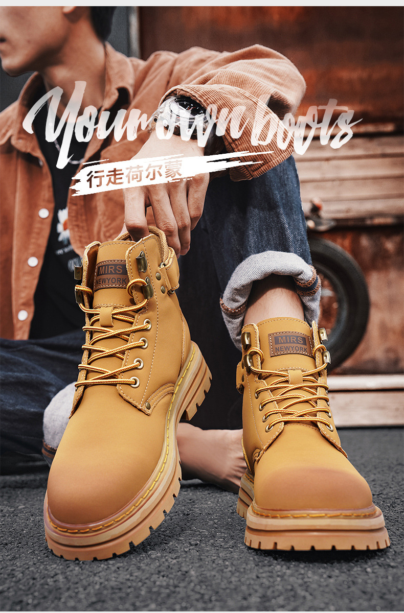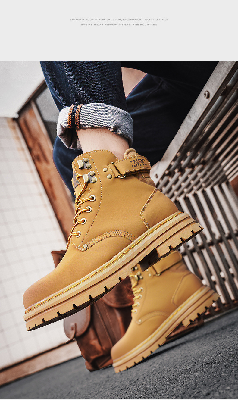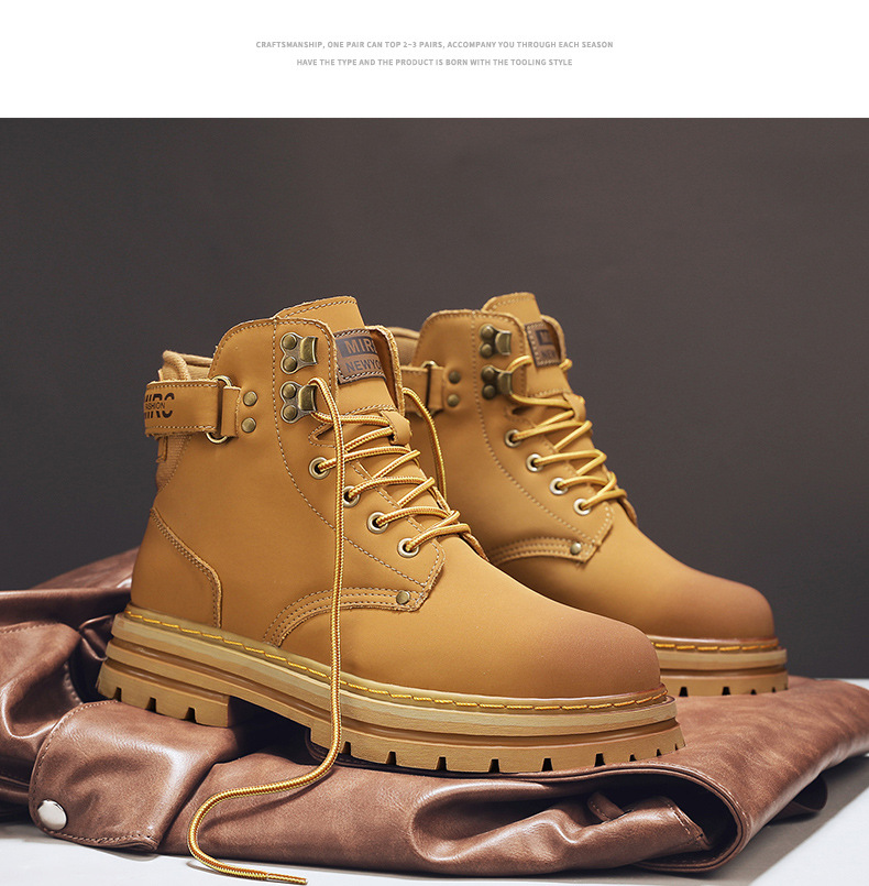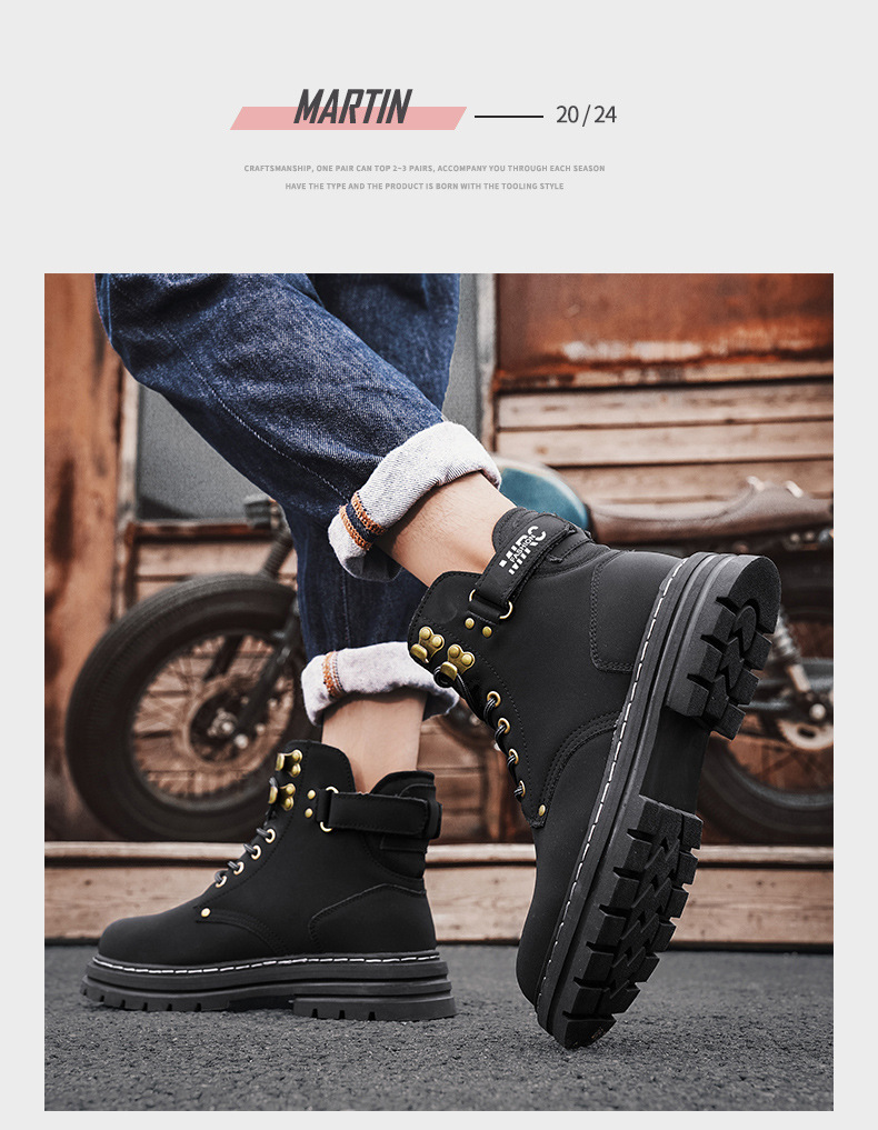 2025 otoño y invierno nuevos hombres botas de cuero casuales al aire libre botas Martin calientes para calentar el uso de zapatos altos