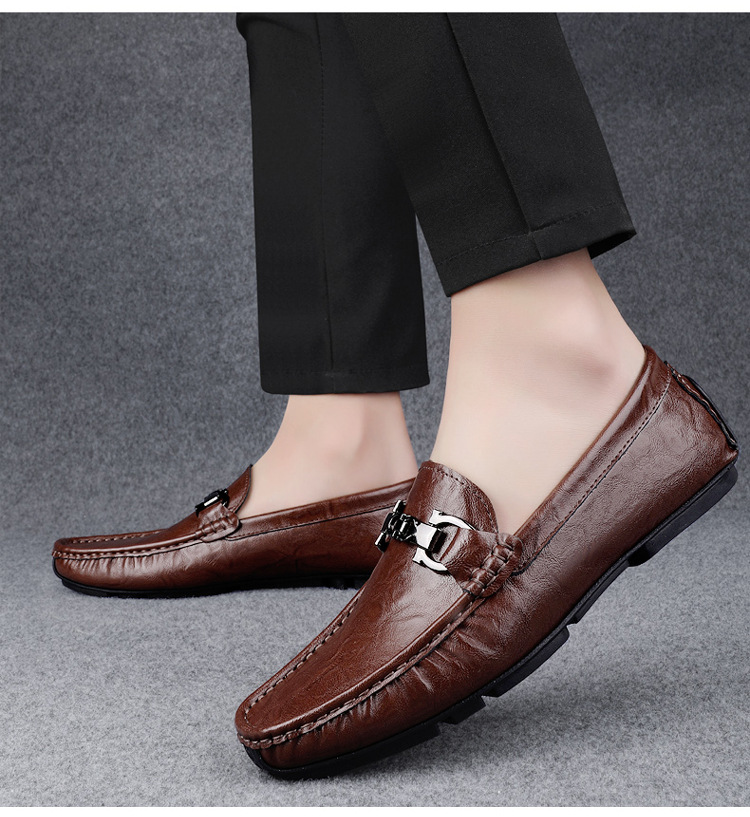 Zapatos de cuero casuales de lujo ligero de cuero de un pie de calzado de conducción de un hombre zapatos de Lefour de suela suave