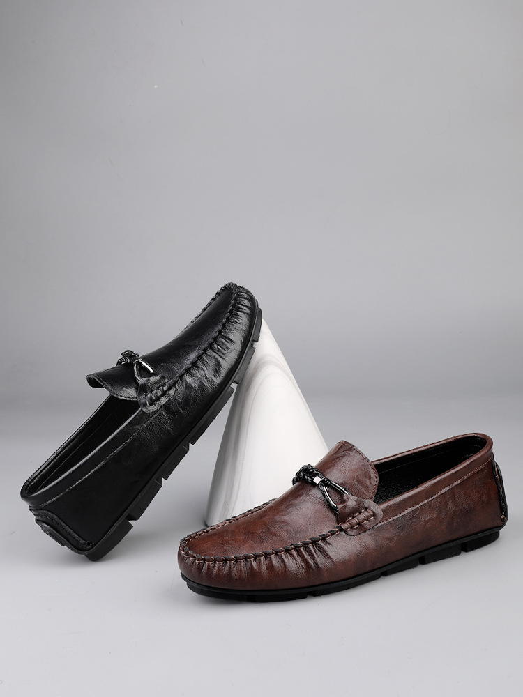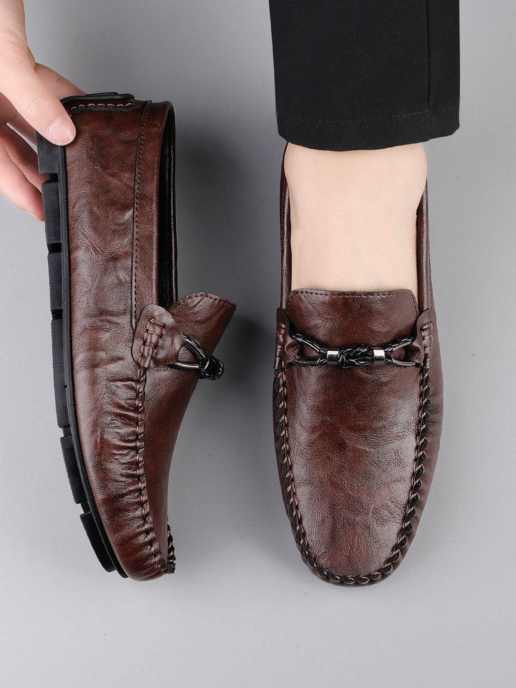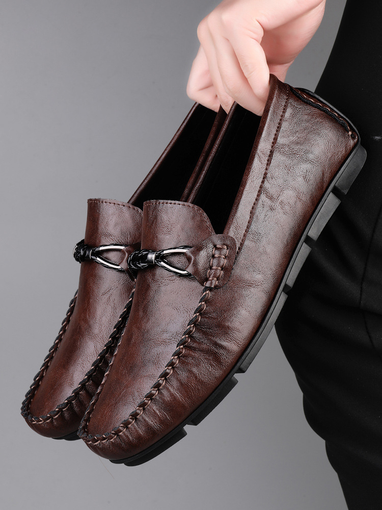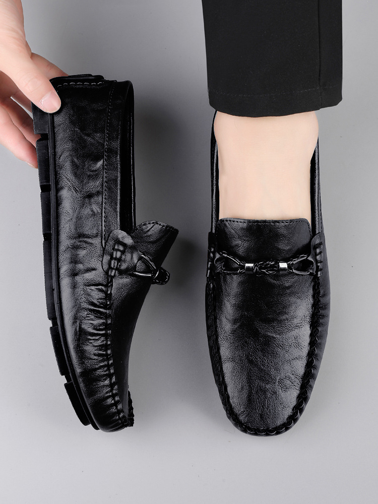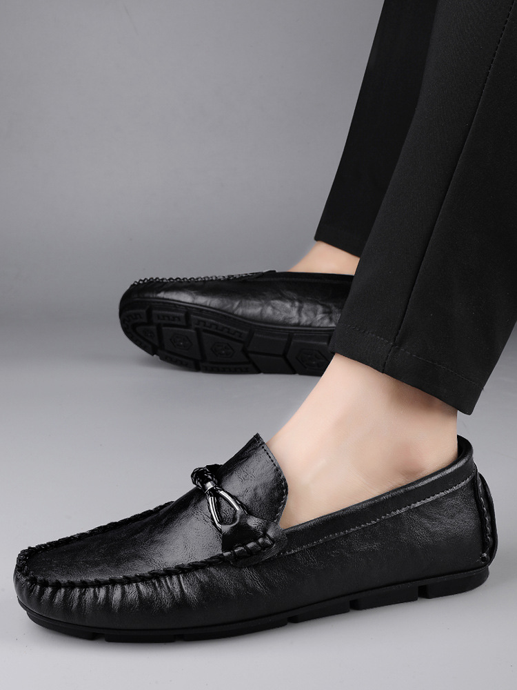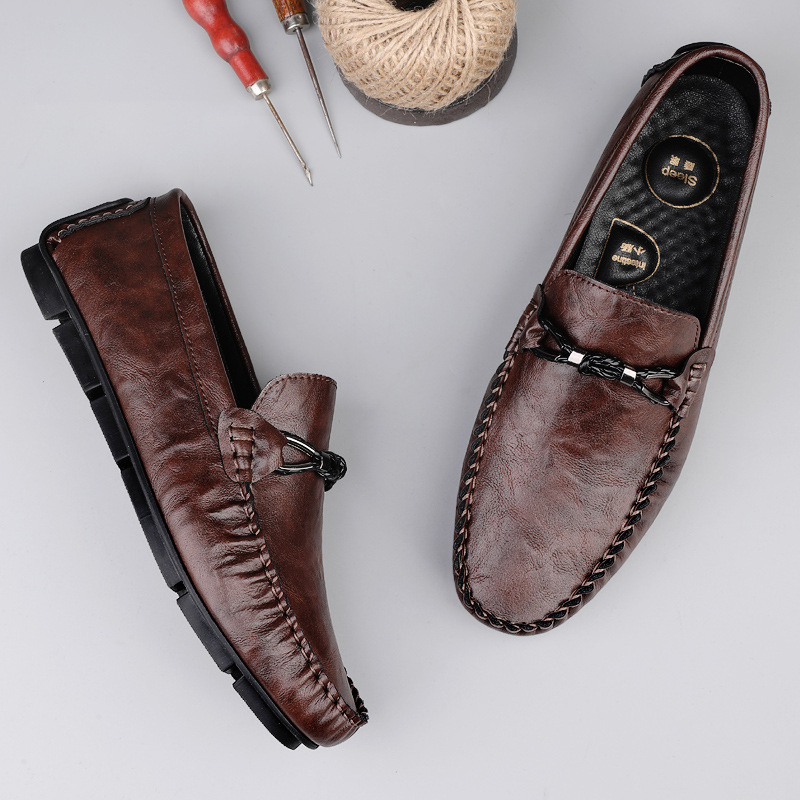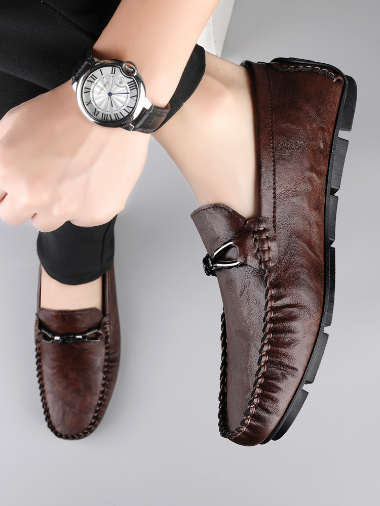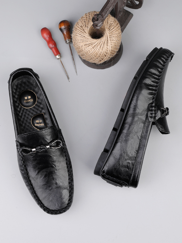 Zapatos de hombre de cuero real 2025 nuevos zapatos de negocios británicos transpirables con suela suave zapatos casuales perezosos con un pie zapatos para hombre