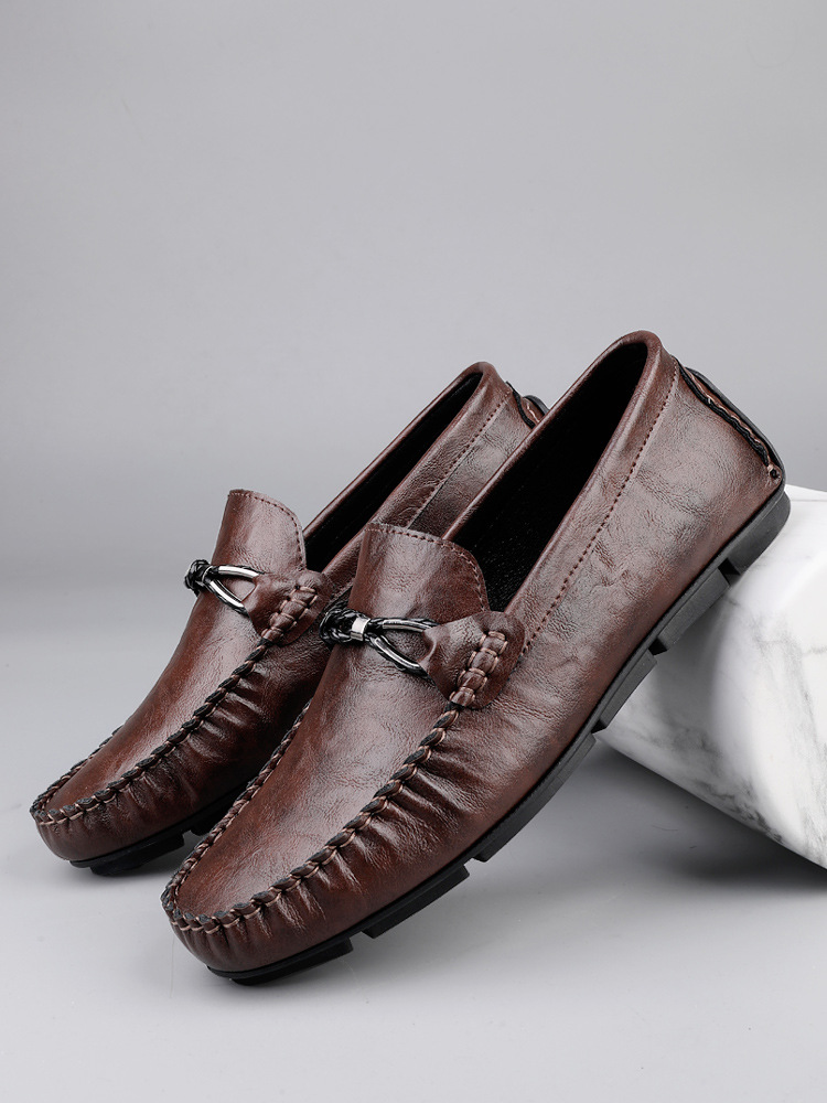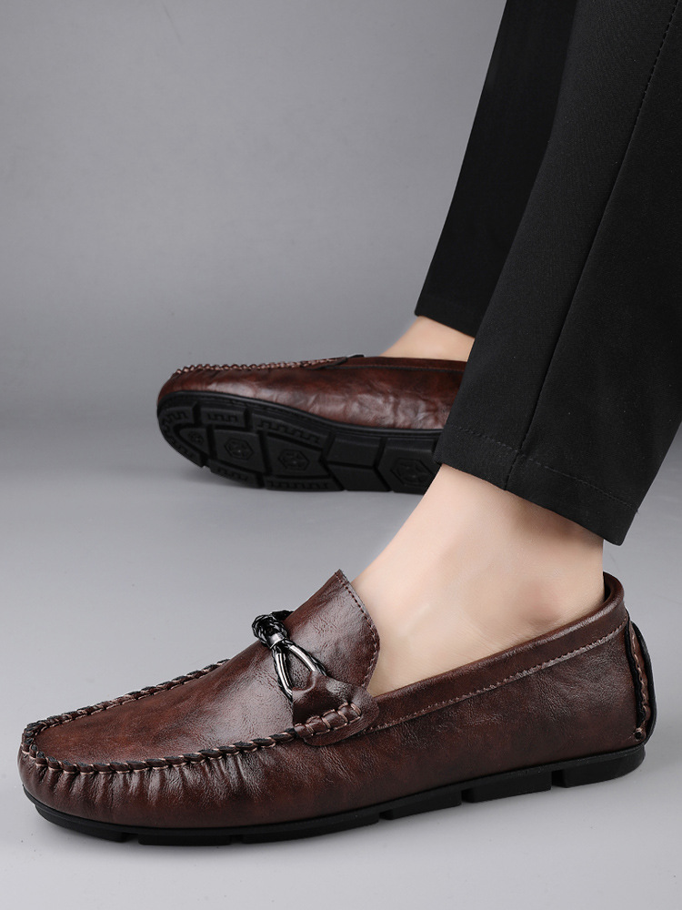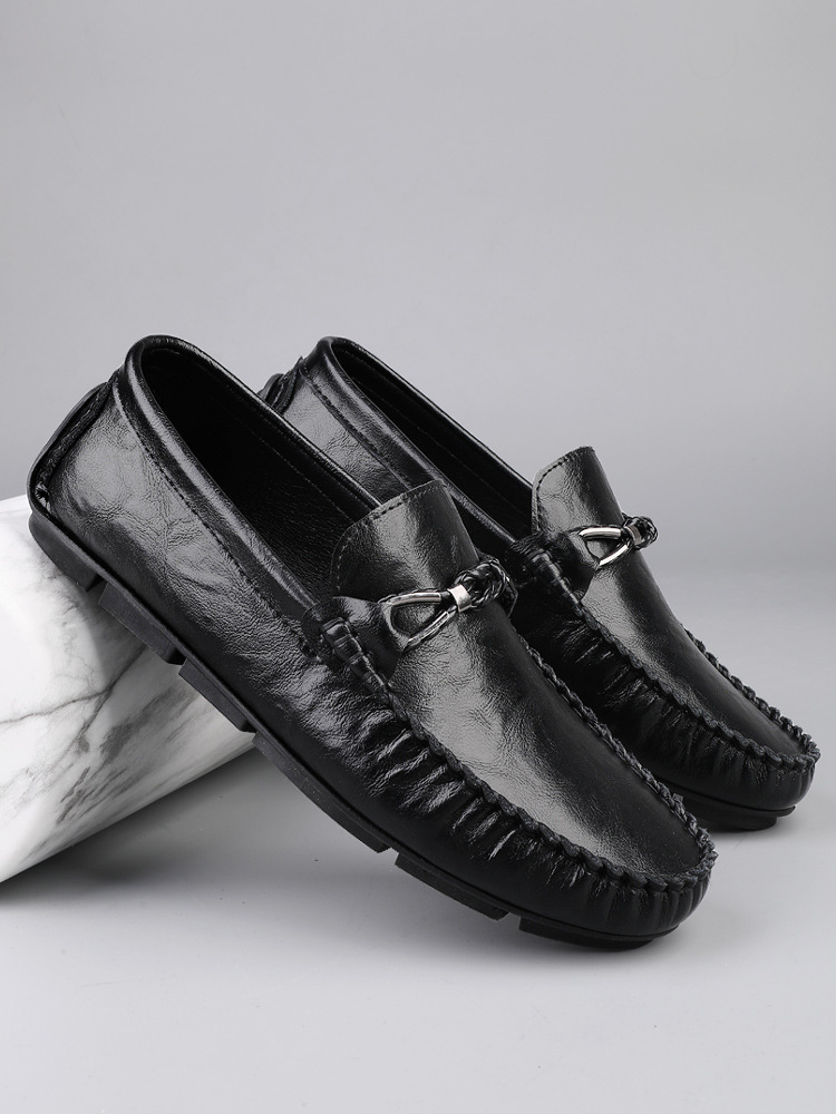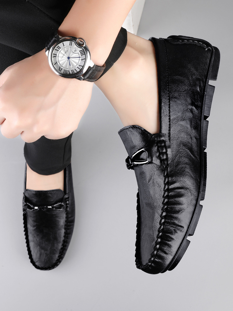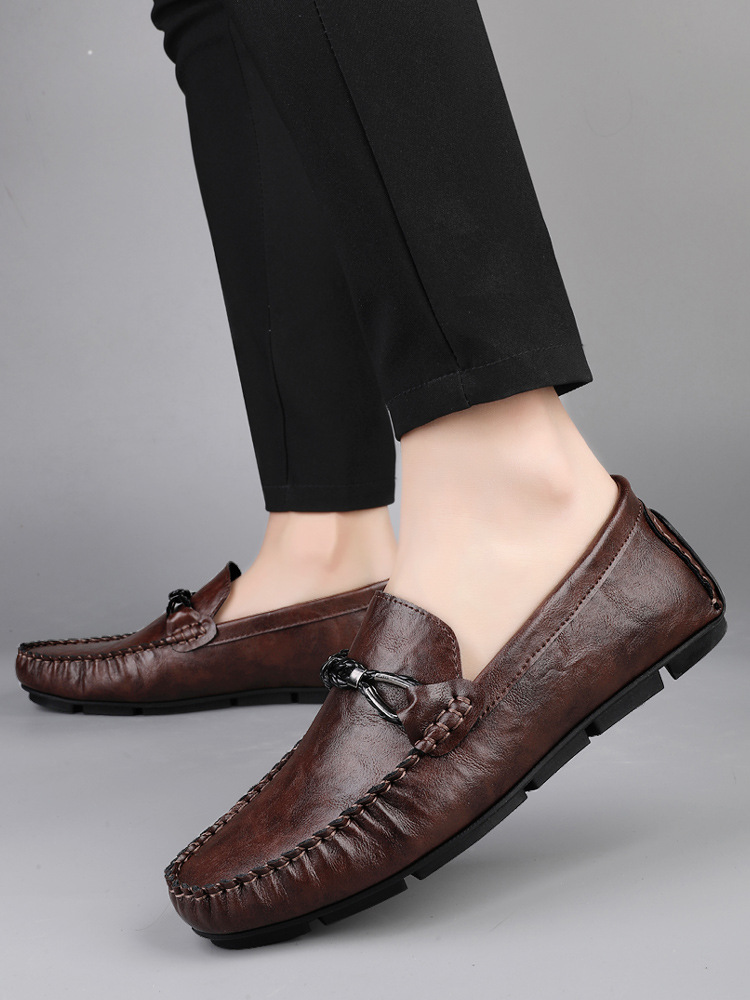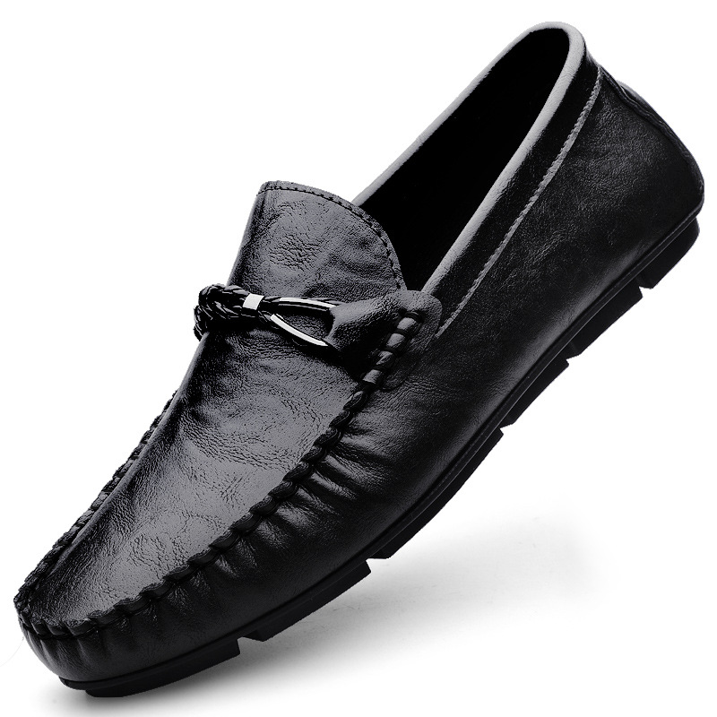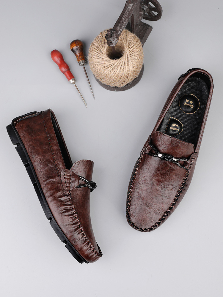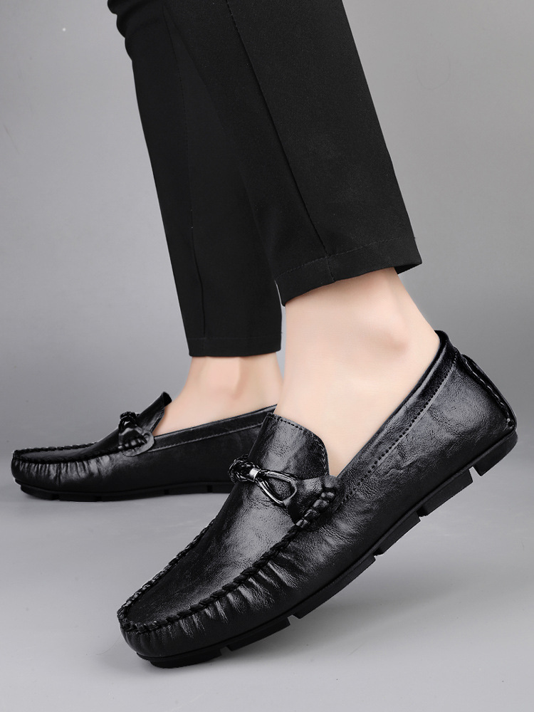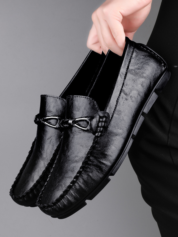 Zapatos de hombre de cuero real 2025 nuevos zapatos de negocios británicos transpirables con suela suave zapatos casuales perezosos con un pie zapatos para hombre