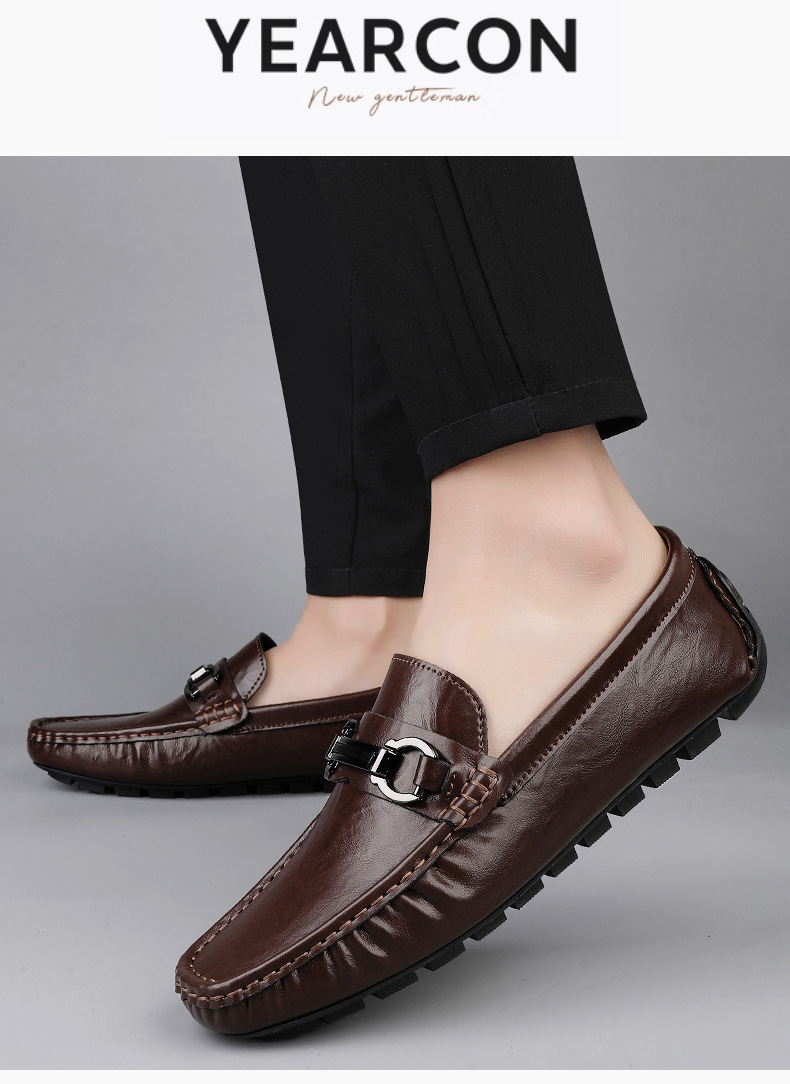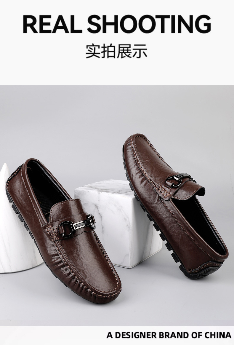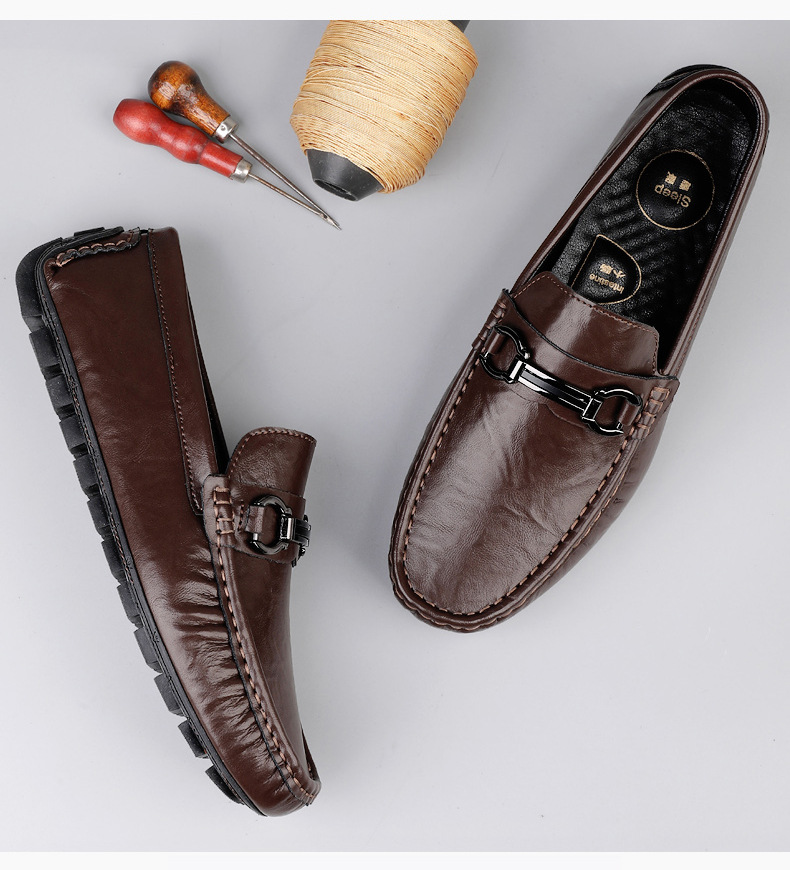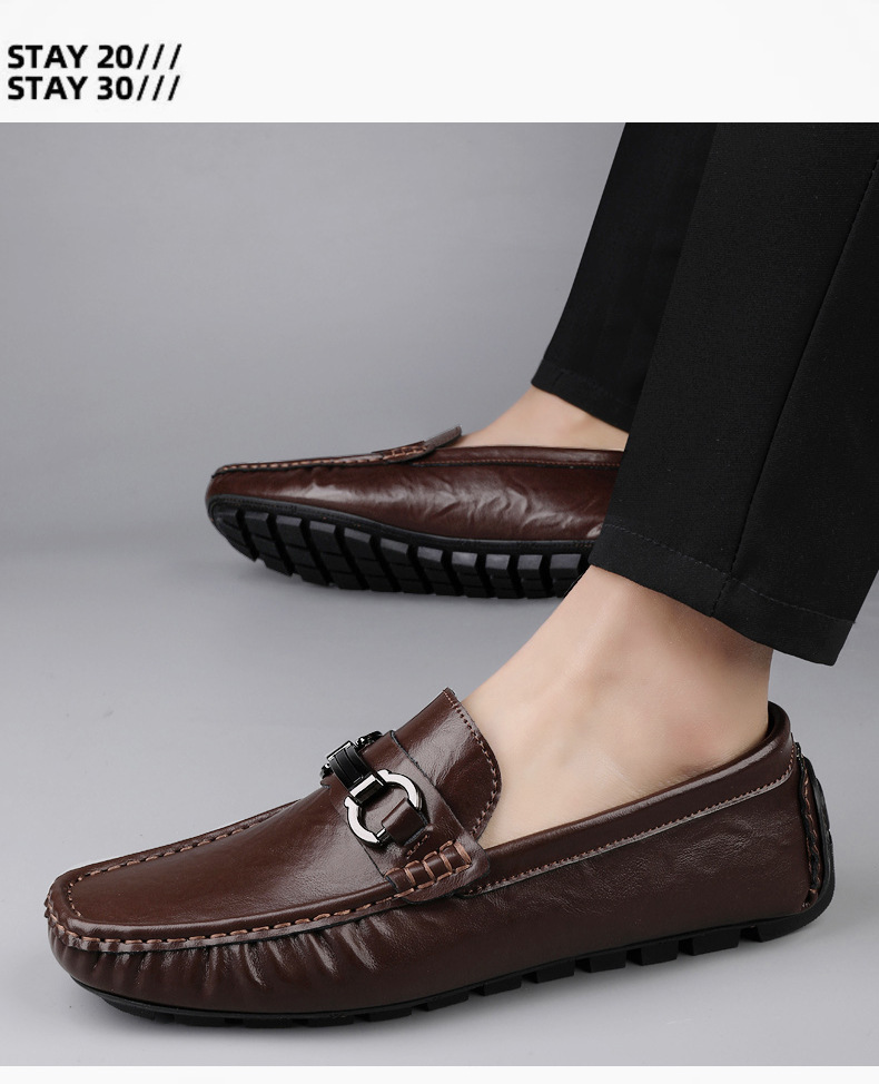 Zapatos de hombre de cuero real 2025 nuevos zapatos de negocios británicos transpirables con suela suave zapatos casuales perezosos con un pie zapatos para hombre