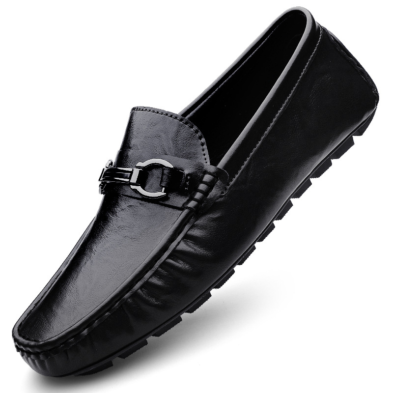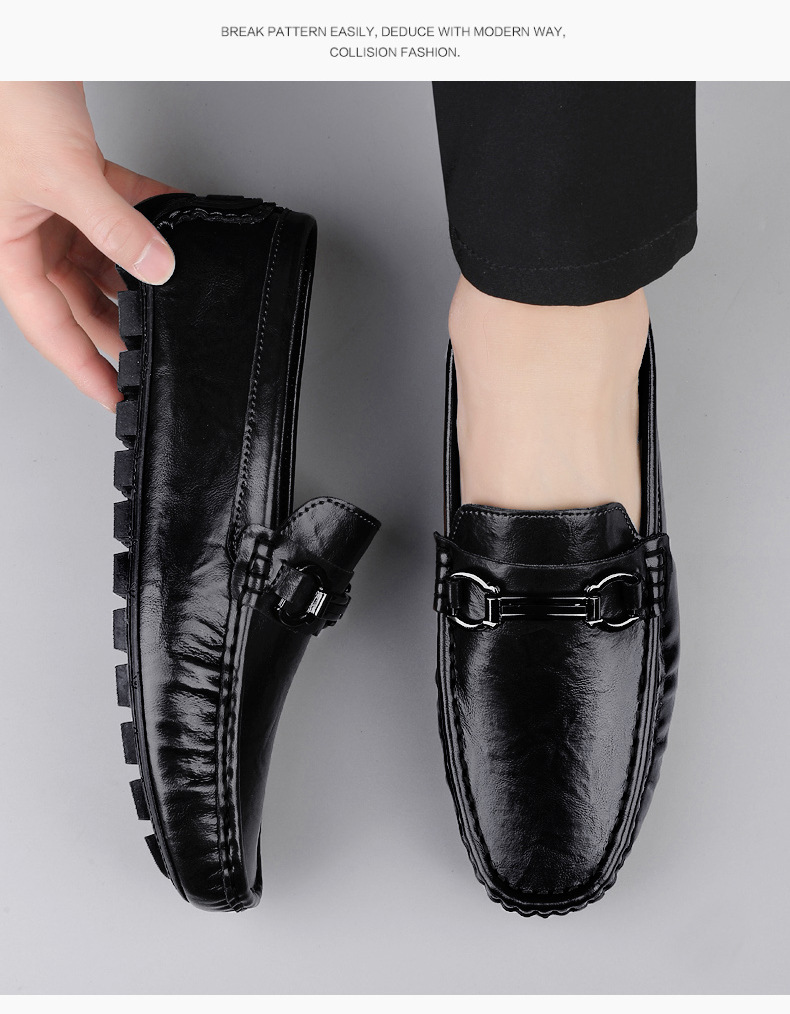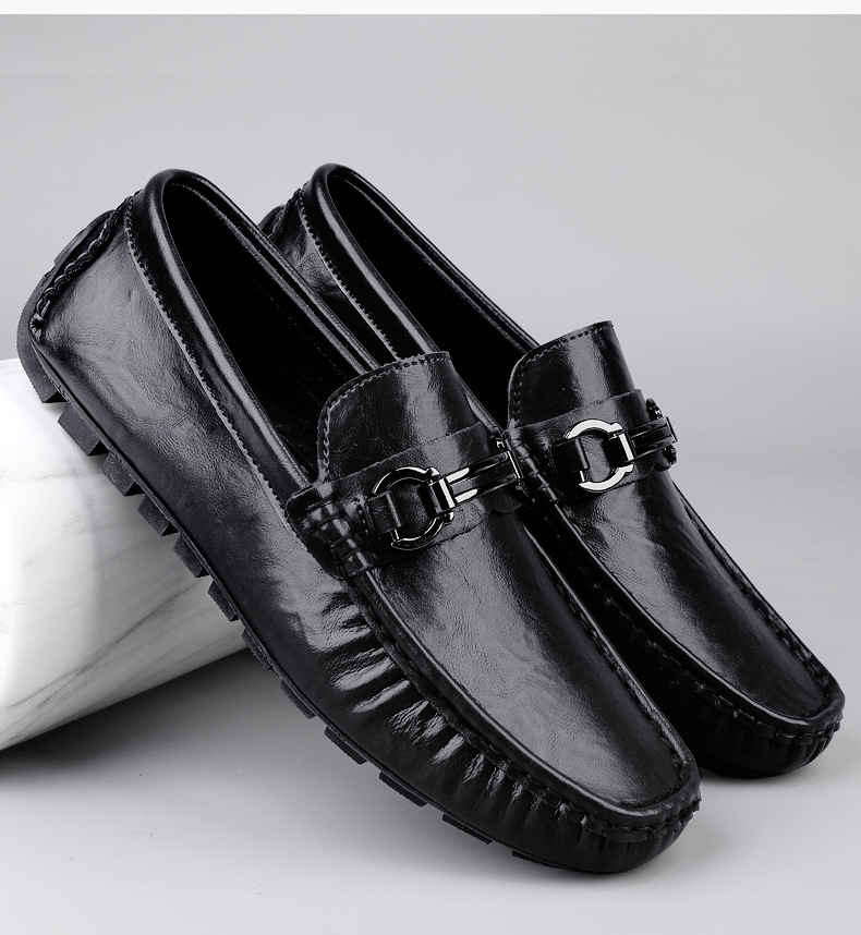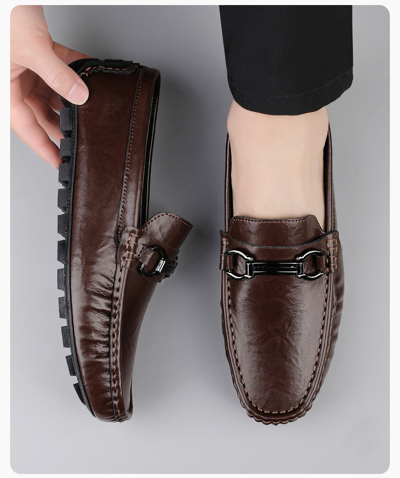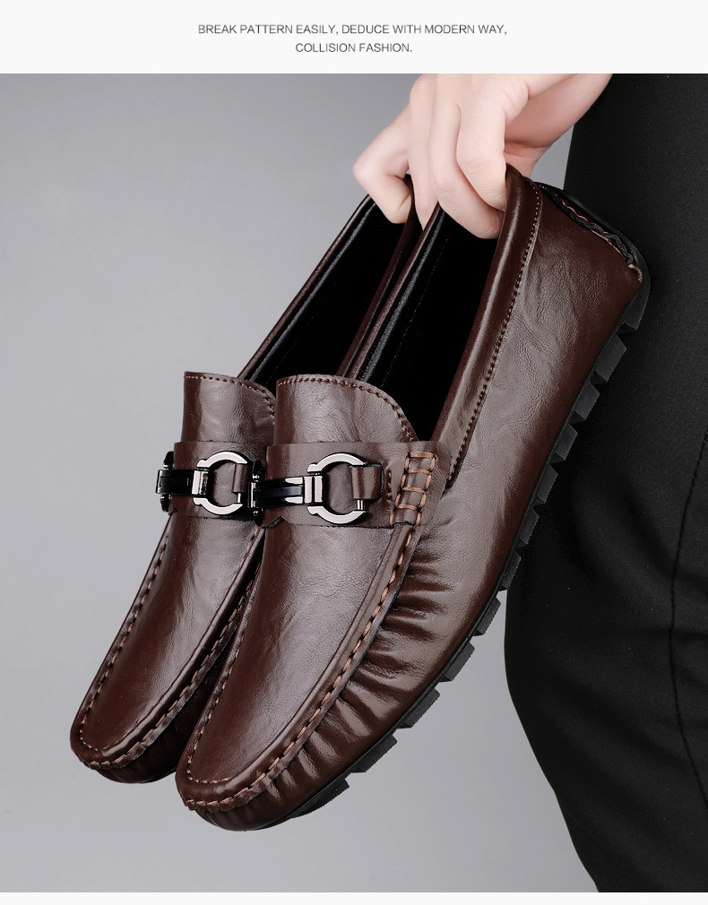 Zapatos de hombre de cuero real 2025 nuevos zapatos de negocios británicos transpirables con suela suave zapatos casuales perezosos con un pie zapatos para hombre