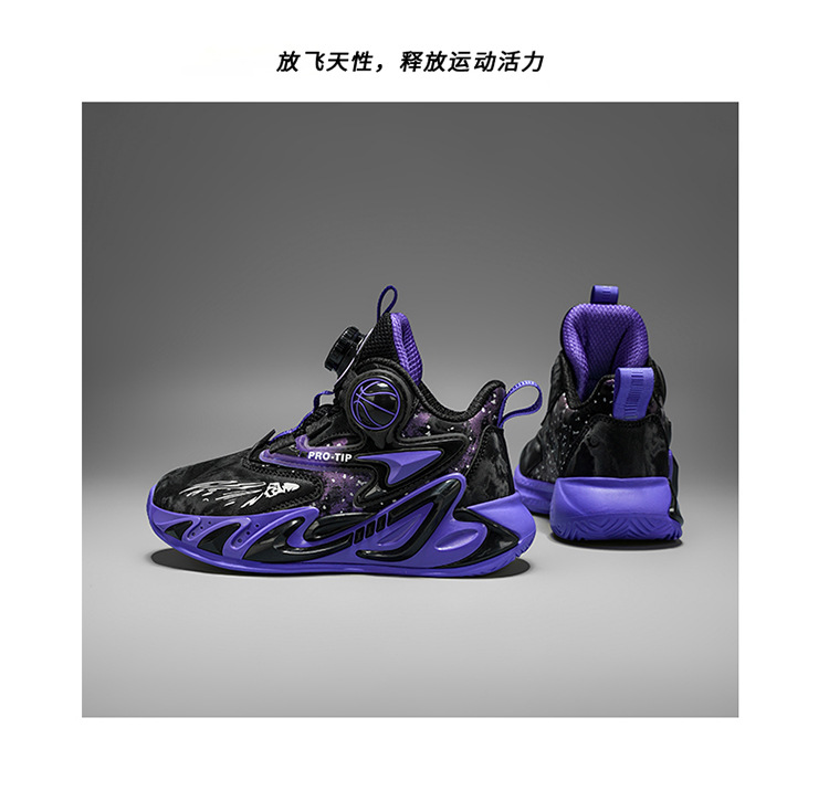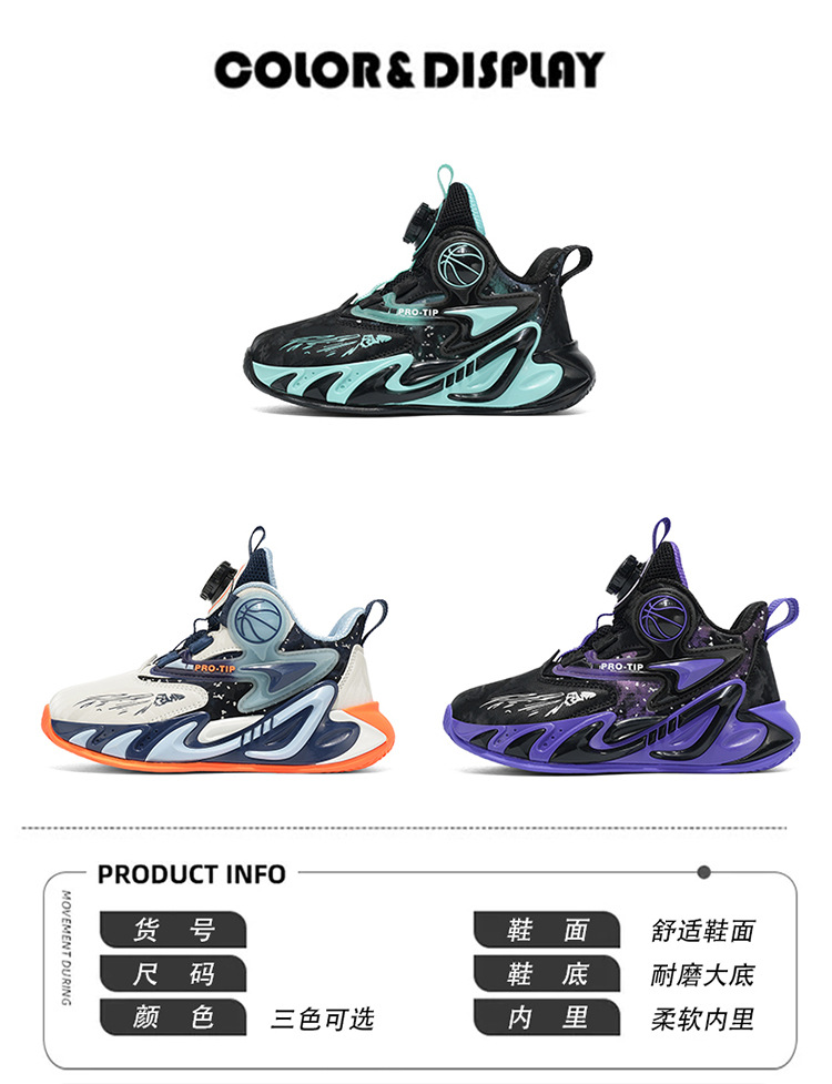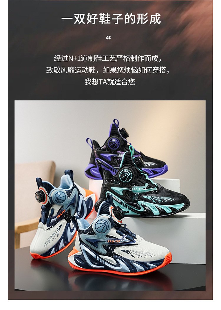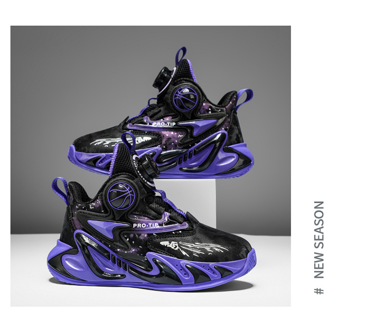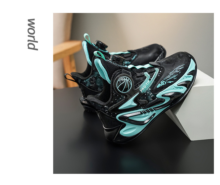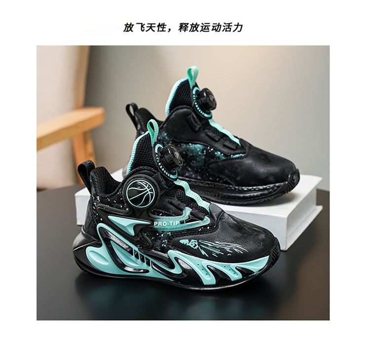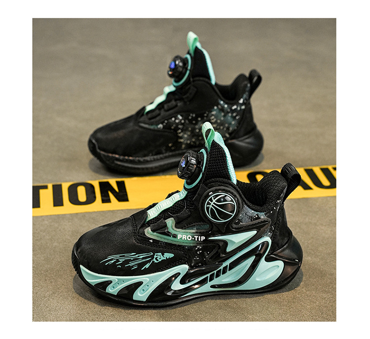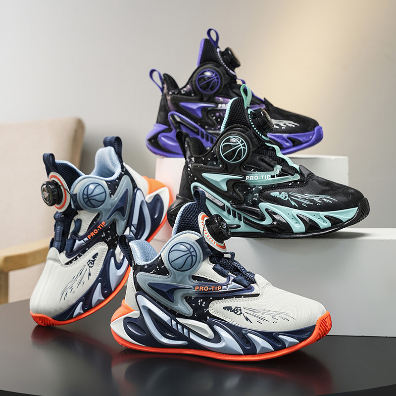 Fábrica de explosión giratoria de hebilla de cuero zapatos de suela gruesa antideslizante zapatos de baloncesto frescos para niños al aire libre