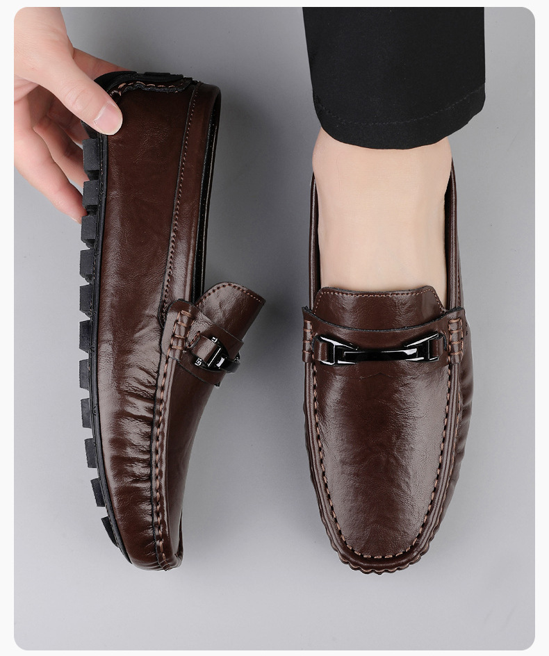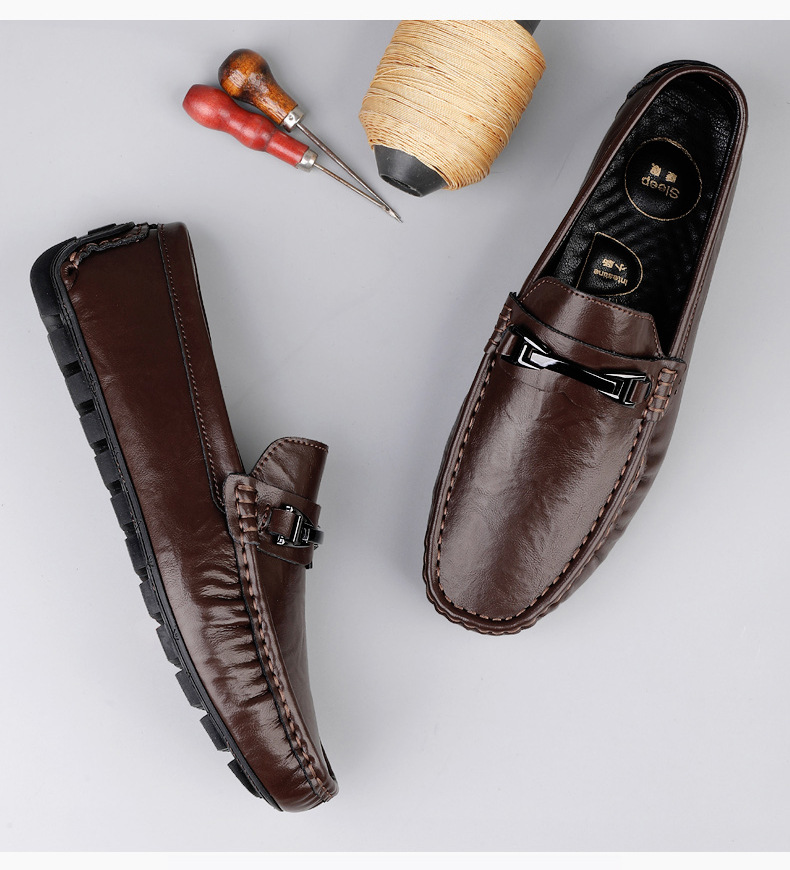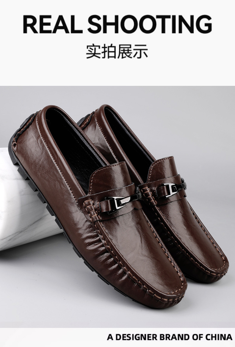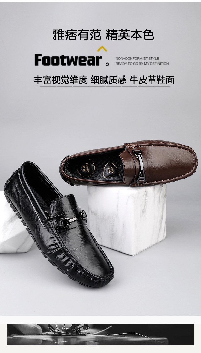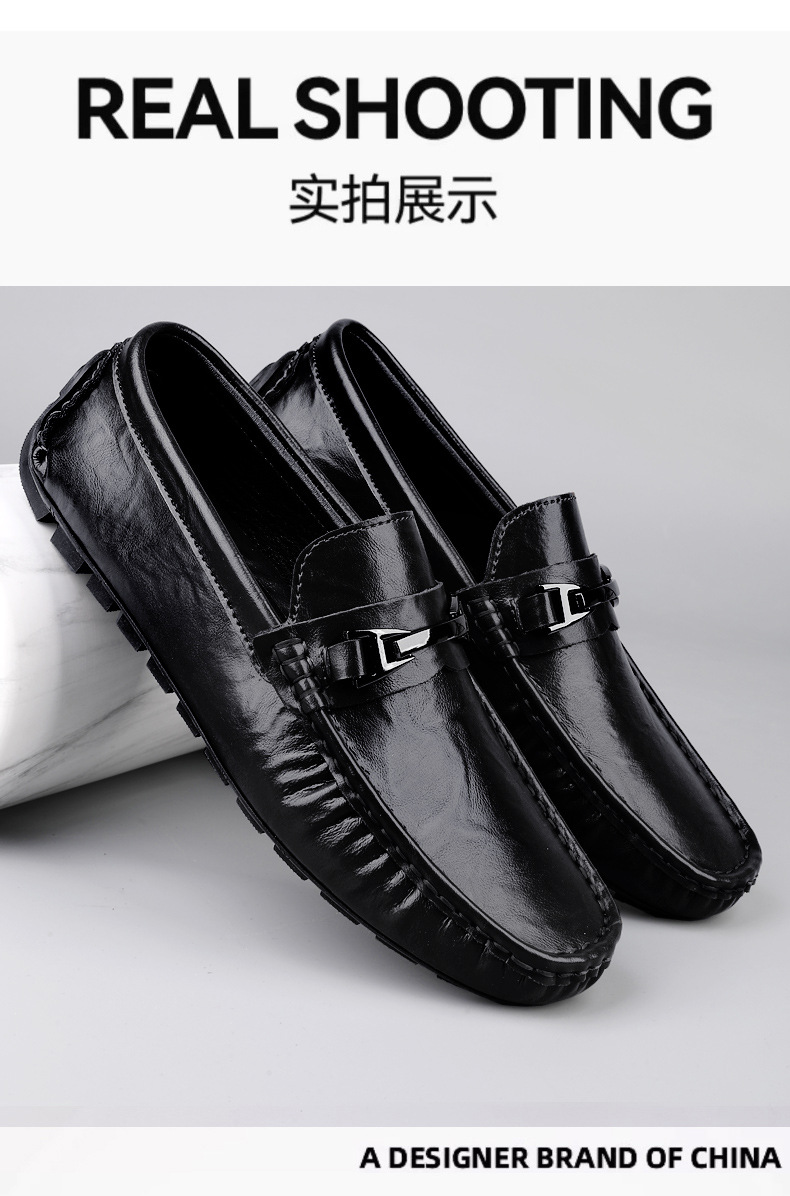 Zapatos de hombre de cuero real 2025 nuevos zapatos de negocios británicos transpirables con suela suave zapatos casuales perezosos con un pie zapatos para hombre