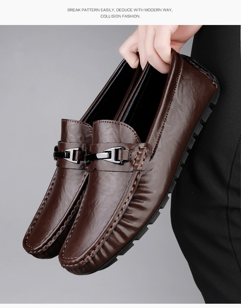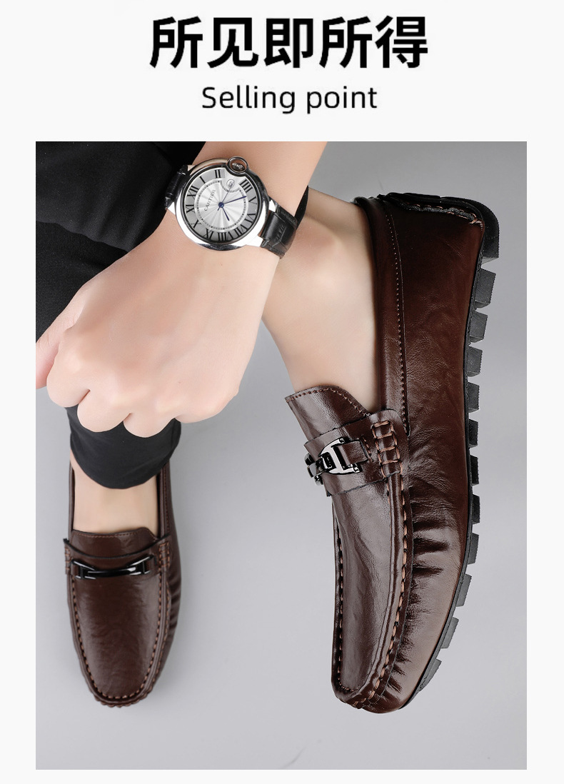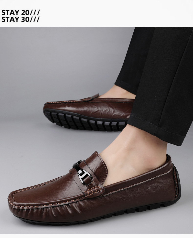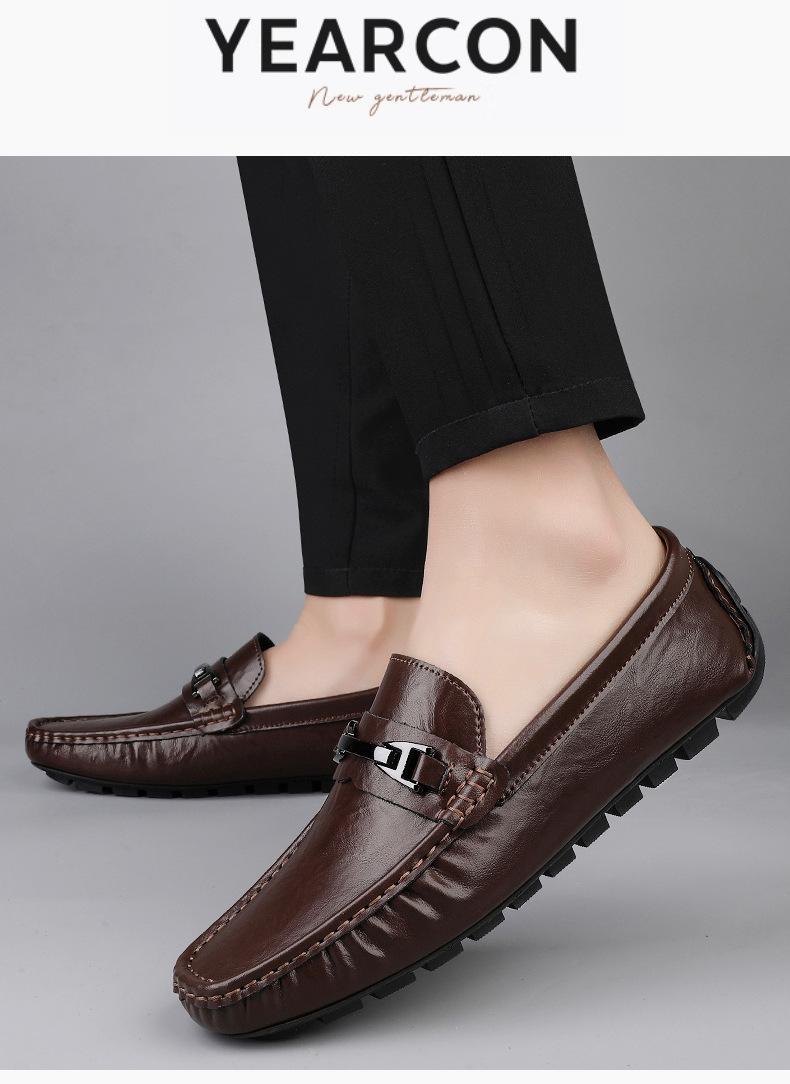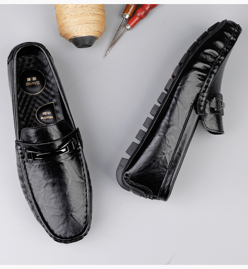 Zapatos de hombre de cuero real 2025 nuevos zapatos de negocios británicos transpirables con suela suave zapatos casuales perezosos con un pie zapatos para hombre