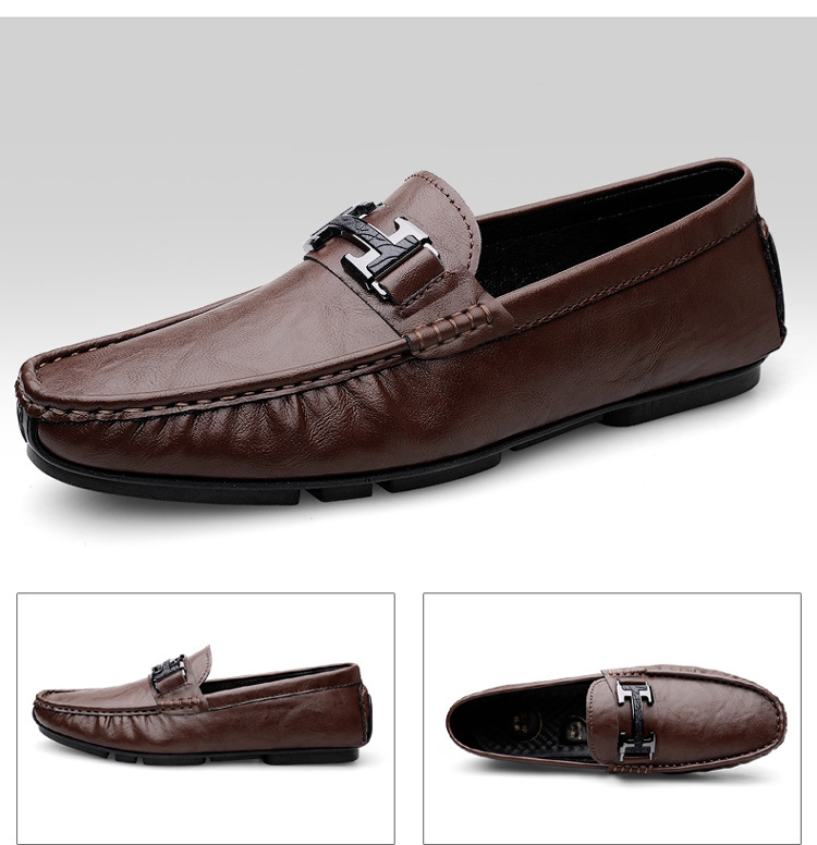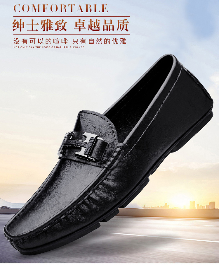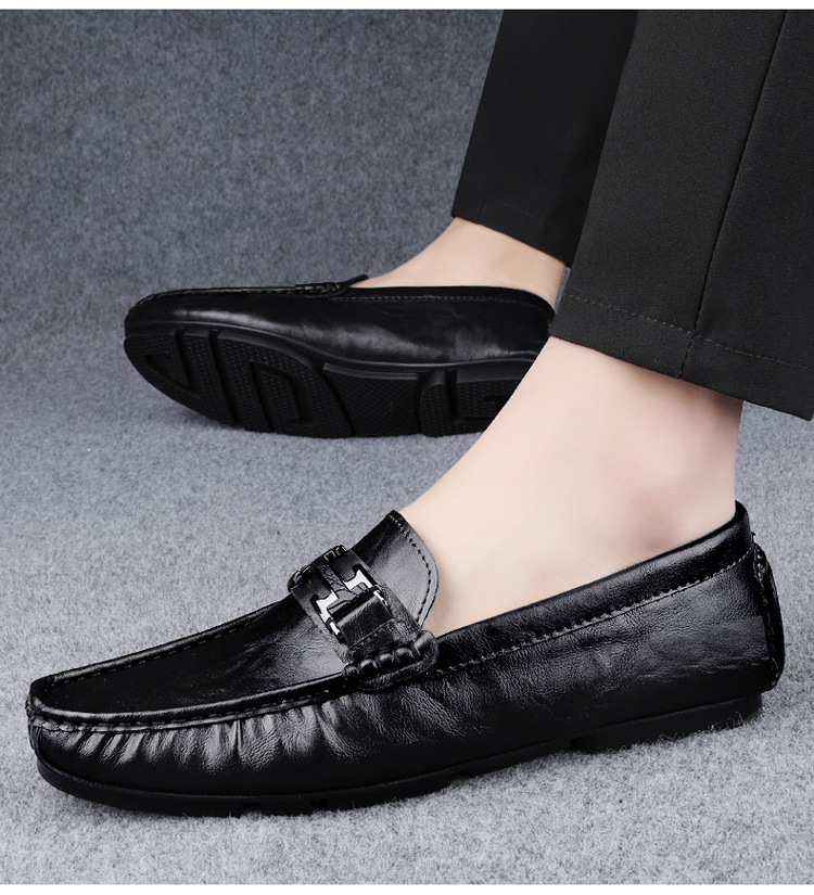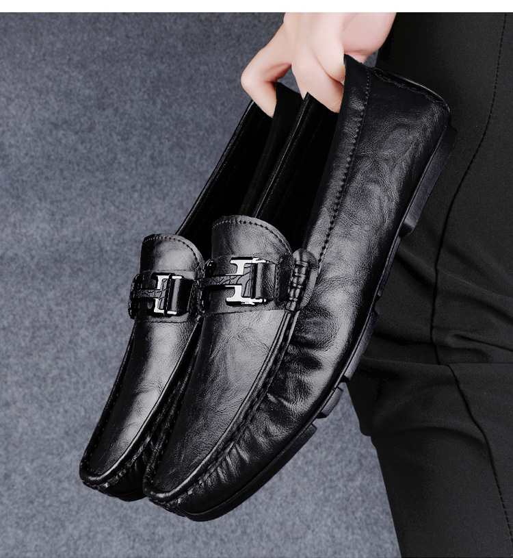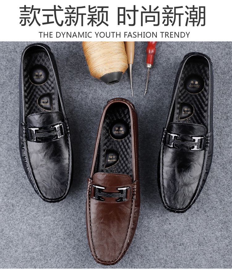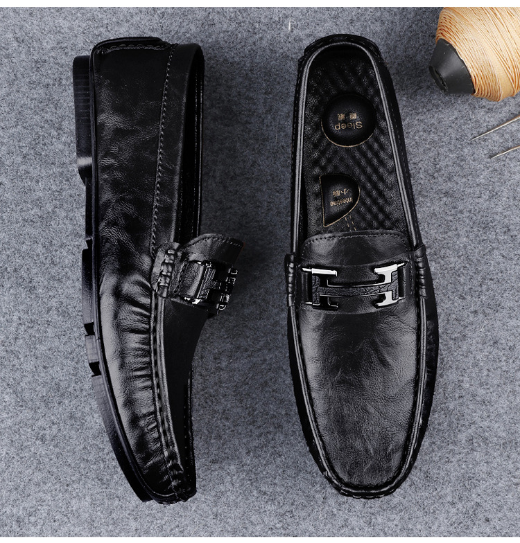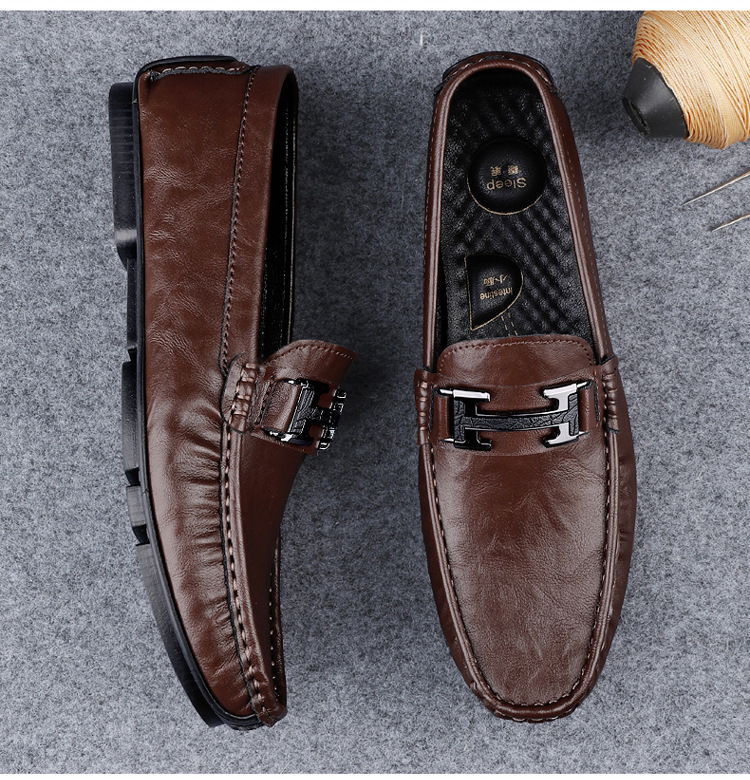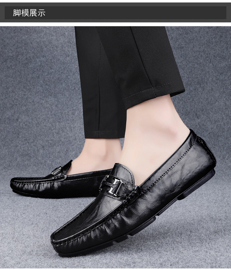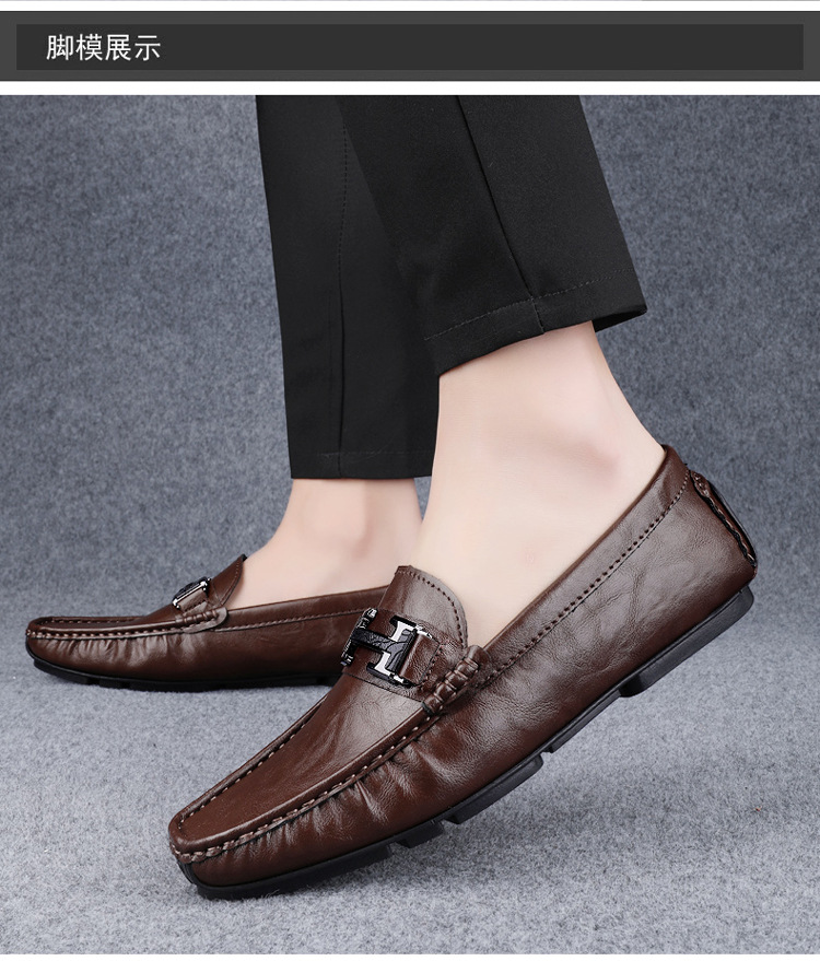 Transmisión en vivo de zapatos Bean para hombres de cuero de vaca transfronterizo de alta calidad zapatos de cuero H-buckle con una sola sola suave zapatos Lefour