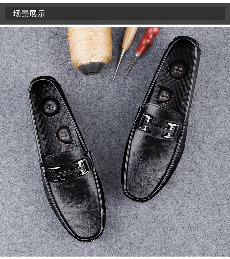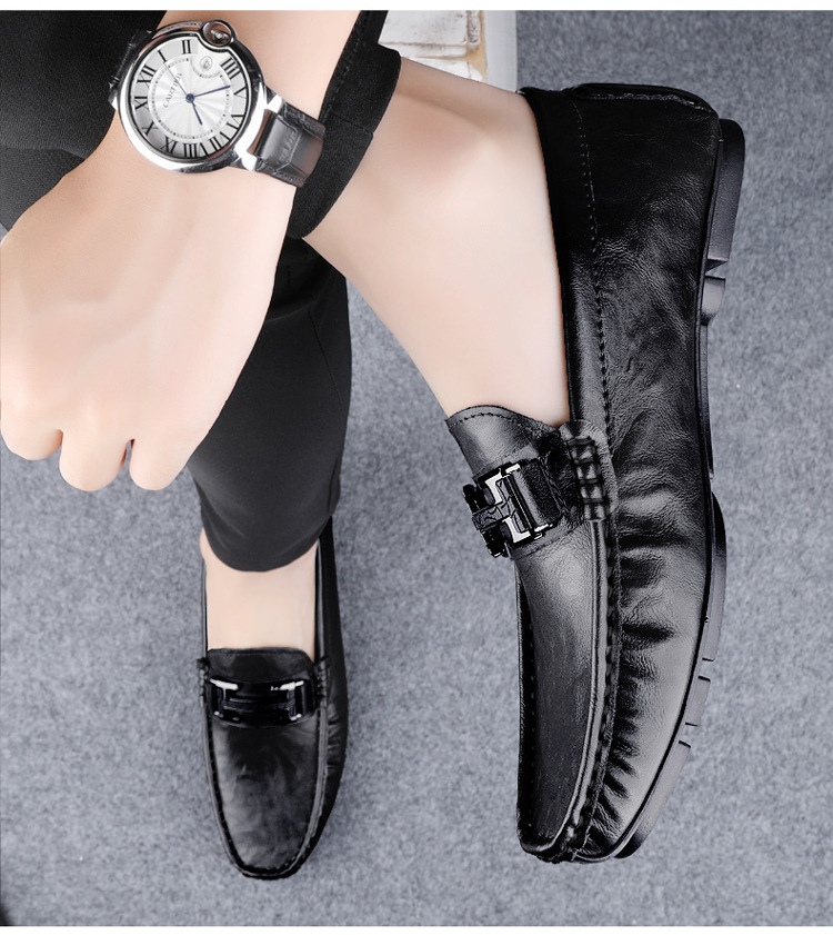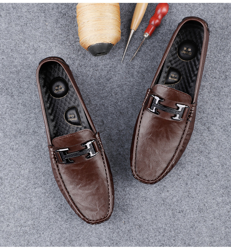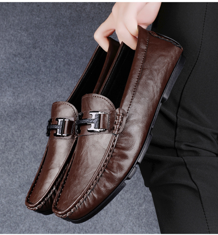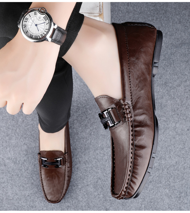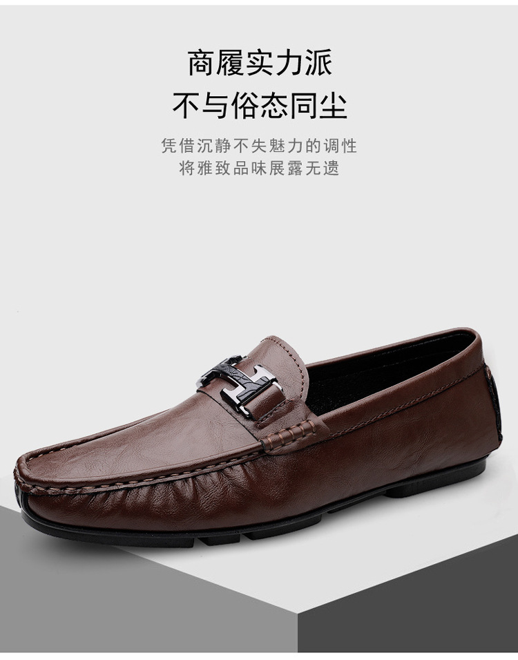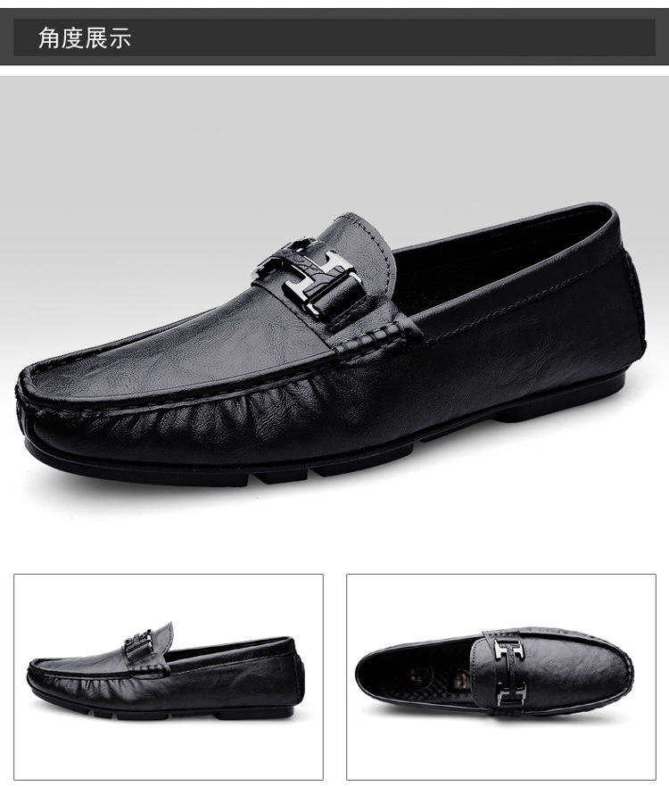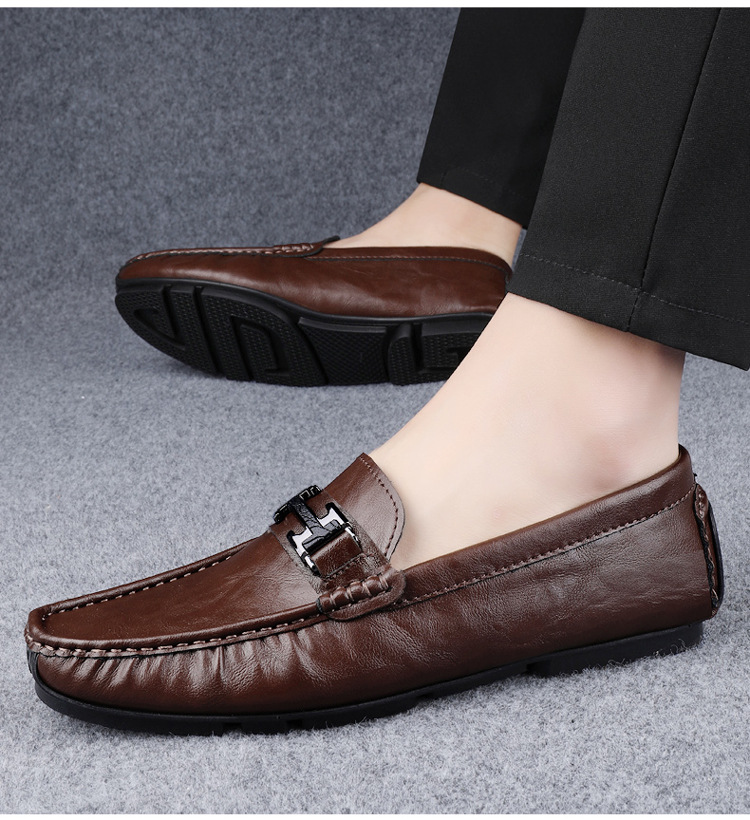 Transmisión en vivo de zapatos Bean para hombres de cuero de vaca transfronterizo de alta calidad zapatos de cuero H-buckle con una sola sola suave zapatos Lefour