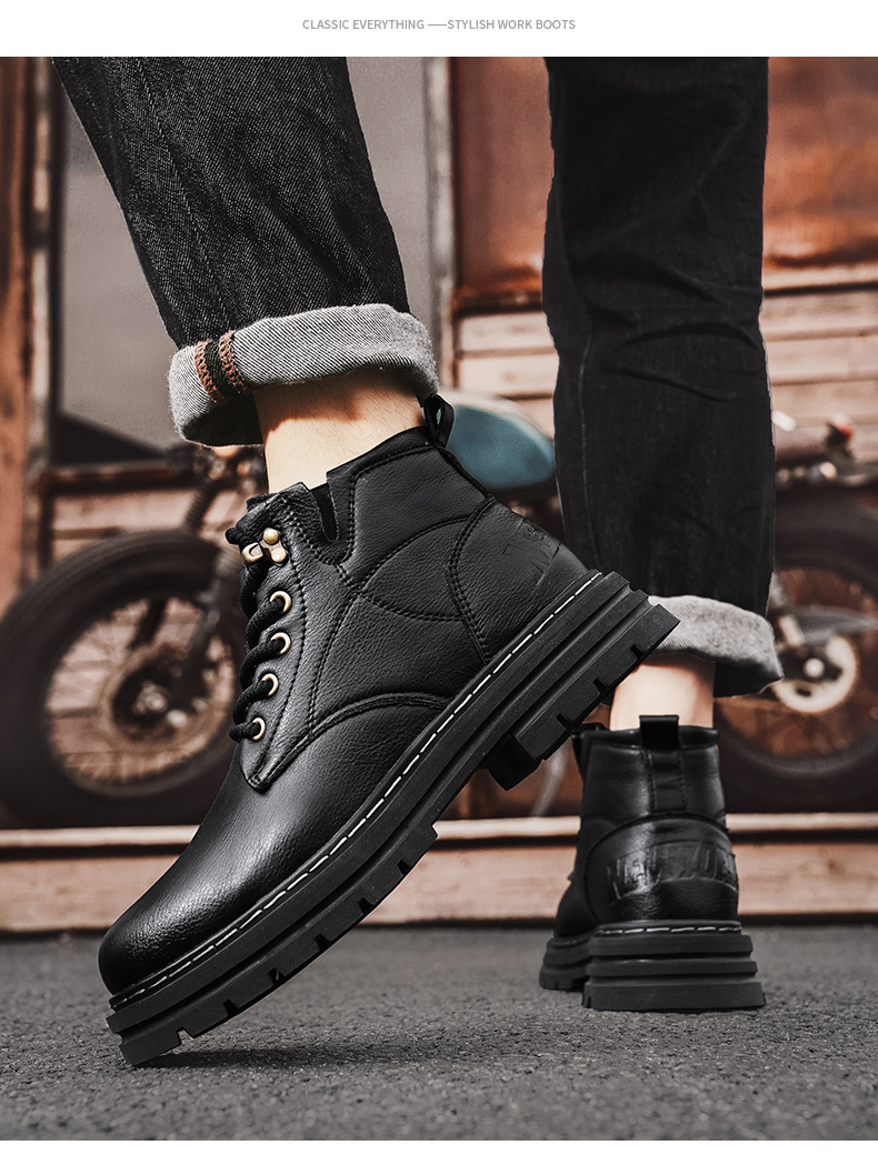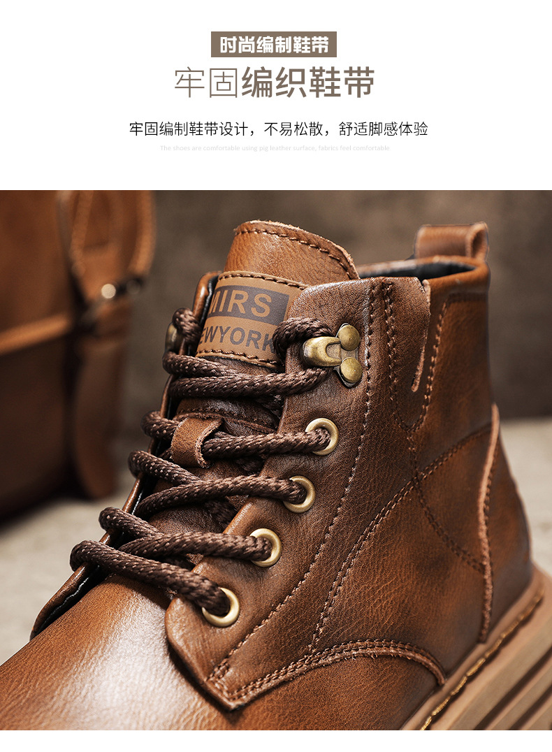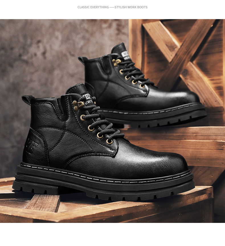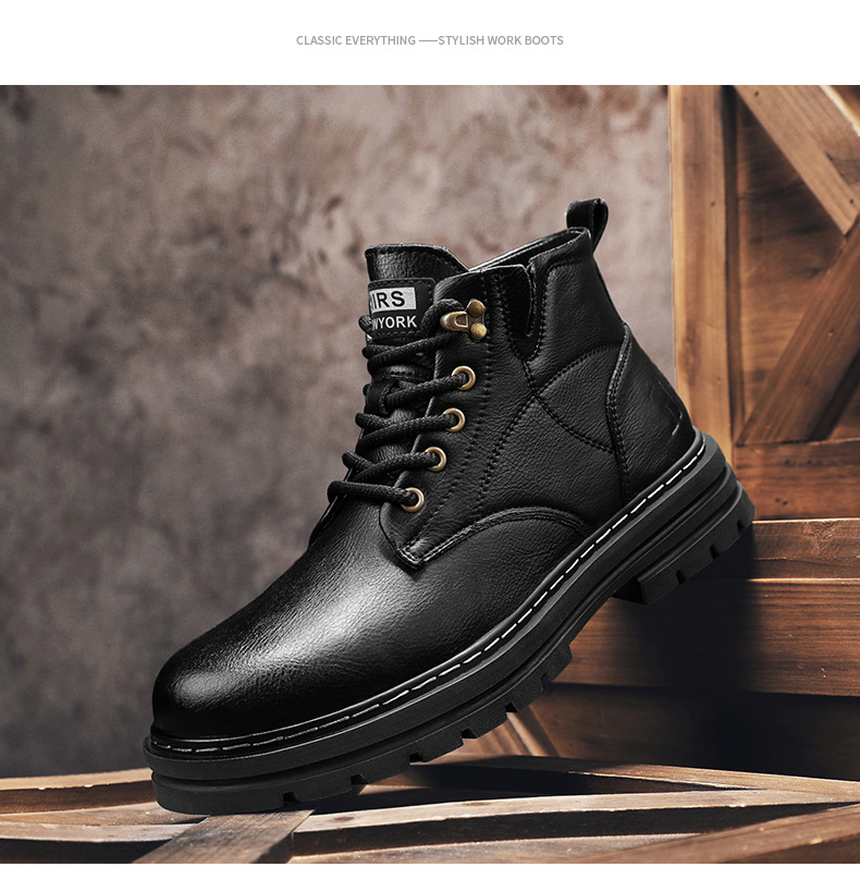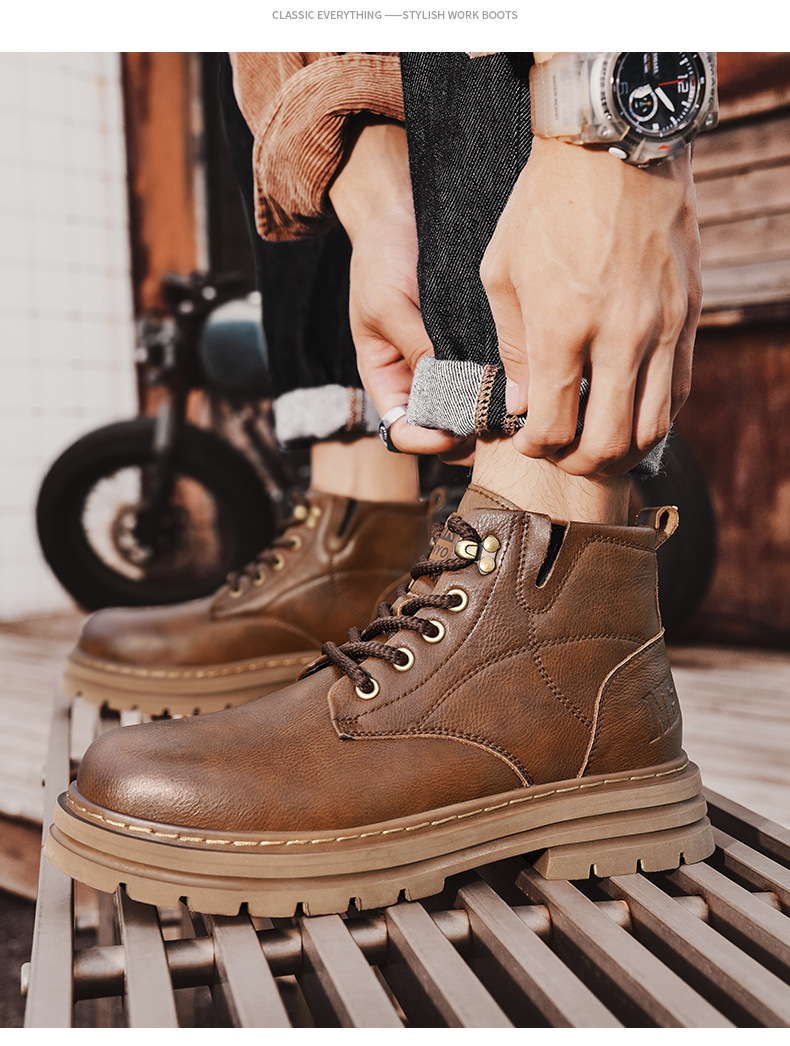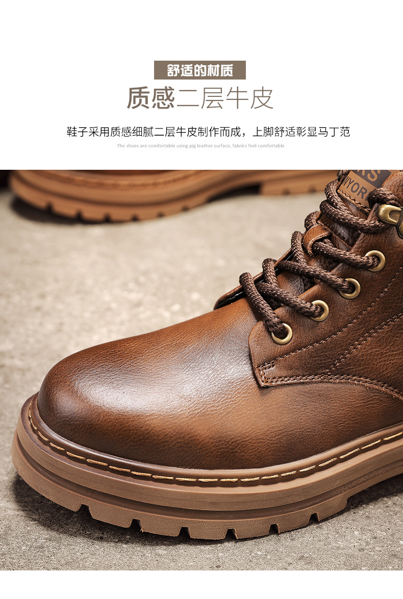 Otoño y invierno de tendencia de cuero casuales botas Martin para hombres ropa de estilo británico botas de hombre calentadas zapatos de hombre tubo medio para hombres