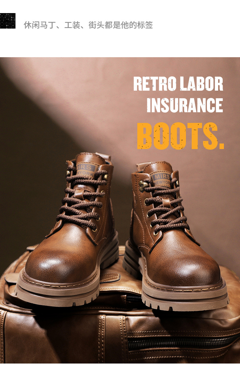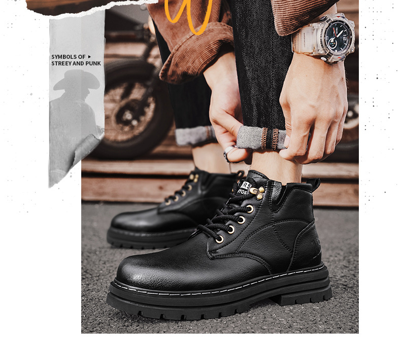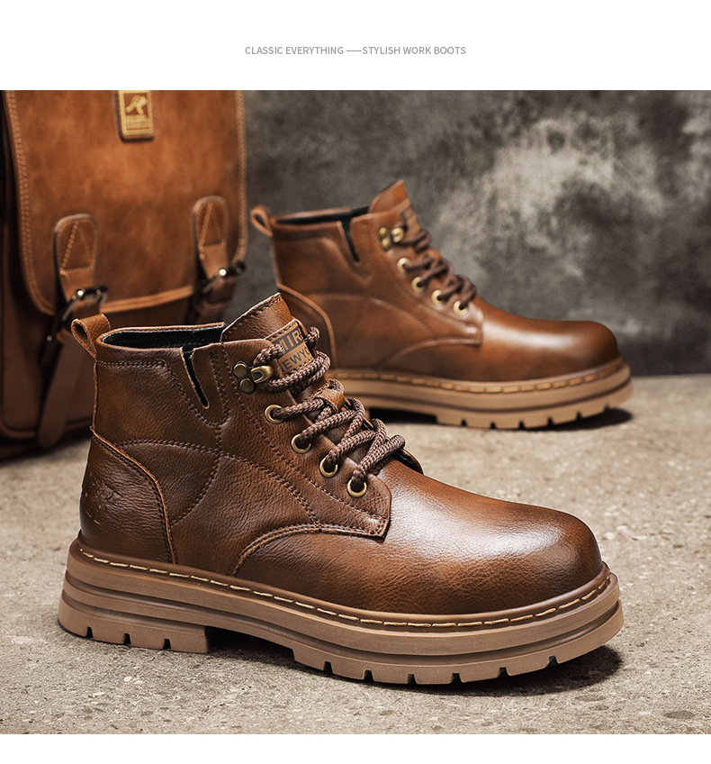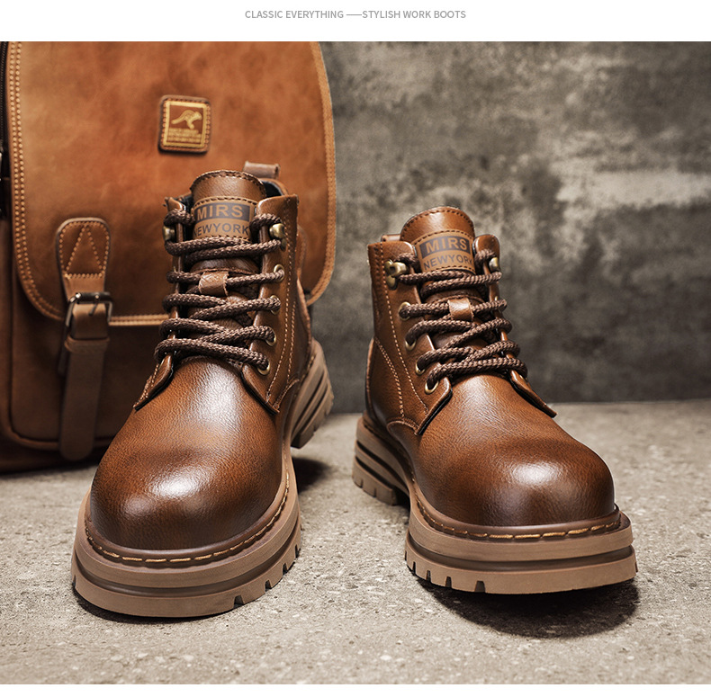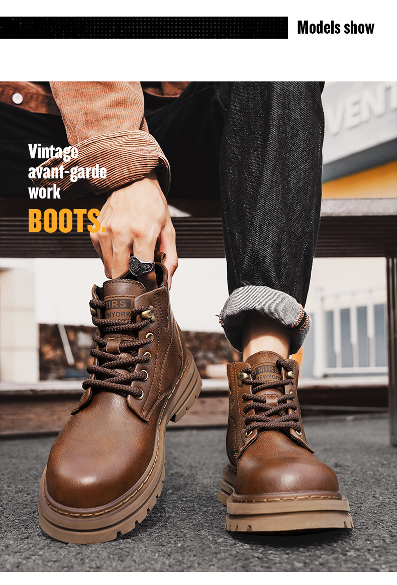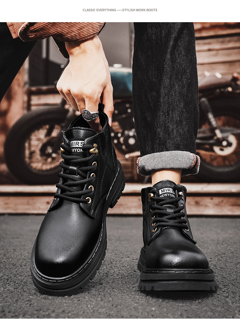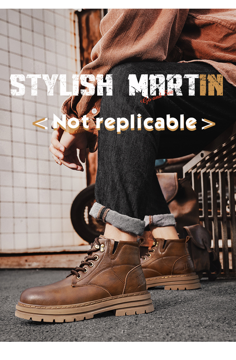 Otoño y invierno de tendencia de cuero casuales botas Martin para hombres ropa de estilo británico botas de hombre calentadas zapatos de hombre tubo medio para hombres