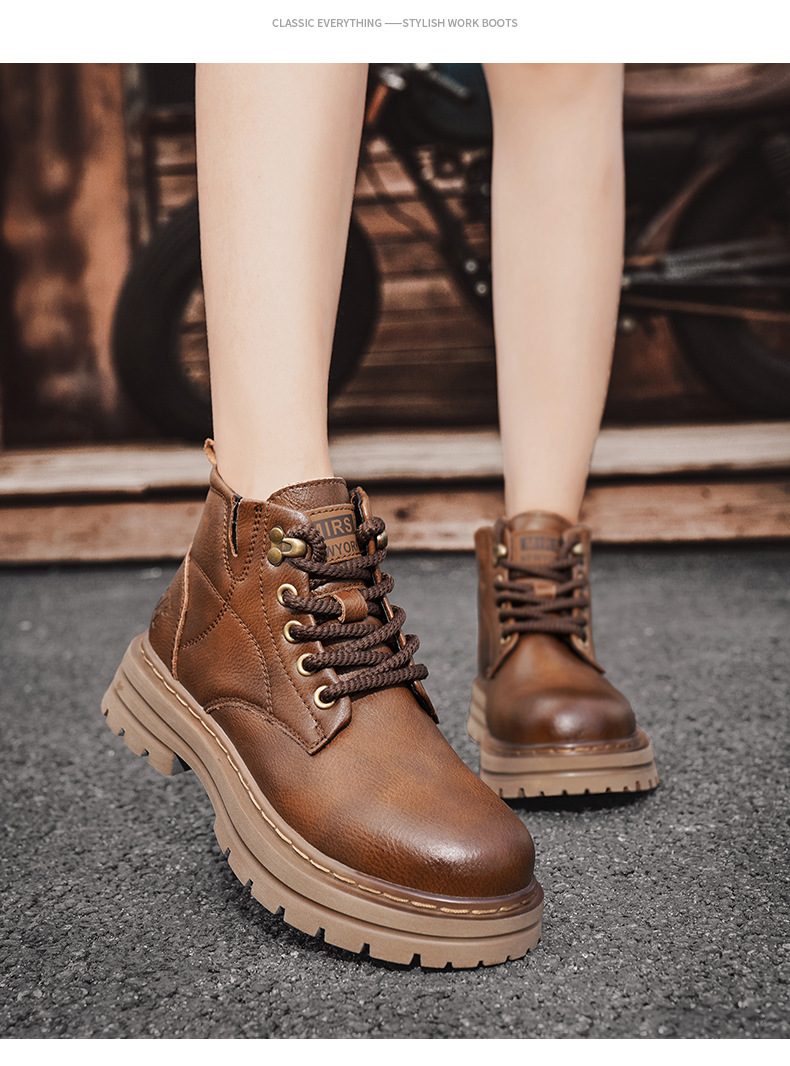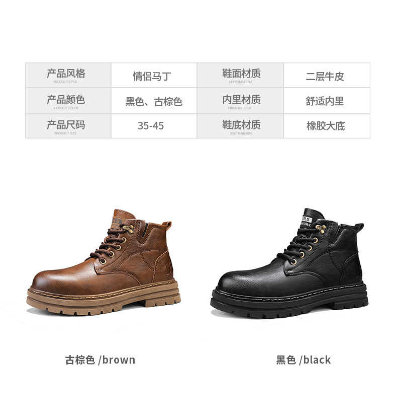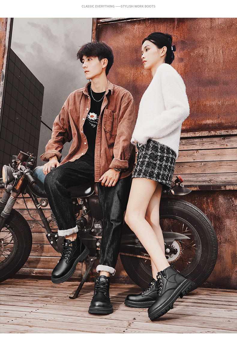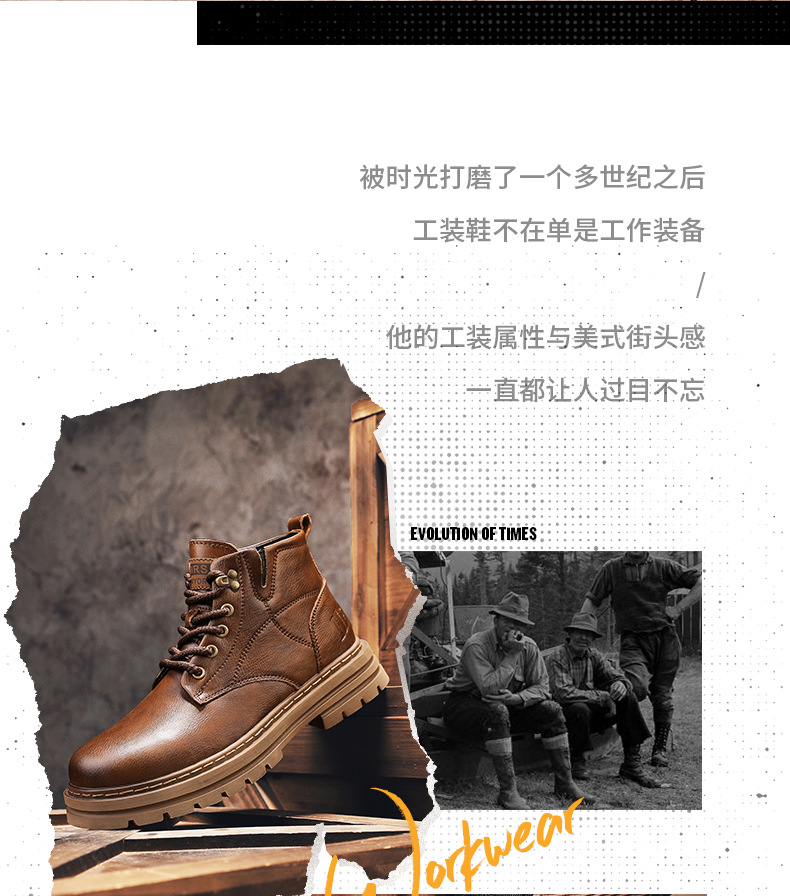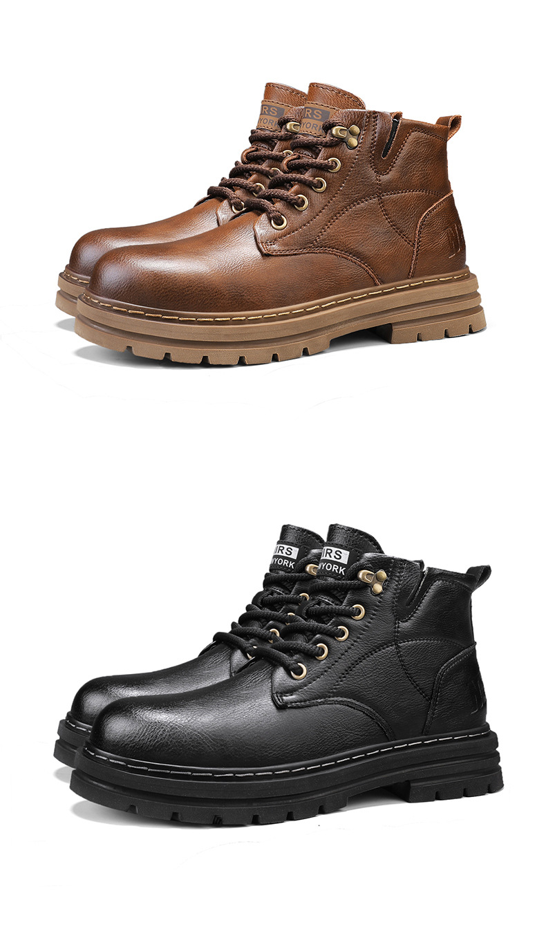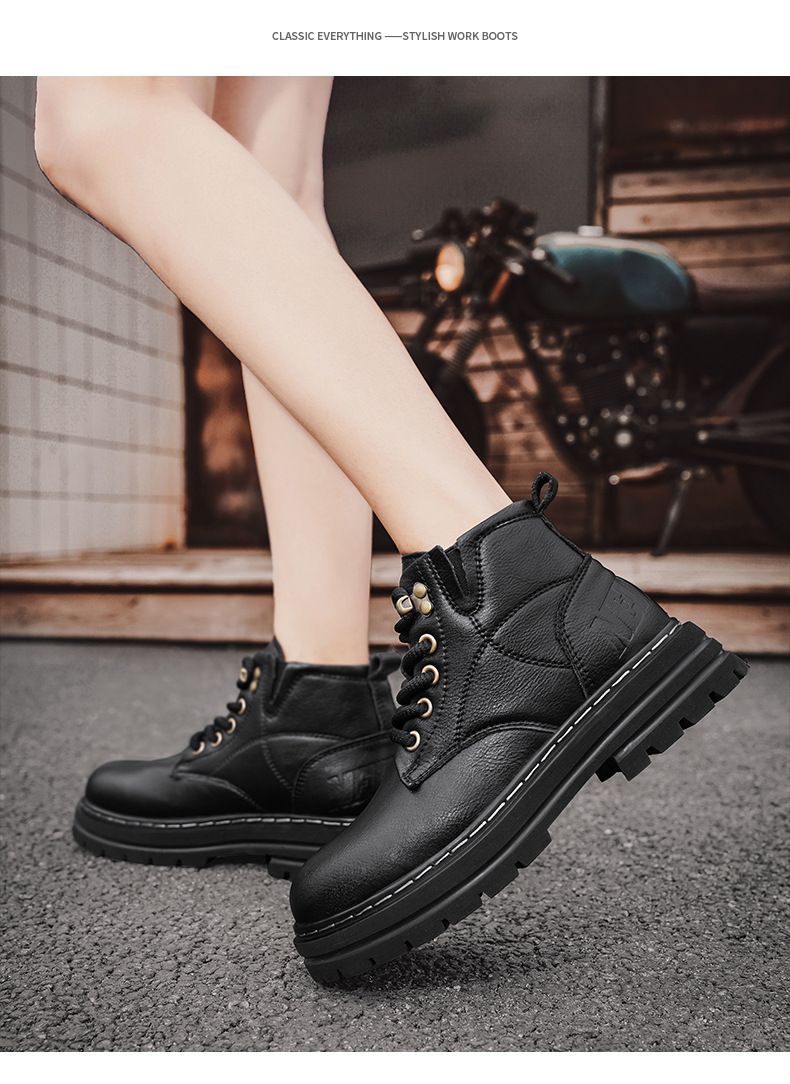 Otoño y invierno de tendencia de cuero casuales botas Martin para hombres ropa de estilo británico botas de hombre calentadas zapatos de hombre tubo medio para hombres