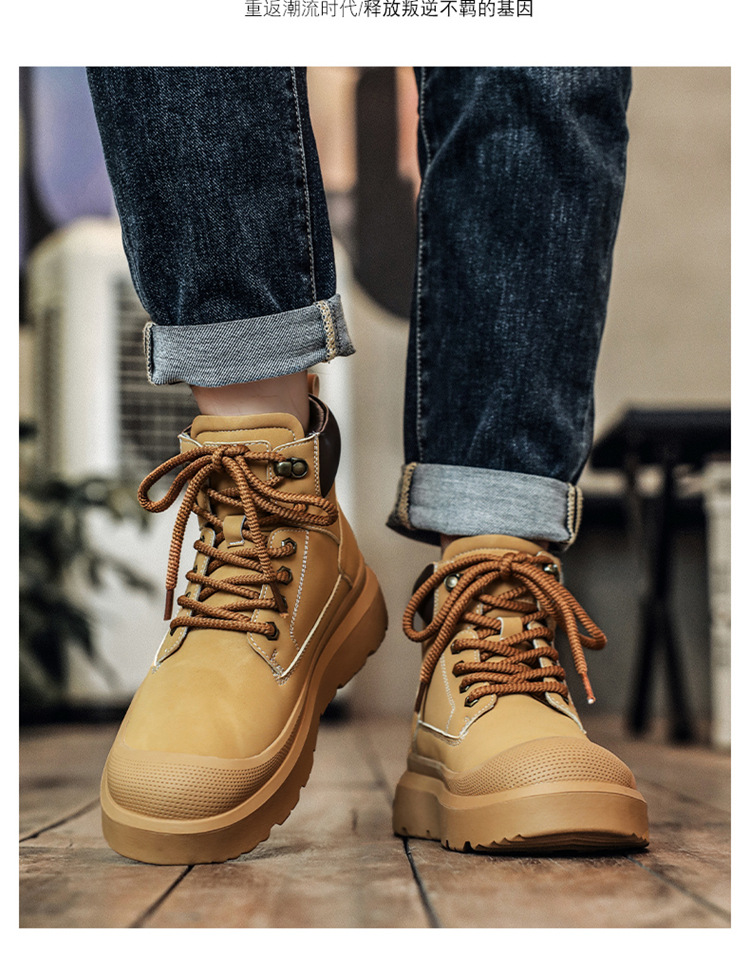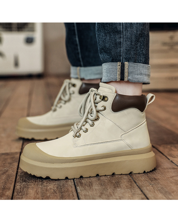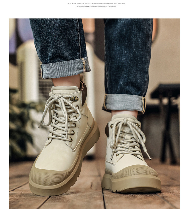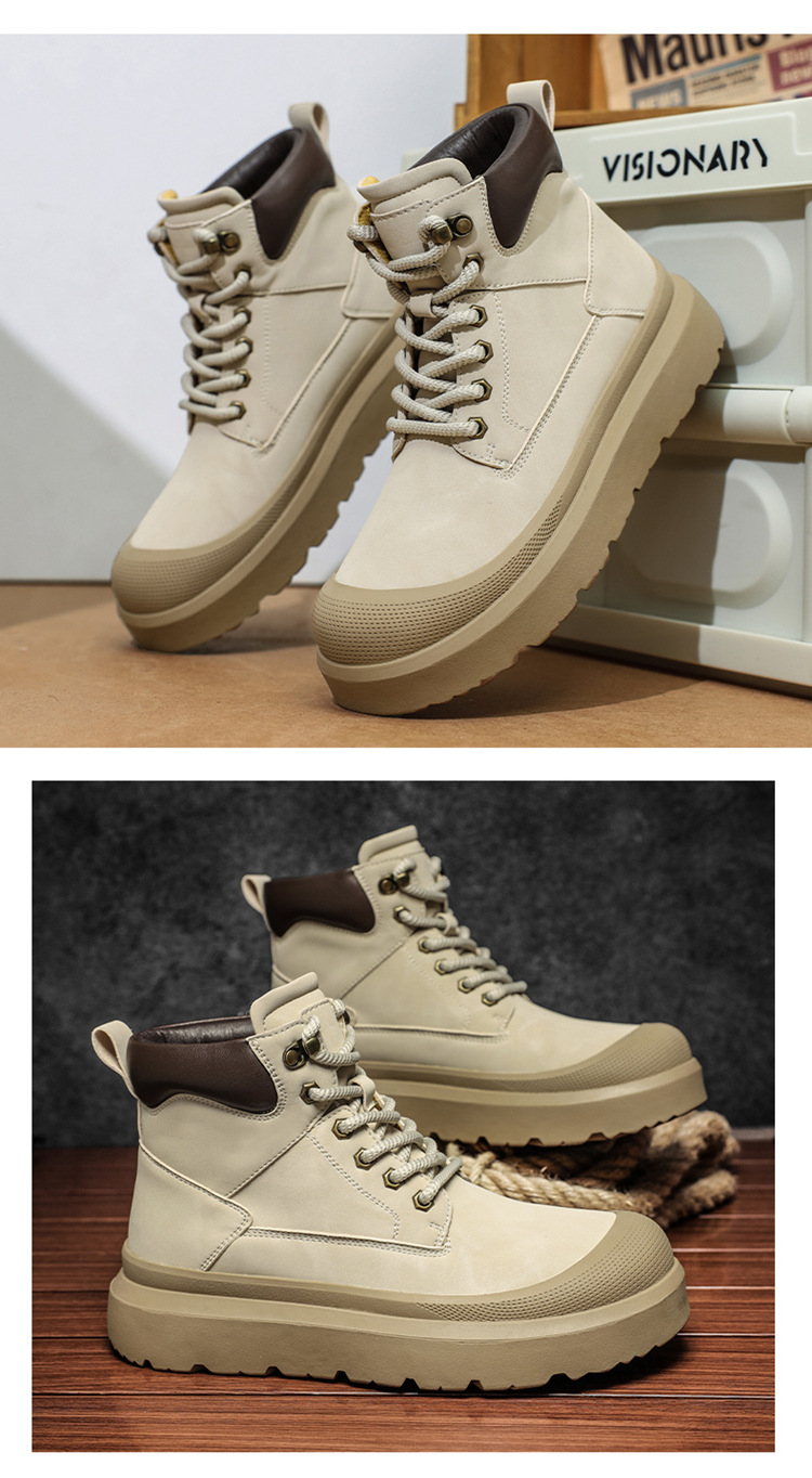 2025 otoño y invierno nuevos hombres botas de cuero casuales al aire libre botas Martin calientes para calentar el uso de zapatos altos