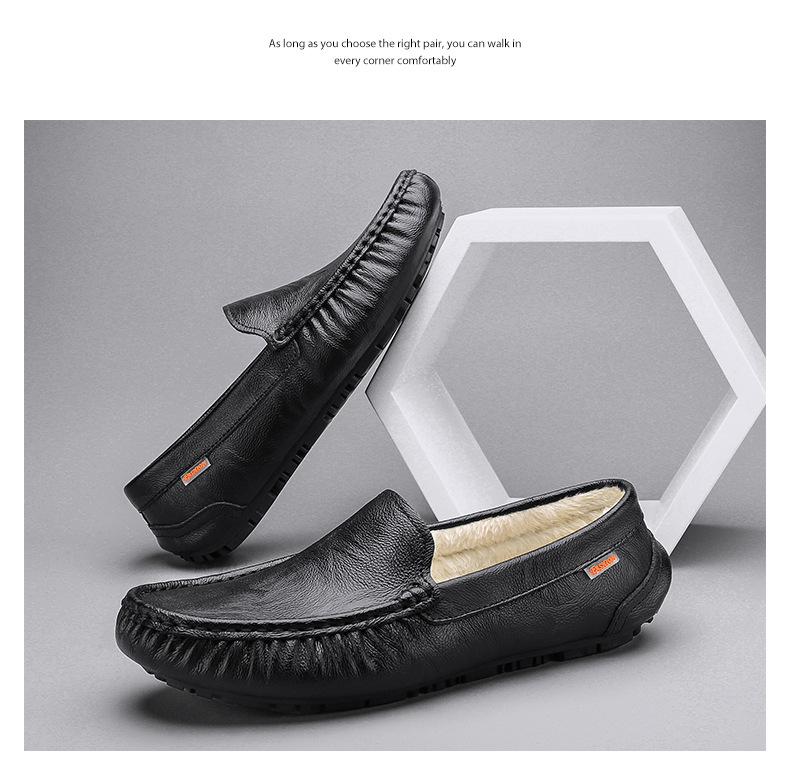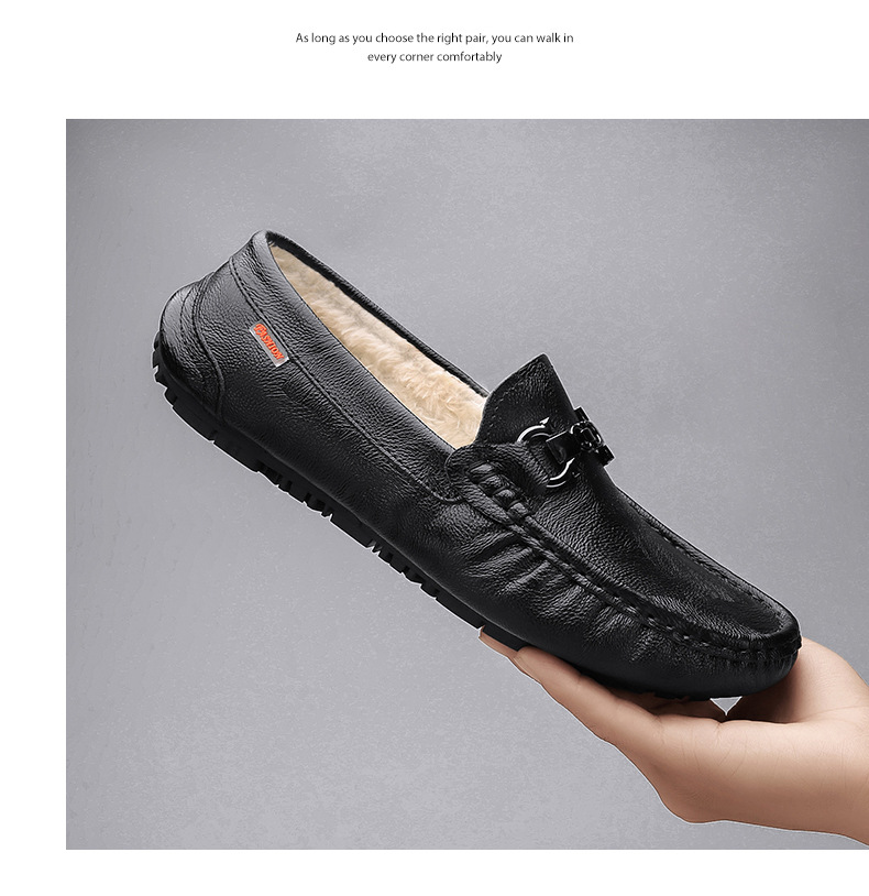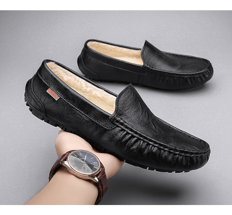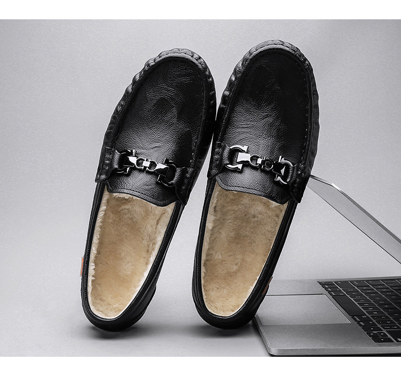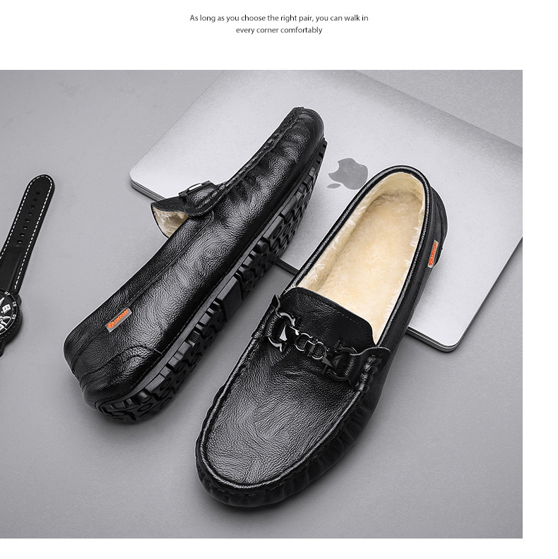 Zapatos cálidos para hombres, nuevos zapatos de cuero casuales de cuero suave para hombres, zapatos de conducción de invierno.