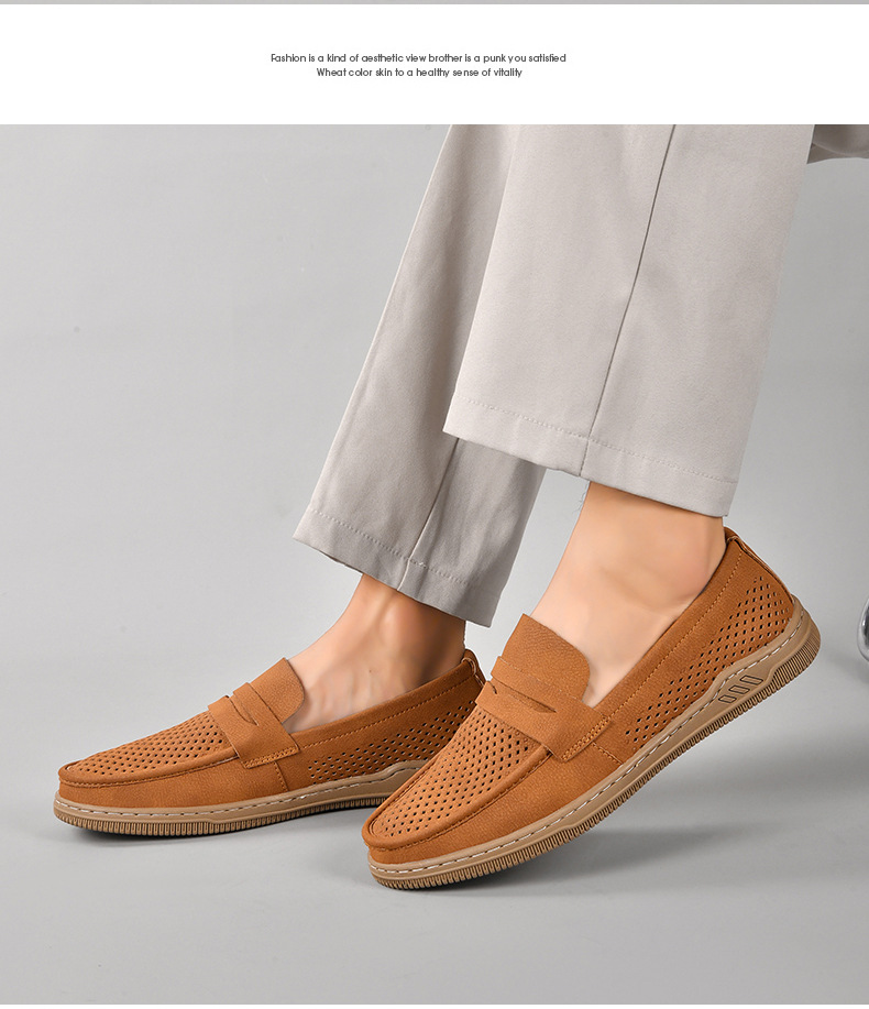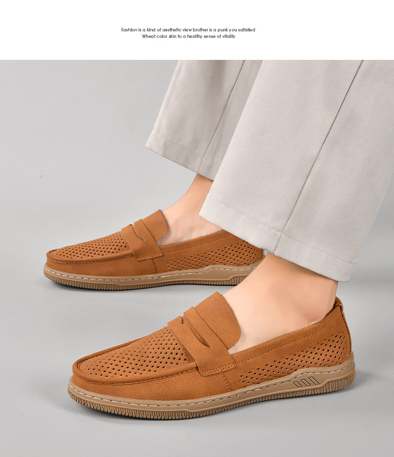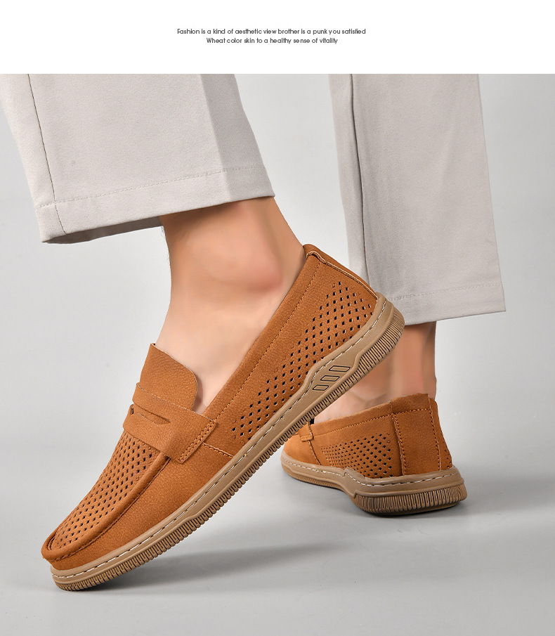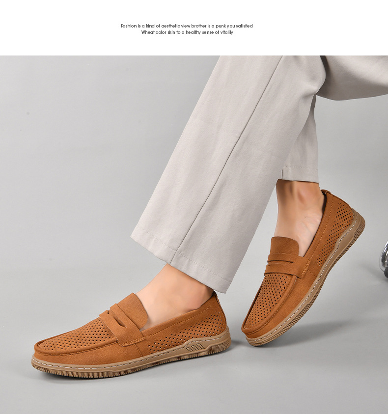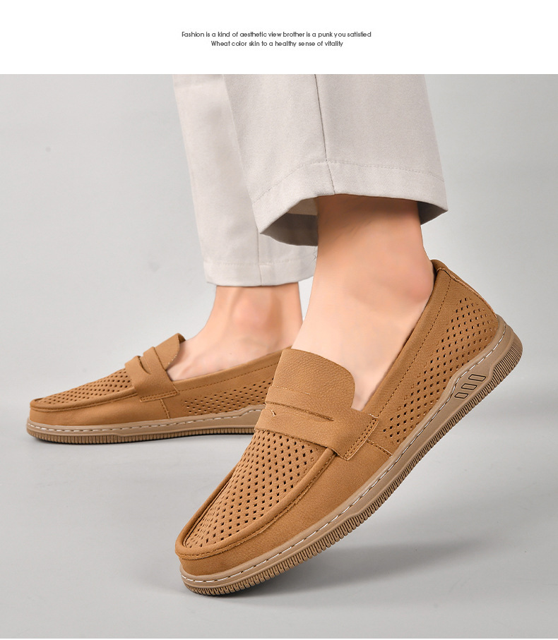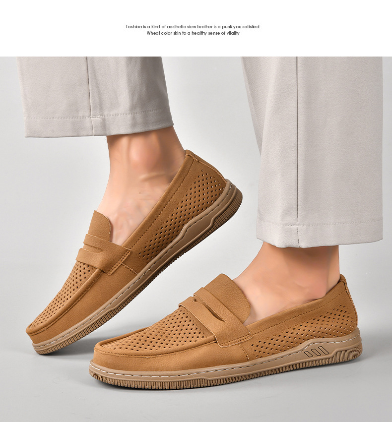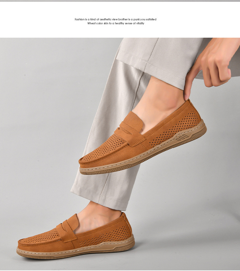 Zapatos de hombre de cuero real 2025 nuevos zapatos de negocios británicos transpirables con suela suave zapatos casuales perezosos con un zapato hueco