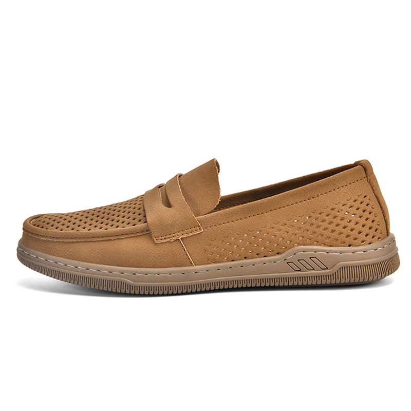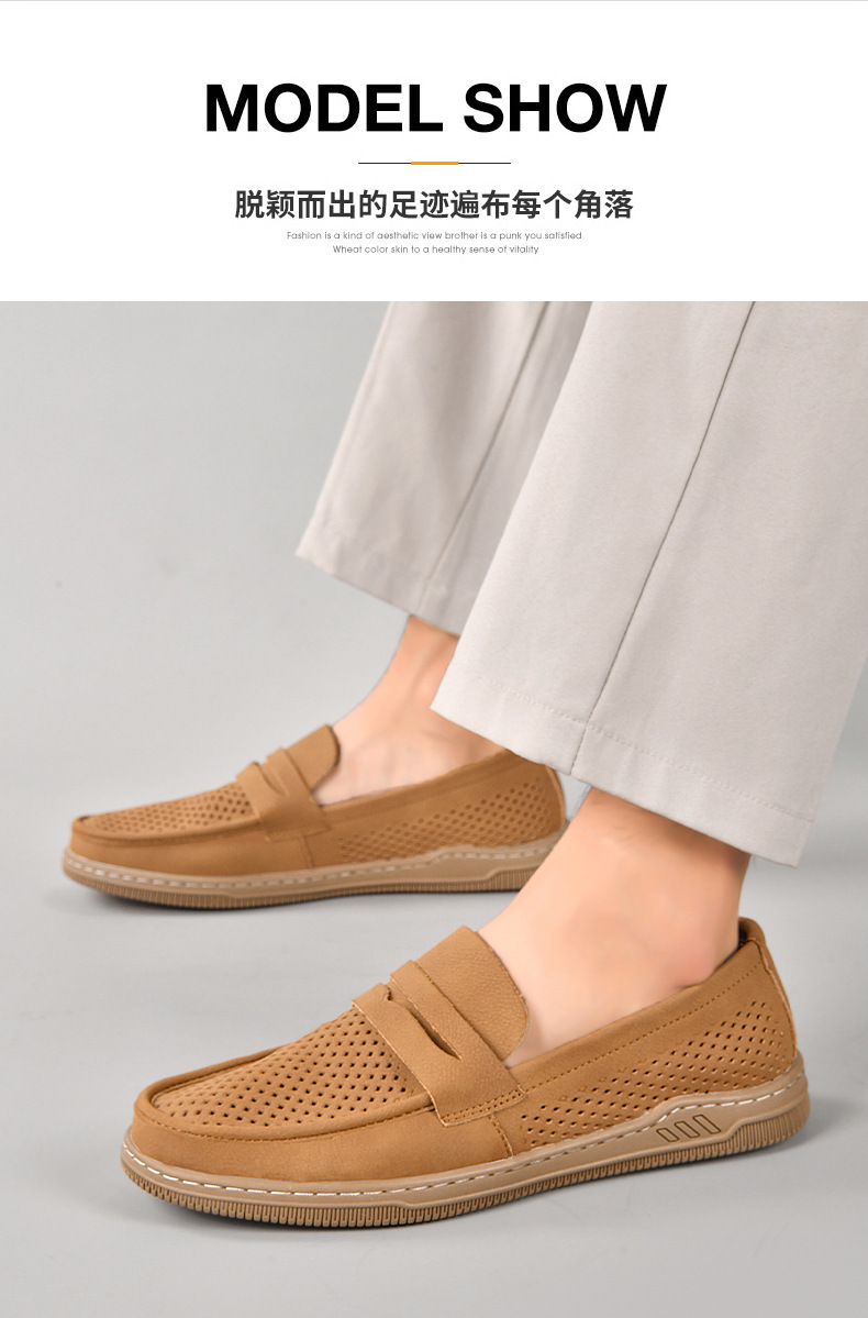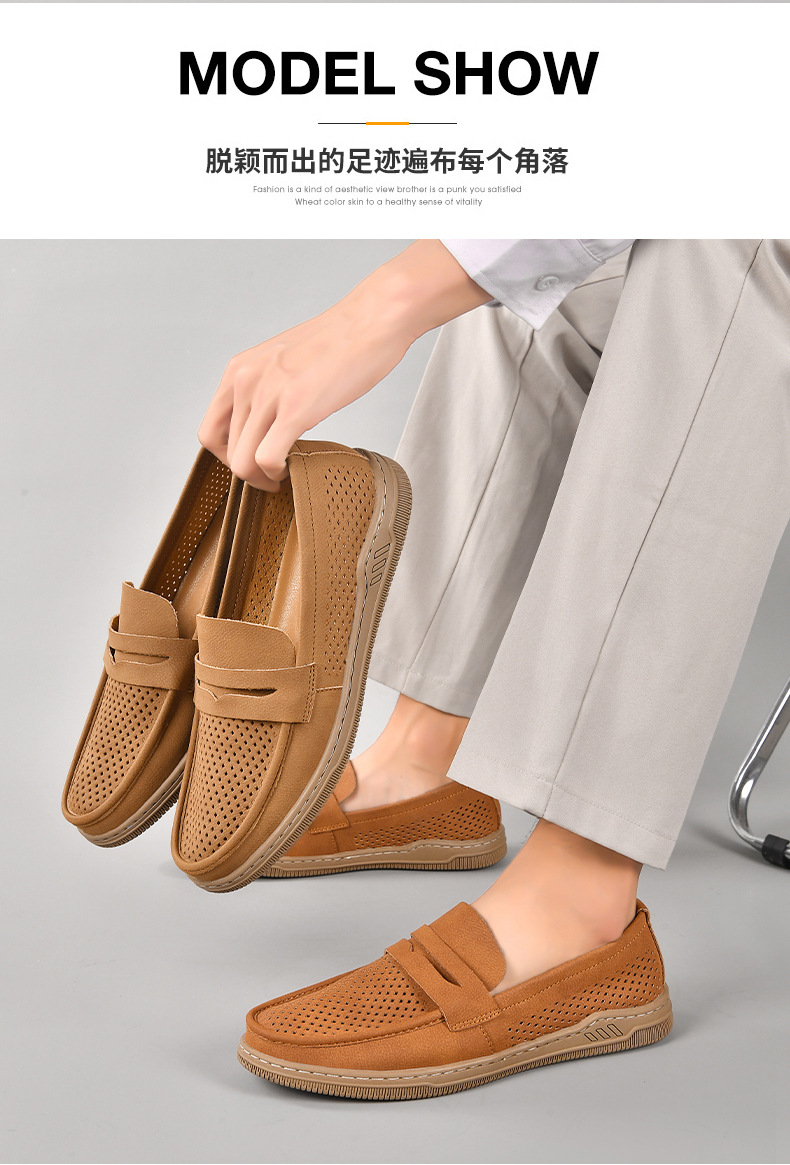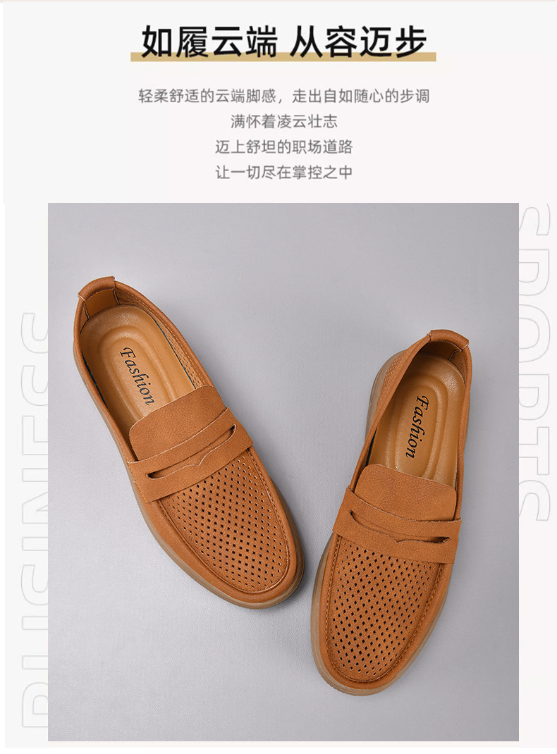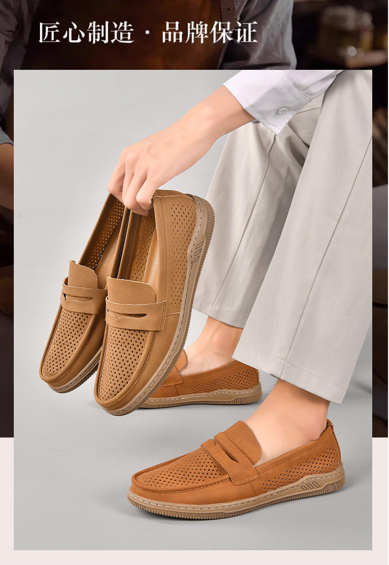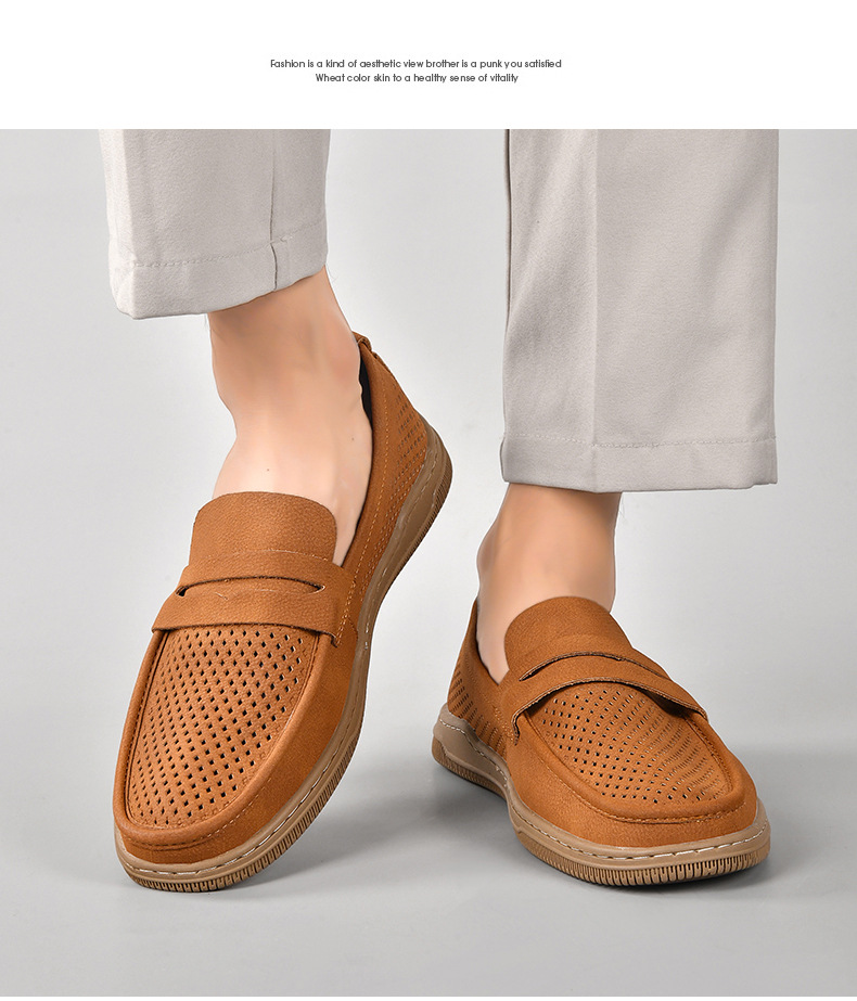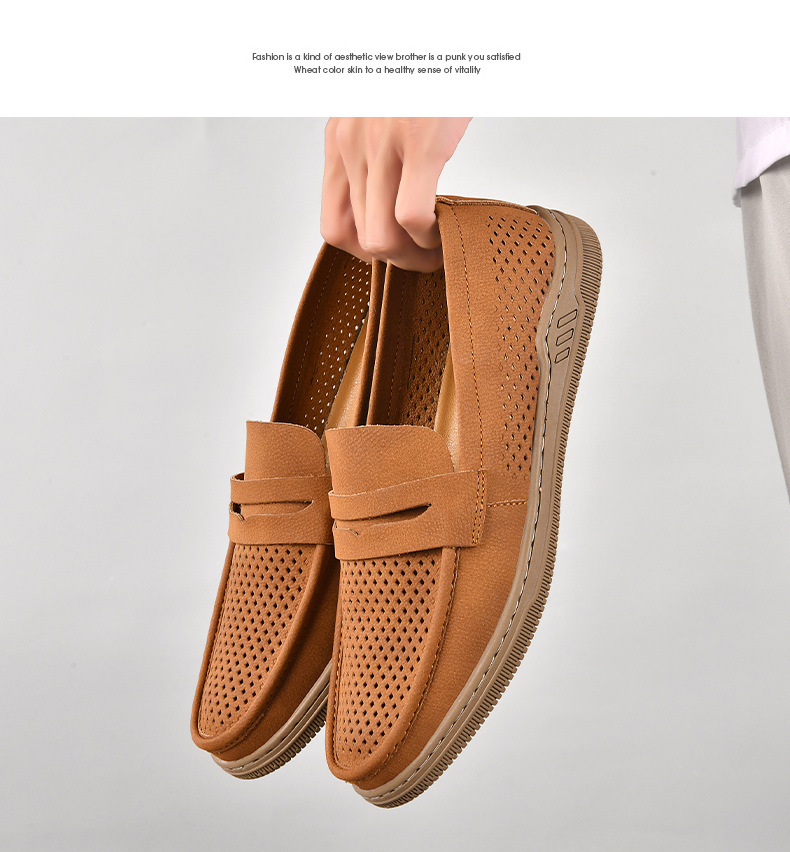 Zapatos de hombre de cuero real 2025 nuevos zapatos de negocios británicos transpirables con suela suave zapatos casuales perezosos con un zapato hueco