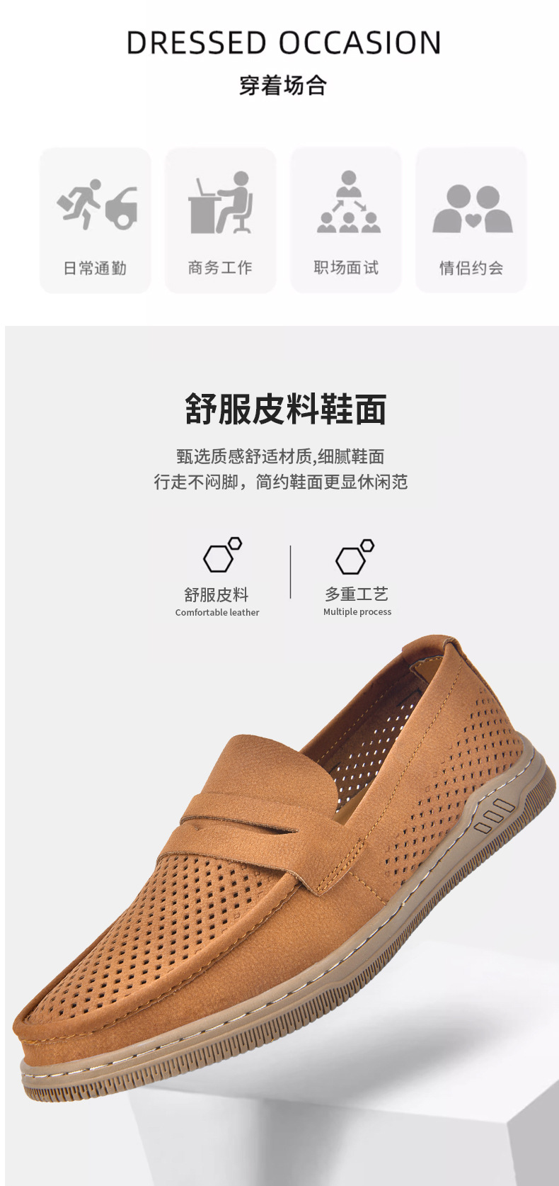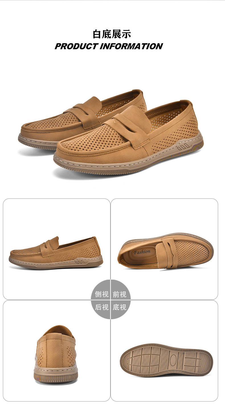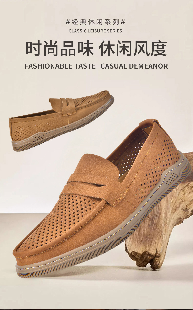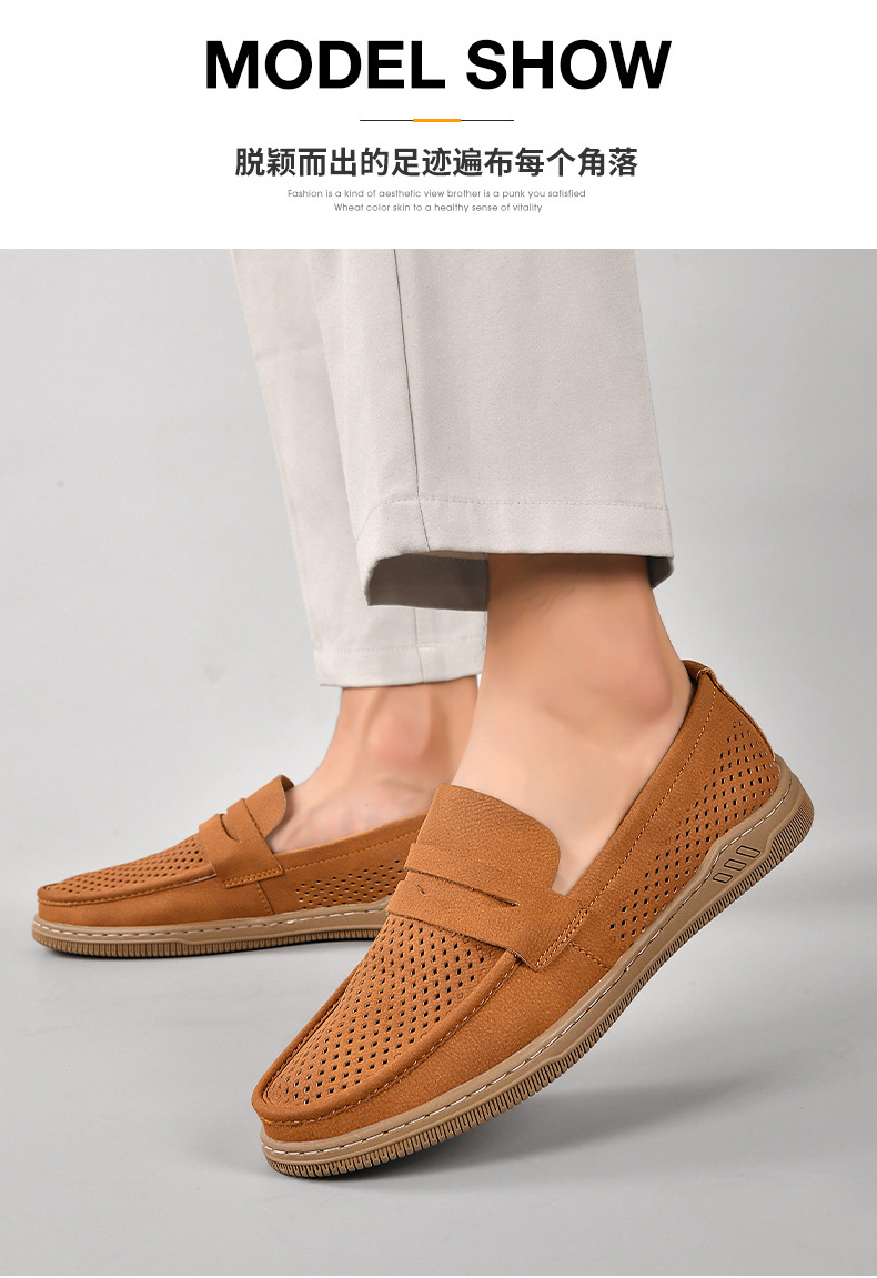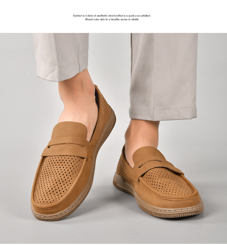 Zapatos de hombre de cuero real 2025 nuevos zapatos de negocios británicos transpirables con suela suave zapatos casuales perezosos con un zapato hueco