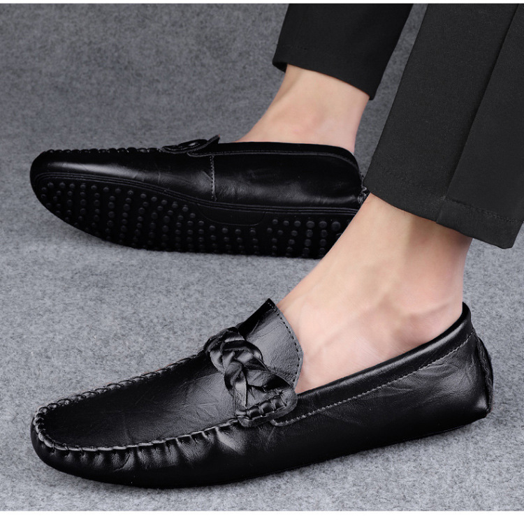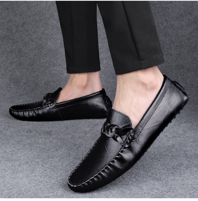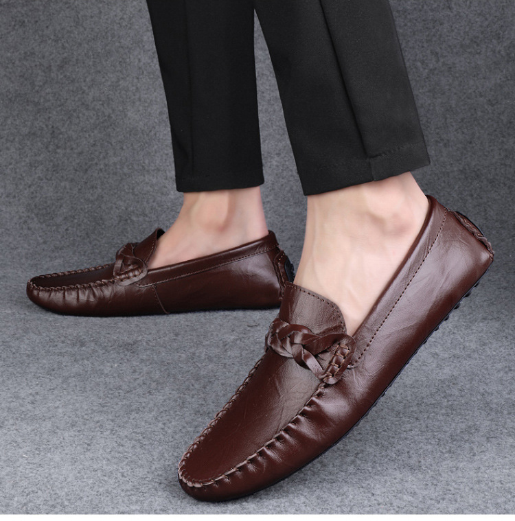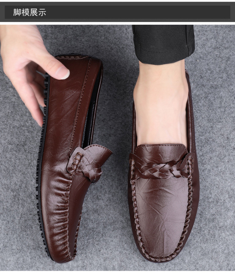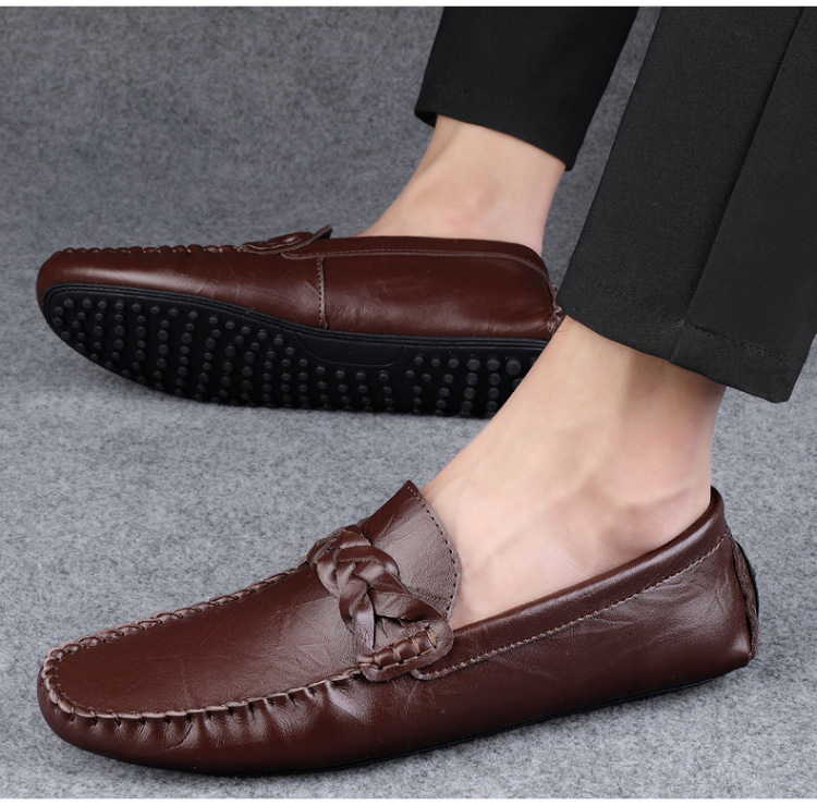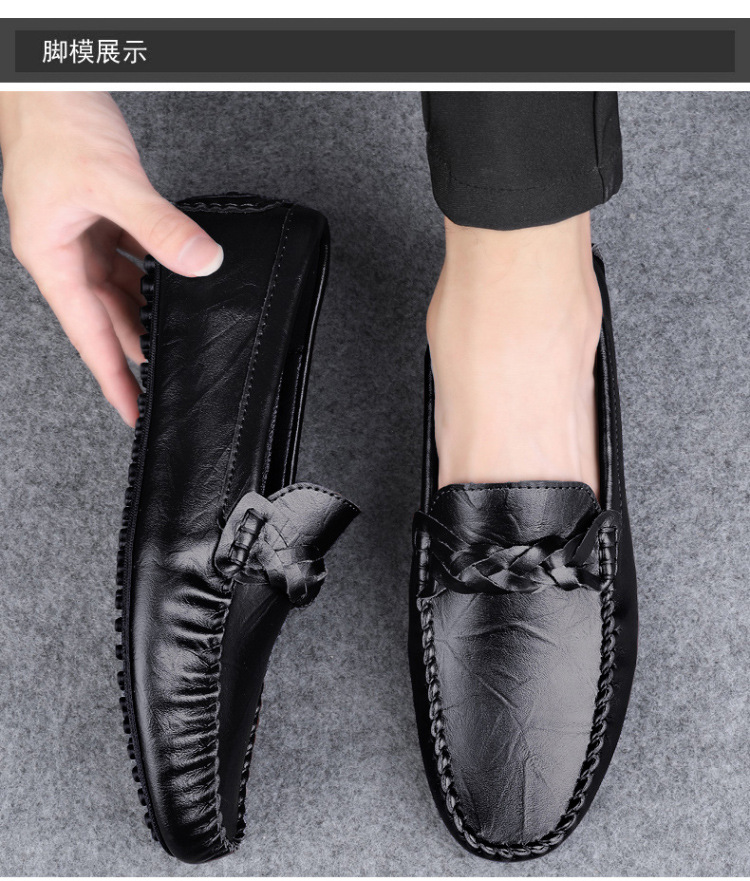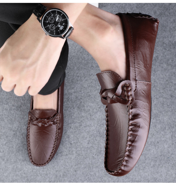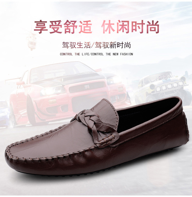 Transmisión en vivo de los zapatos Bean Bean para hombres de cuero de vaca transfronterizos de alta calidad de un pie para hombres de cuero suave con suela suave zapatos de cuero casuales de moda