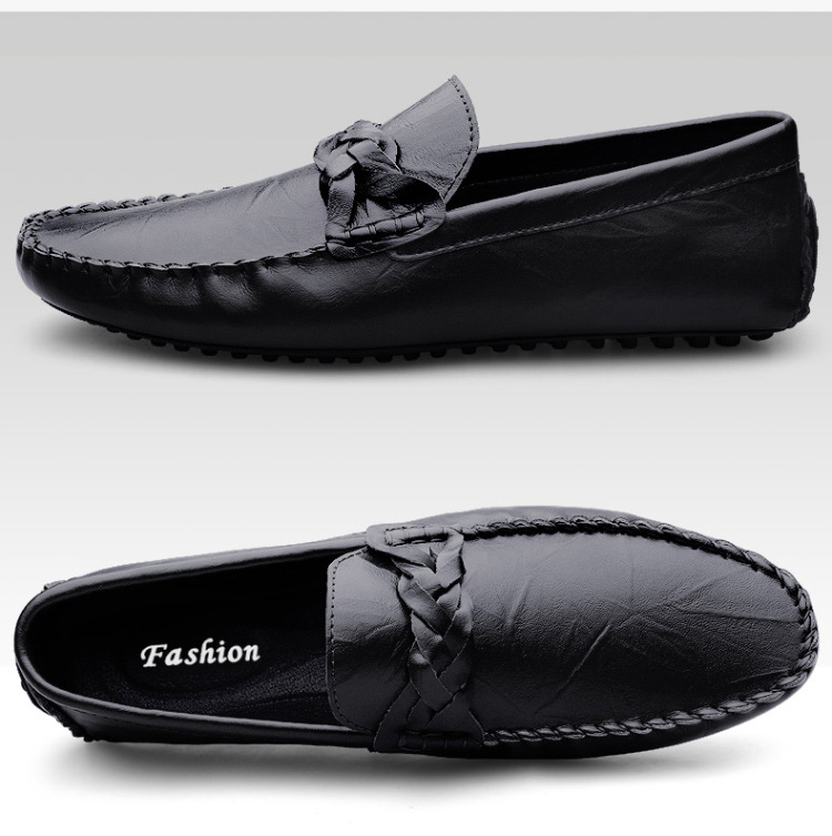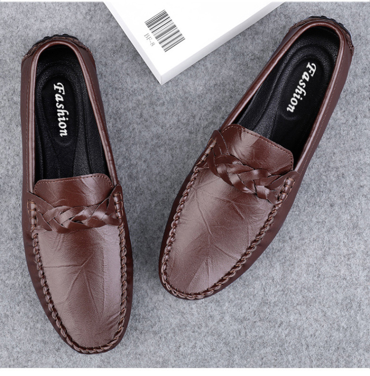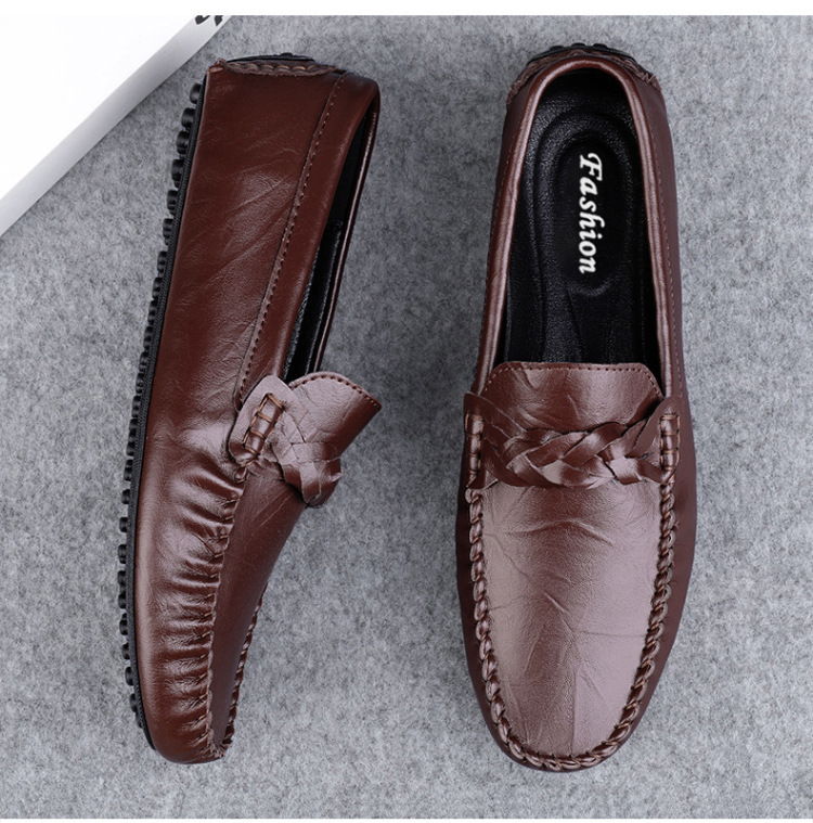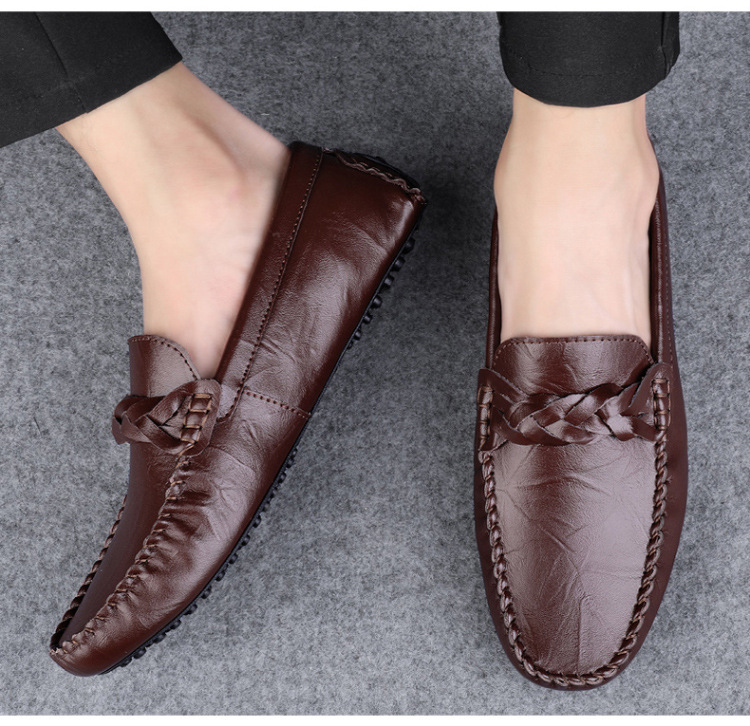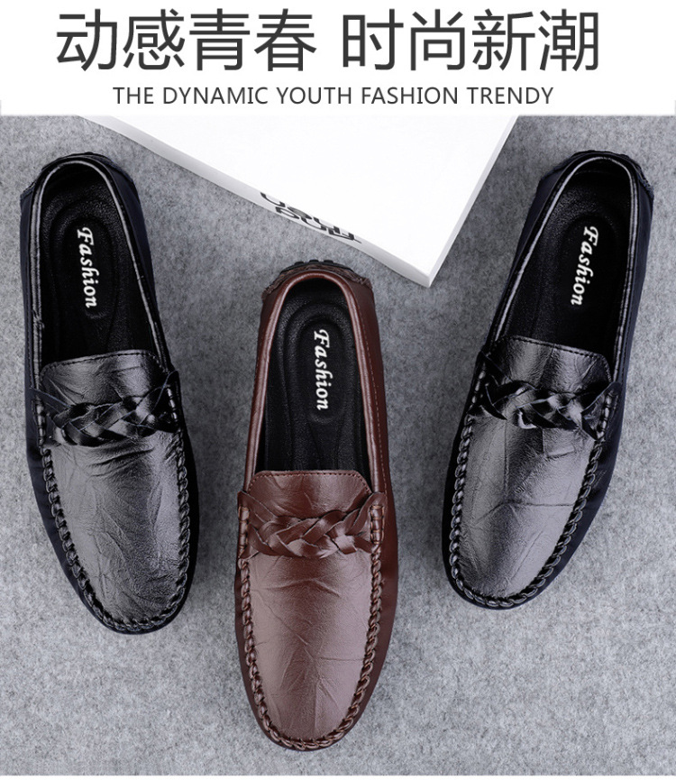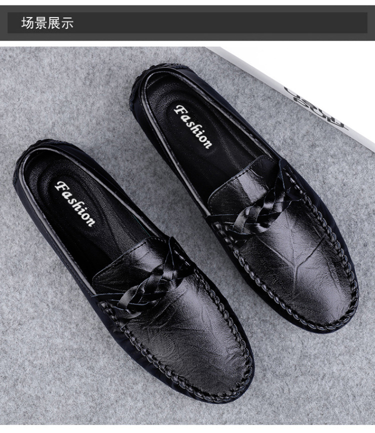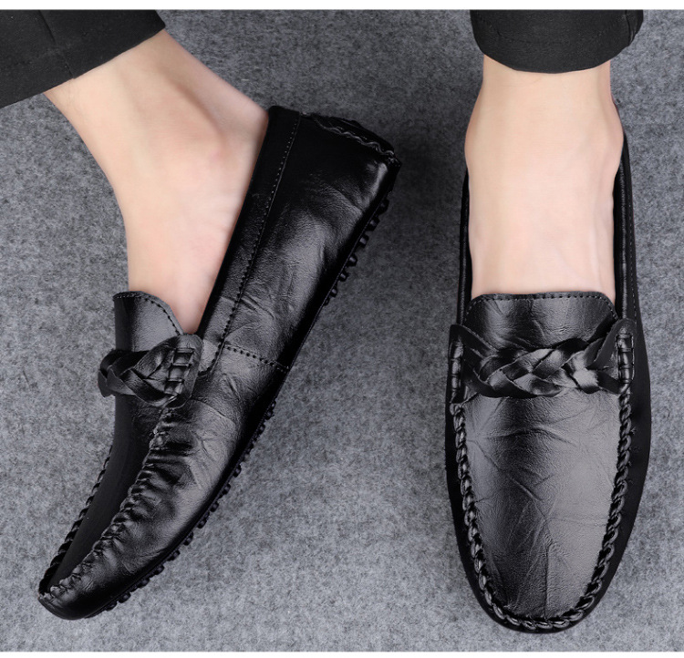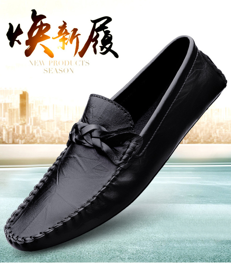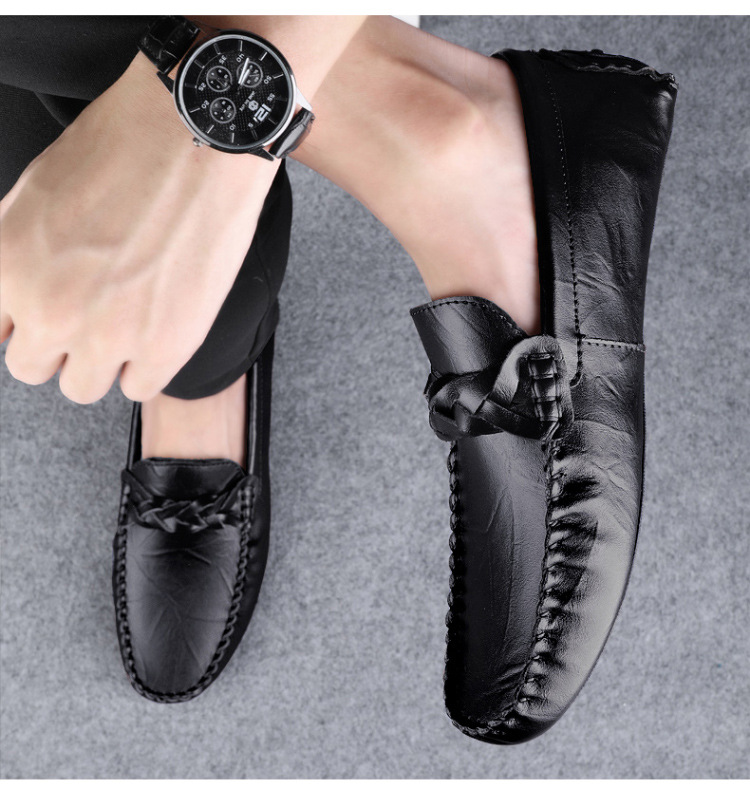 Transmisión en vivo de los zapatos Bean Bean para hombres de cuero de vaca transfronterizos de alta calidad de un pie para hombres de cuero suave con suela suave zapatos de cuero casuales de moda