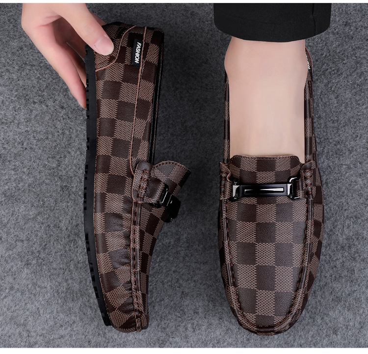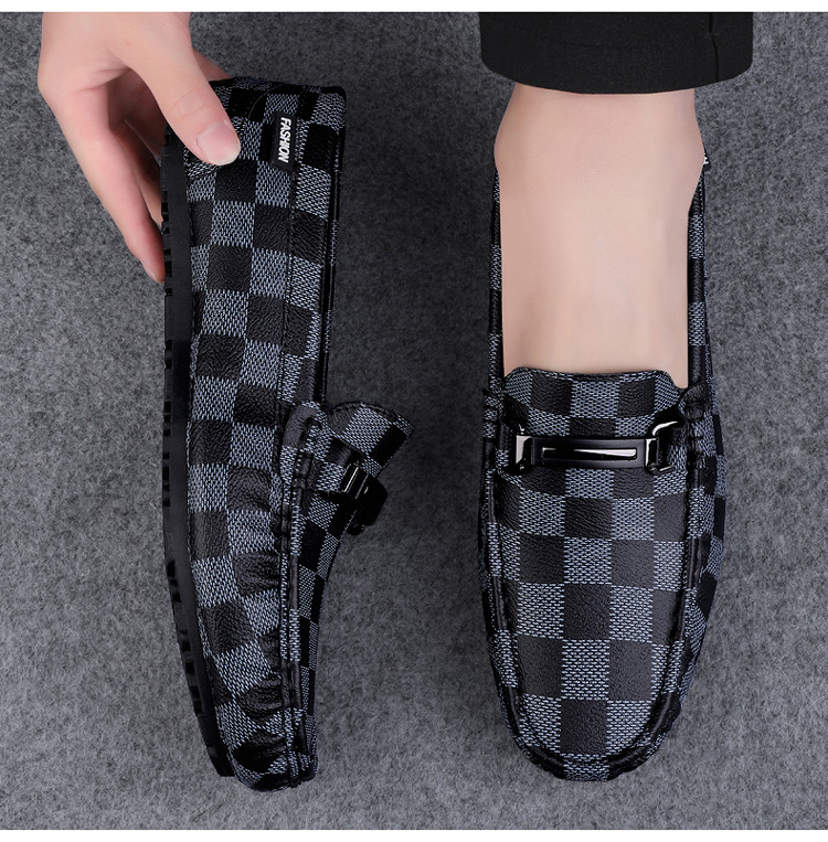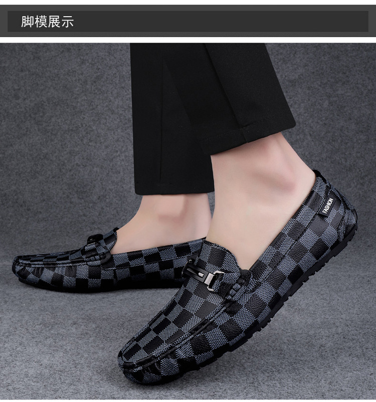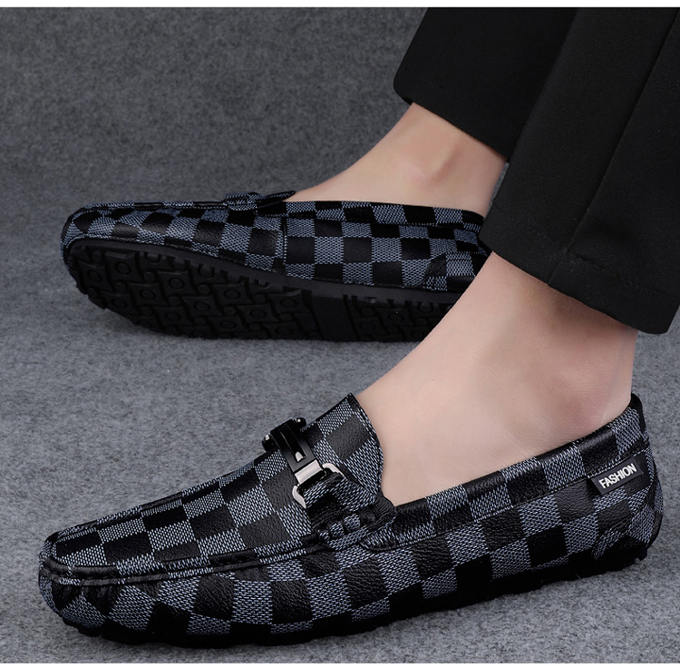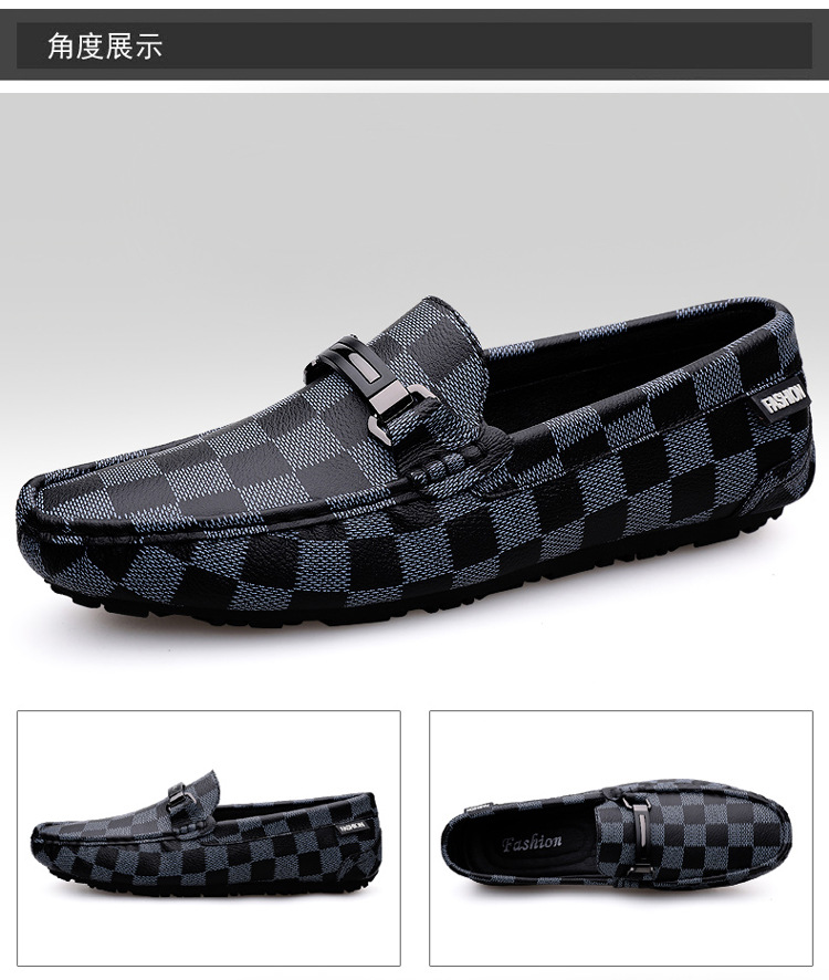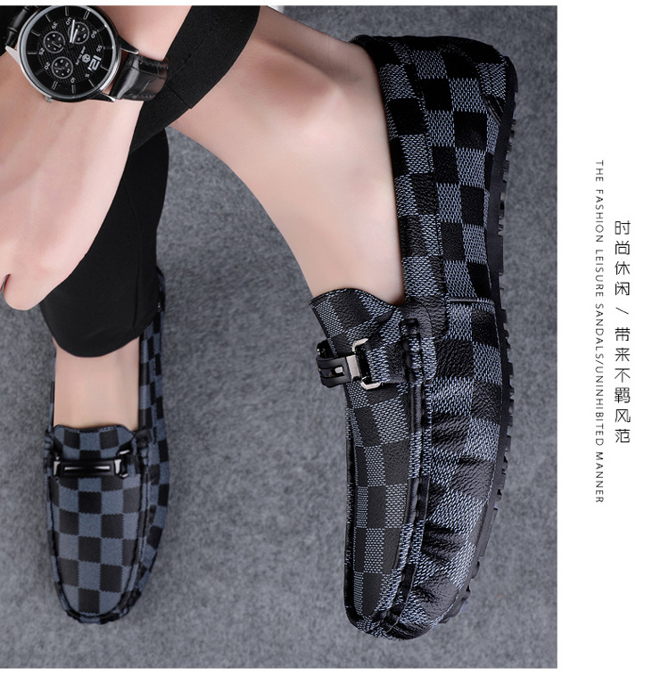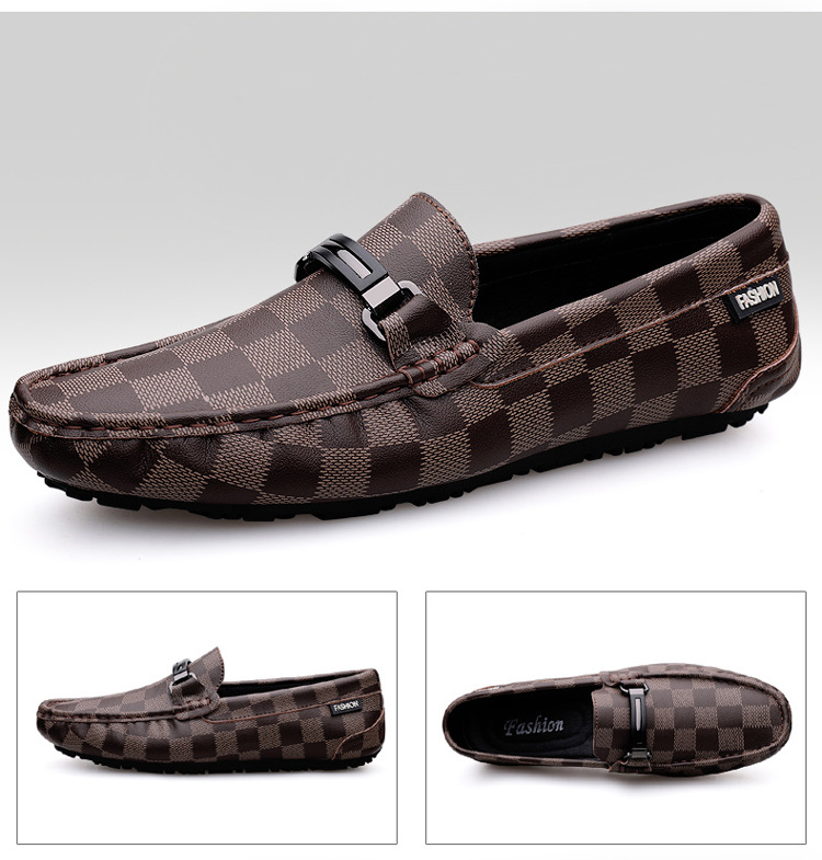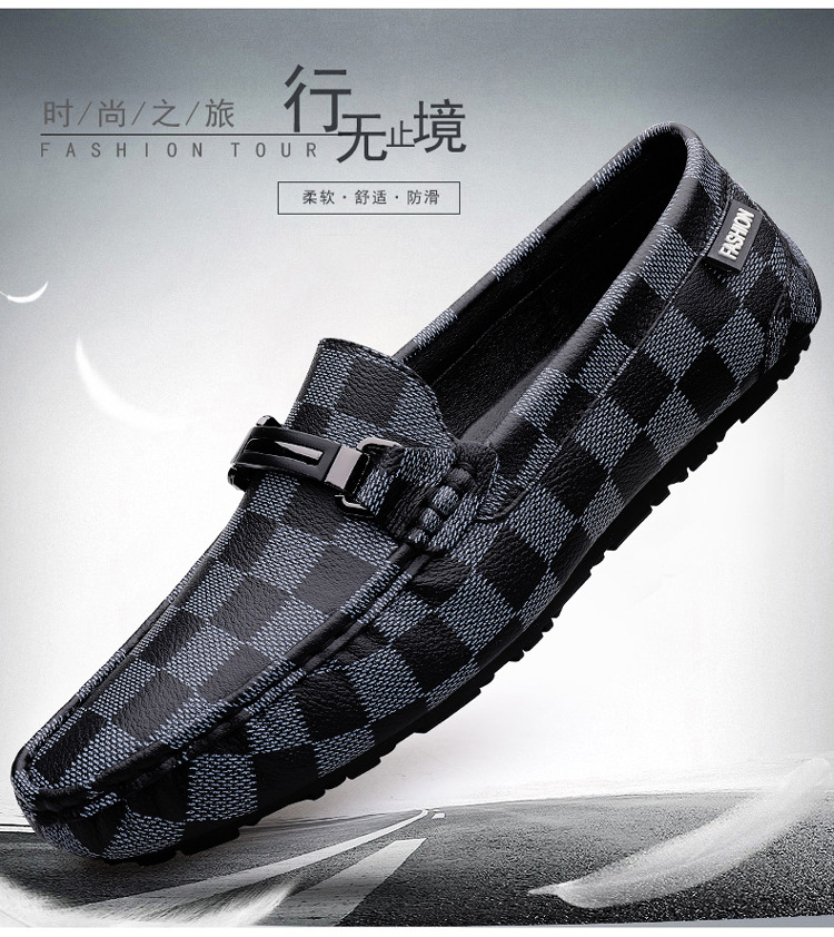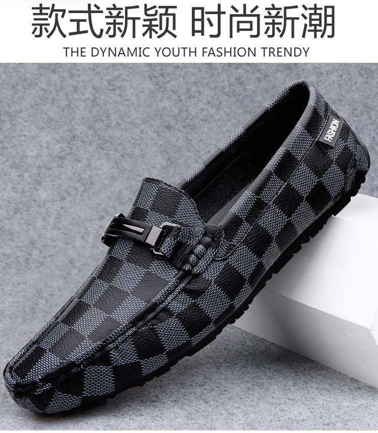 Ajedrez al por mayor y cartas de otoño de moda ventilada antideslizante zapatos Bean zapatos casuales de cuero suave para hombres