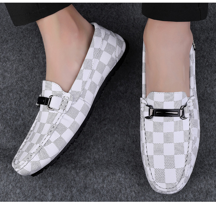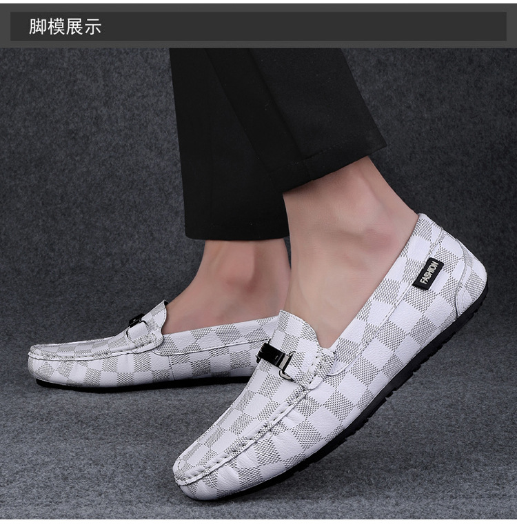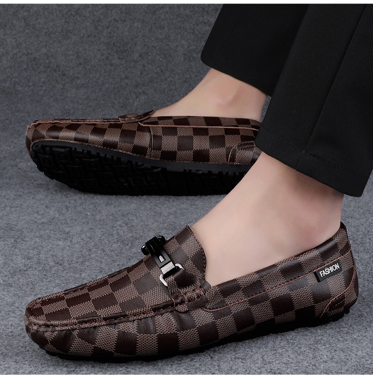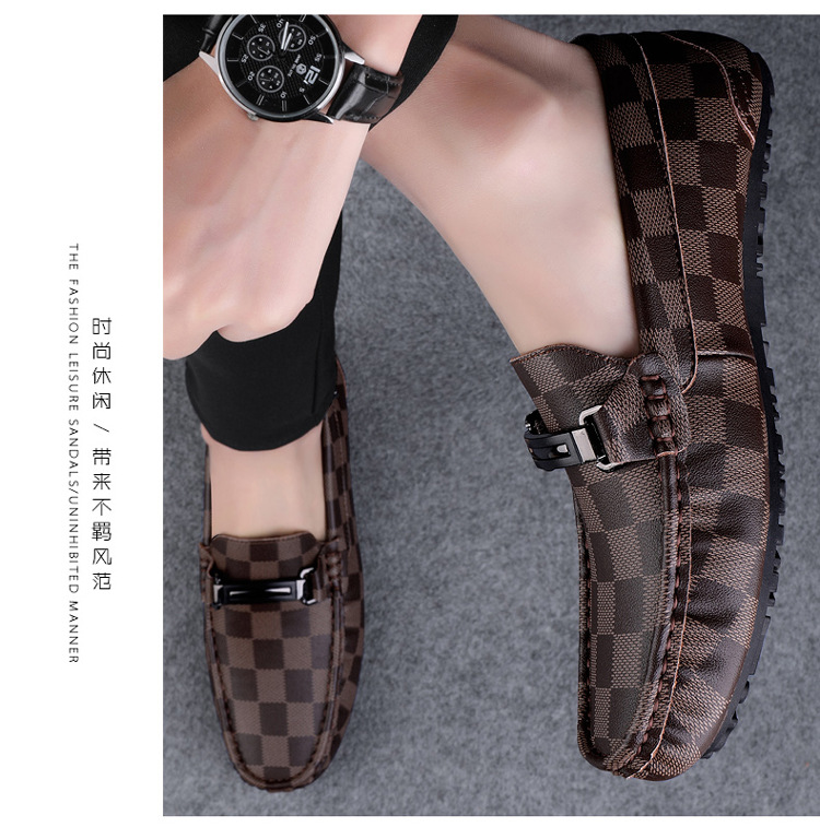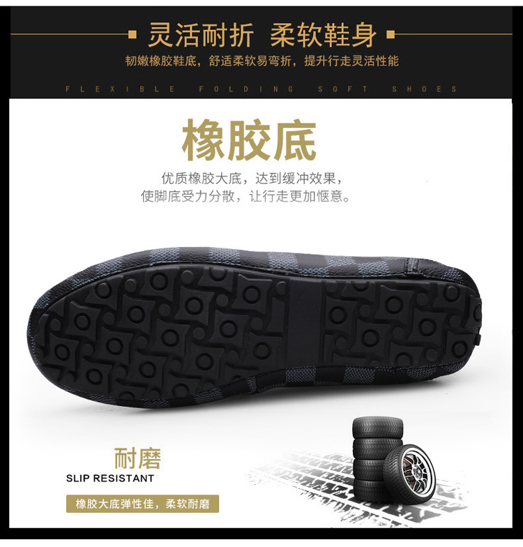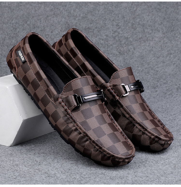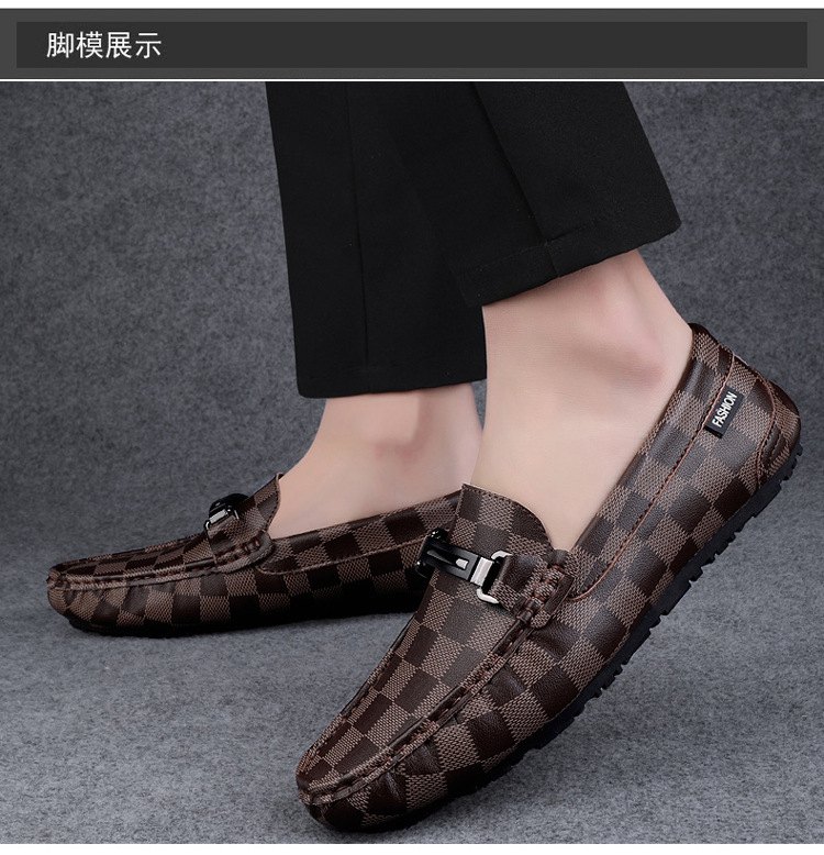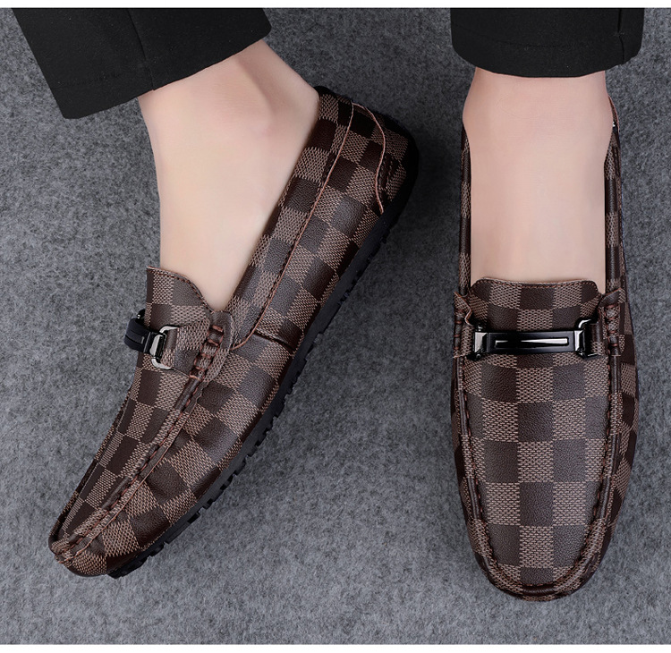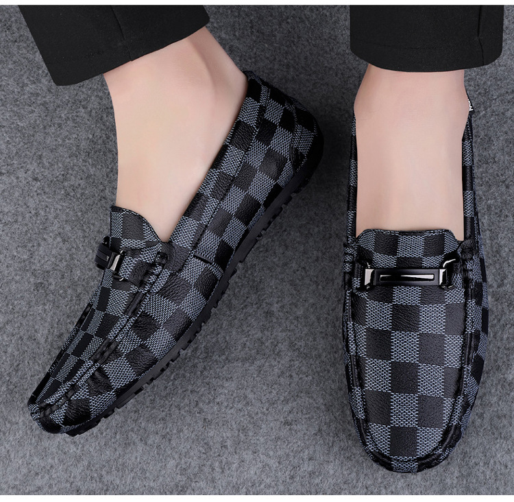 Ajedrez al por mayor y cartas de otoño de moda ventilada antideslizante zapatos Bean zapatos casuales de cuero suave para hombres