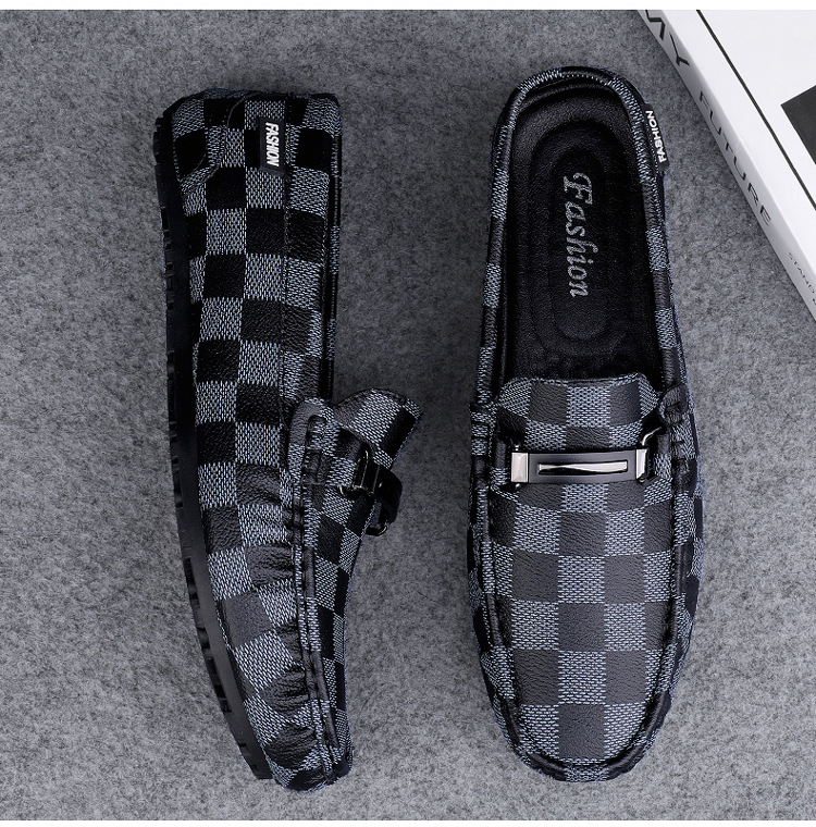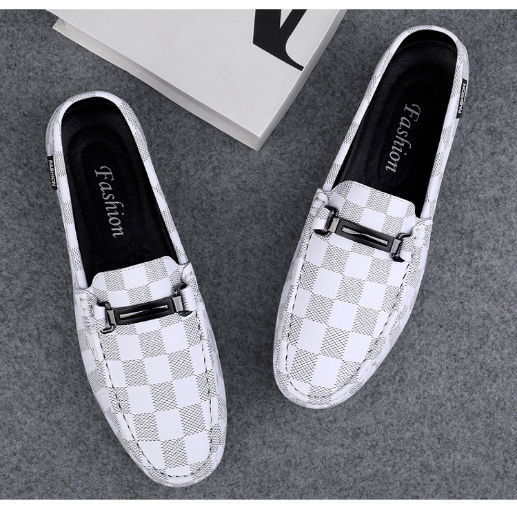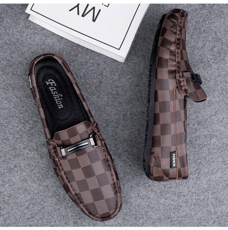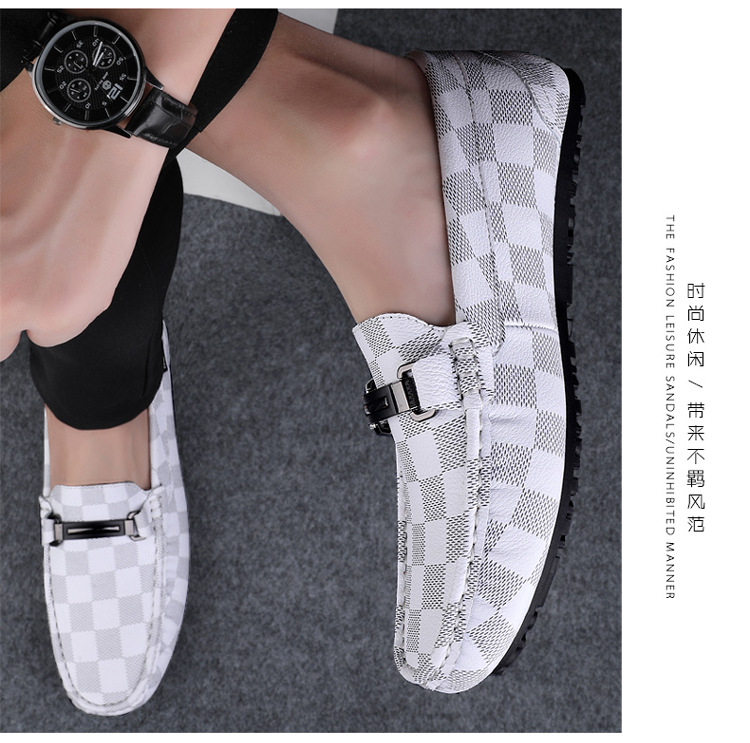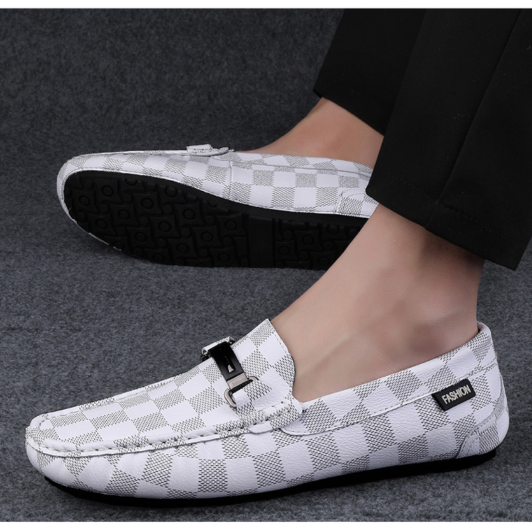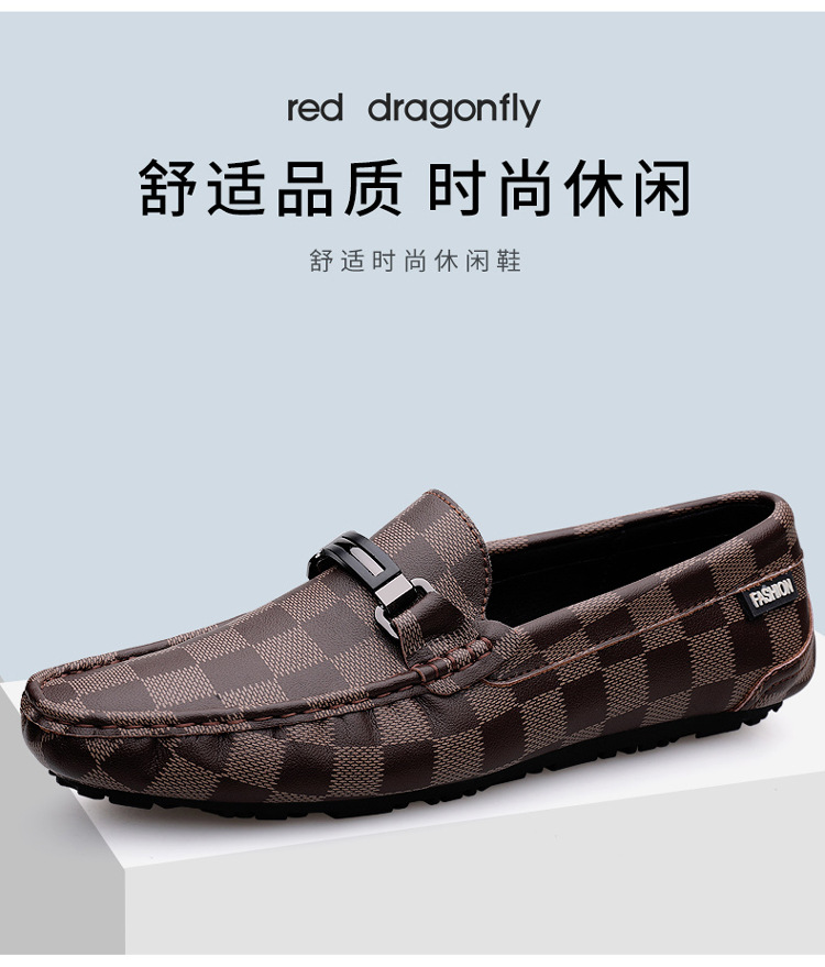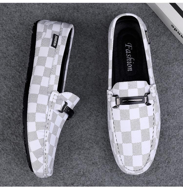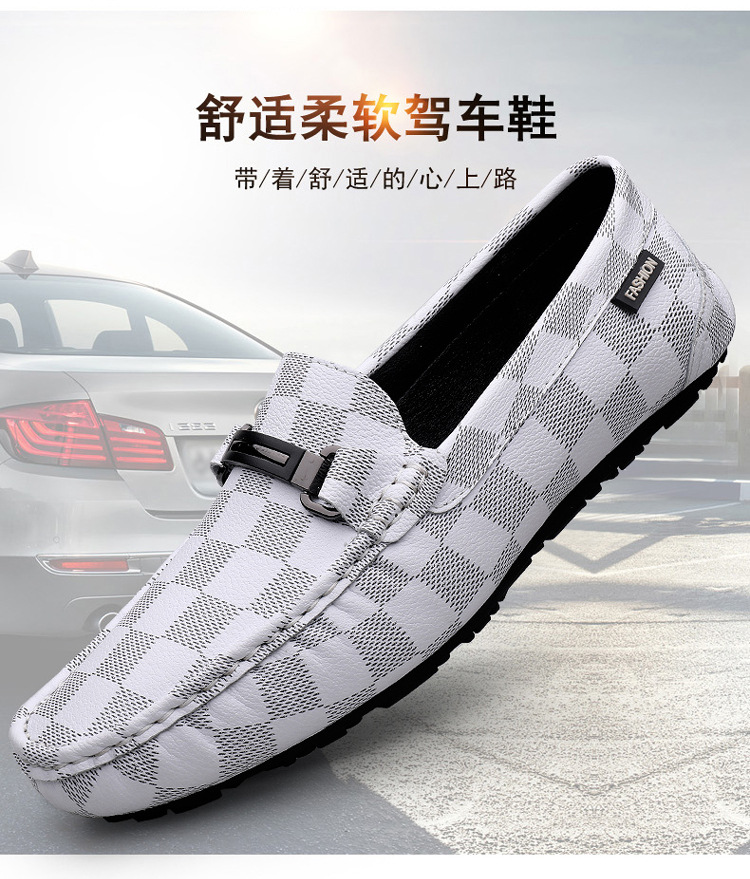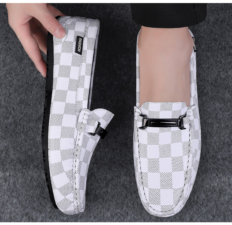 Ajedrez al por mayor y cartas de otoño de moda ventilada antideslizante zapatos Bean zapatos casuales de cuero suave para hombres