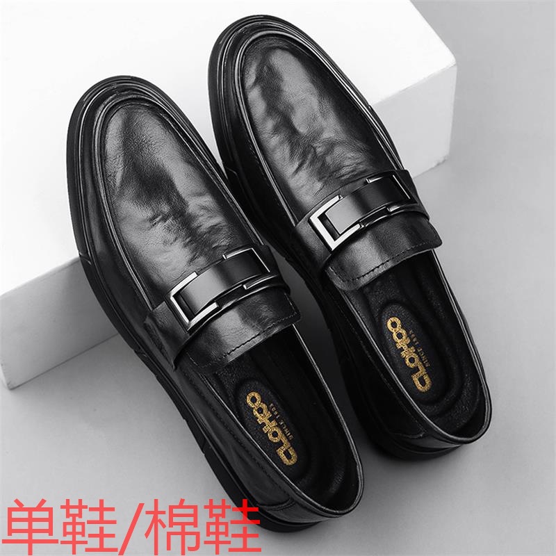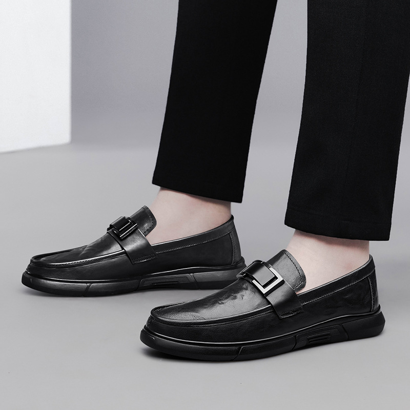 Zapatos de cuero casuales de negocios para hombres, zapatos de suela gruesa, zapatos de conducción de moda juvenil, cuatro estaciones, zapatos de cuero para hombres.