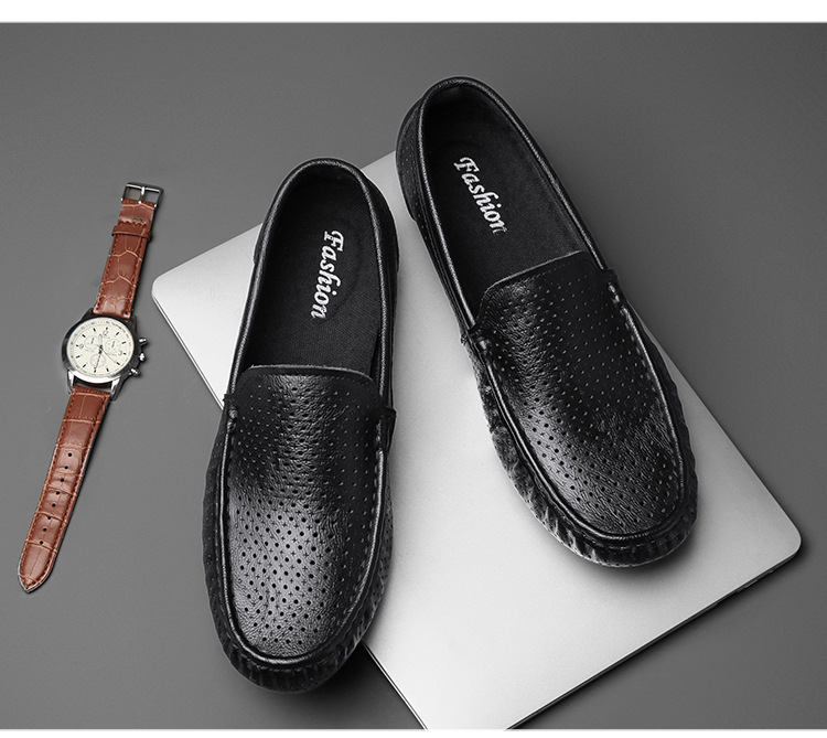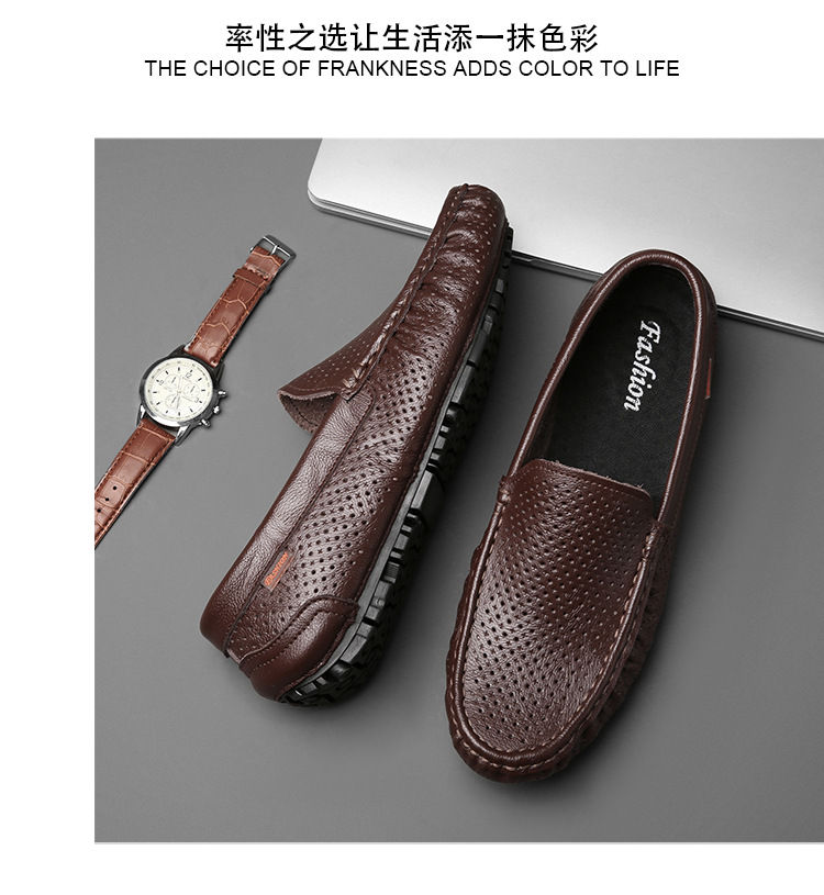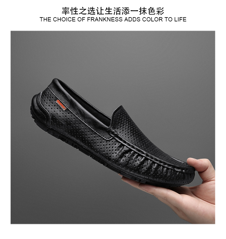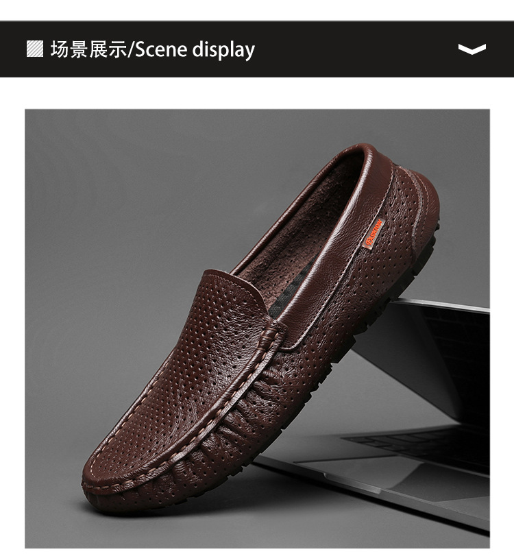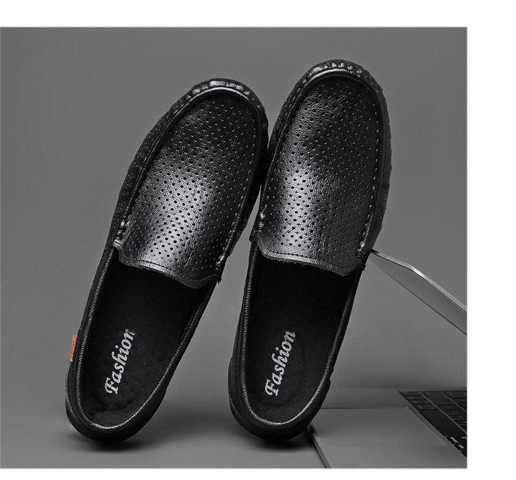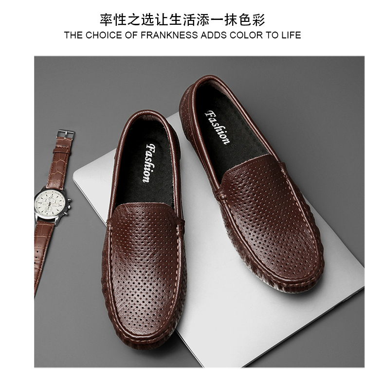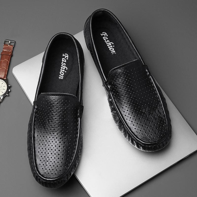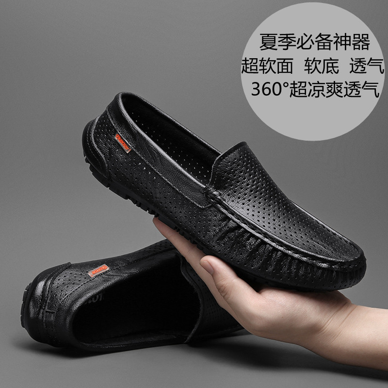 Zapatos de cuero genuino para hombres 2025 zapatos de negocios británicos transpirables con suela suave, zapatos casuales perezosos con un pie, zapatos de tacón bajo para hombres