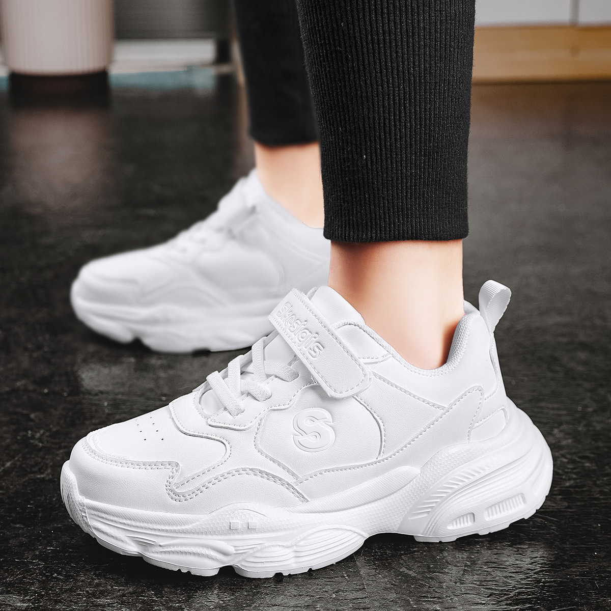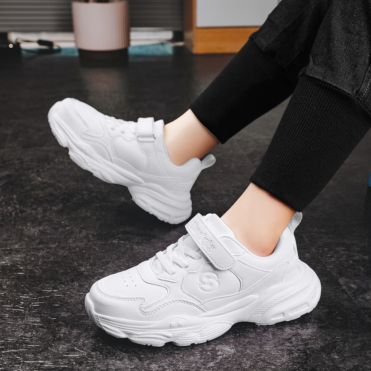 Zapatos deportivos blancos de cuero de malla para niños otoño y invierno zapatos blancos para niños zapatos blancos para correr zapatos casuales para niños mayores