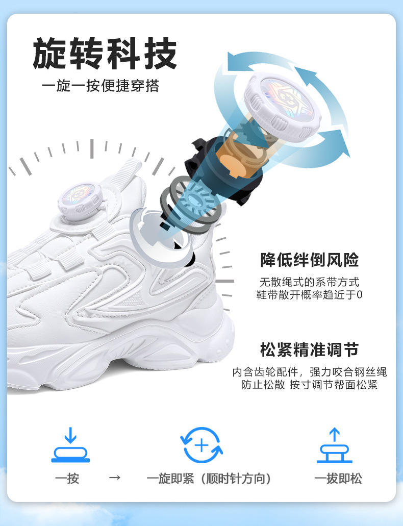 Comercio exterior transfronterizo zapatos para niños zapatos deportivos de piel zapatos de corrida blancos zapatos giratorios para estudiantes de niñas