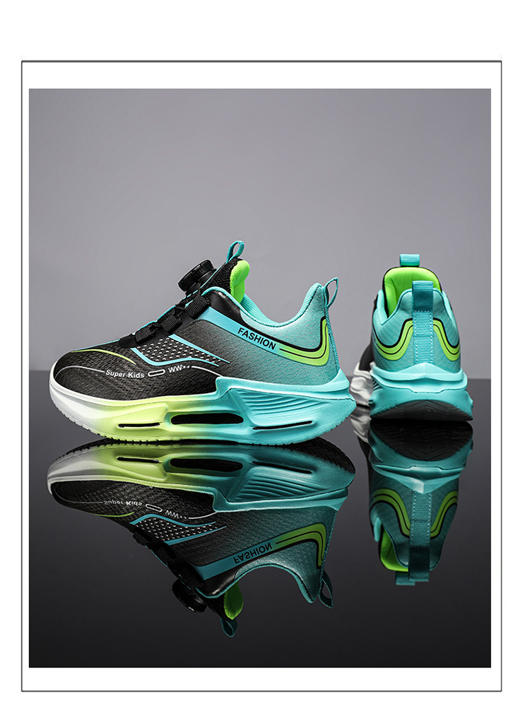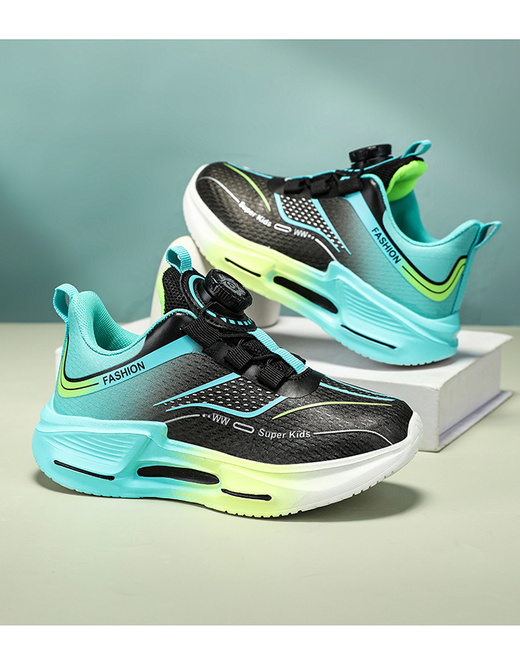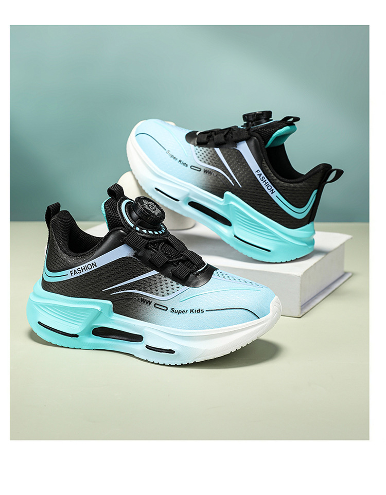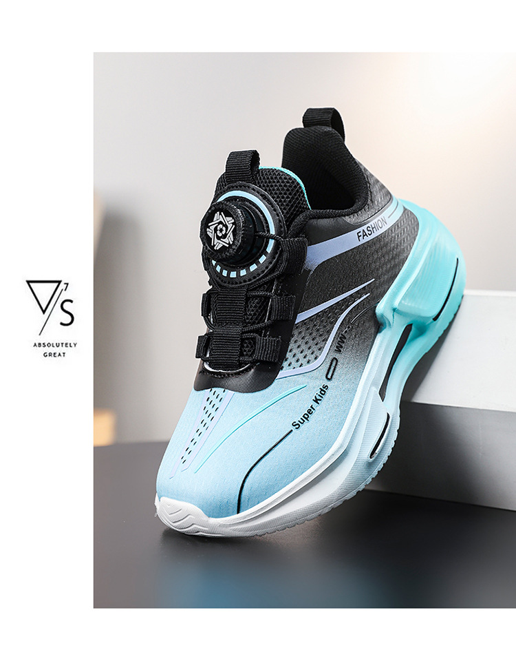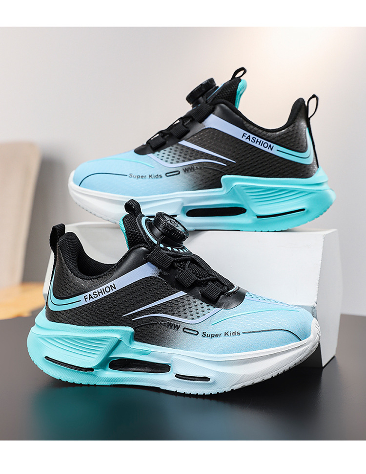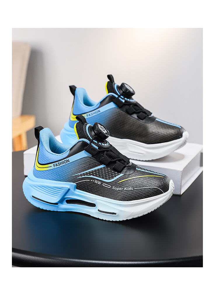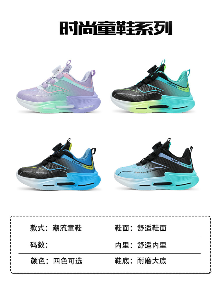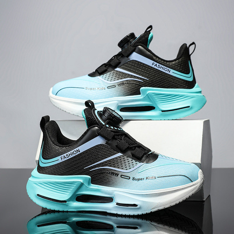 Fábrica directa de botón giratorio para niños zapatos de carrera primavera y otoño antideslizante para niños y niñas zapatos deportivos transpirables ligeros al aire libre cómodos