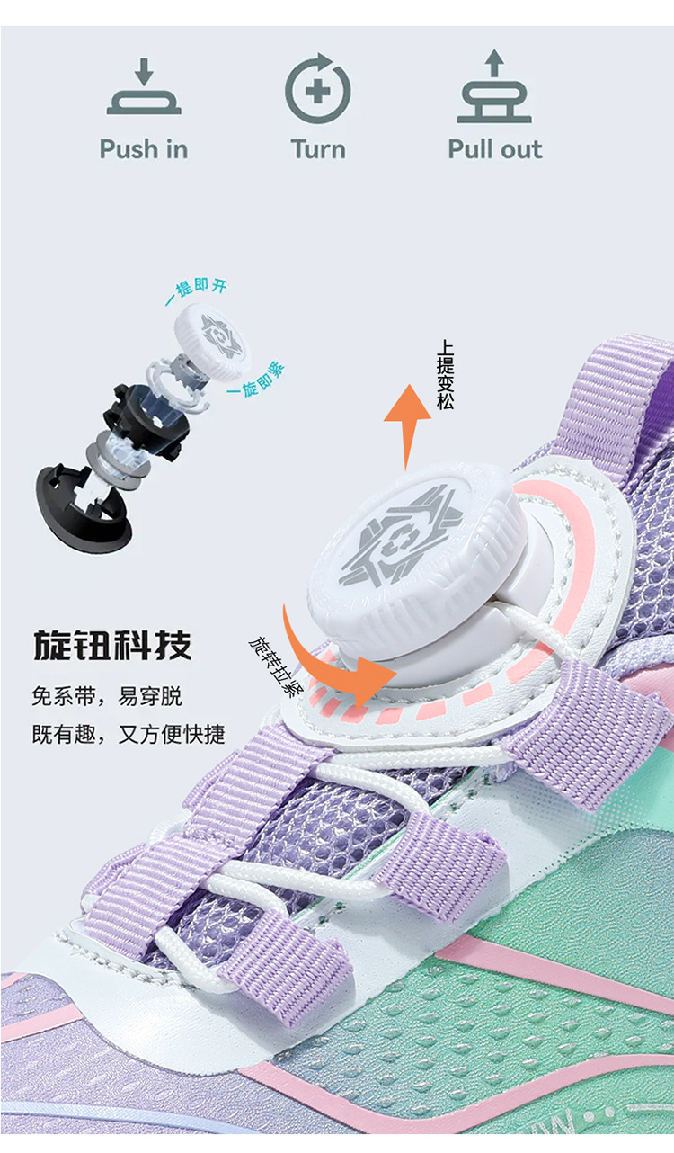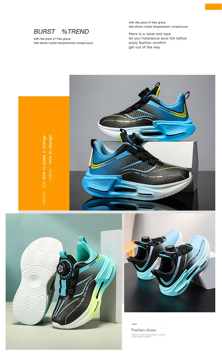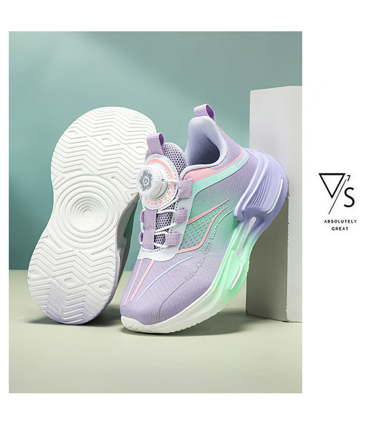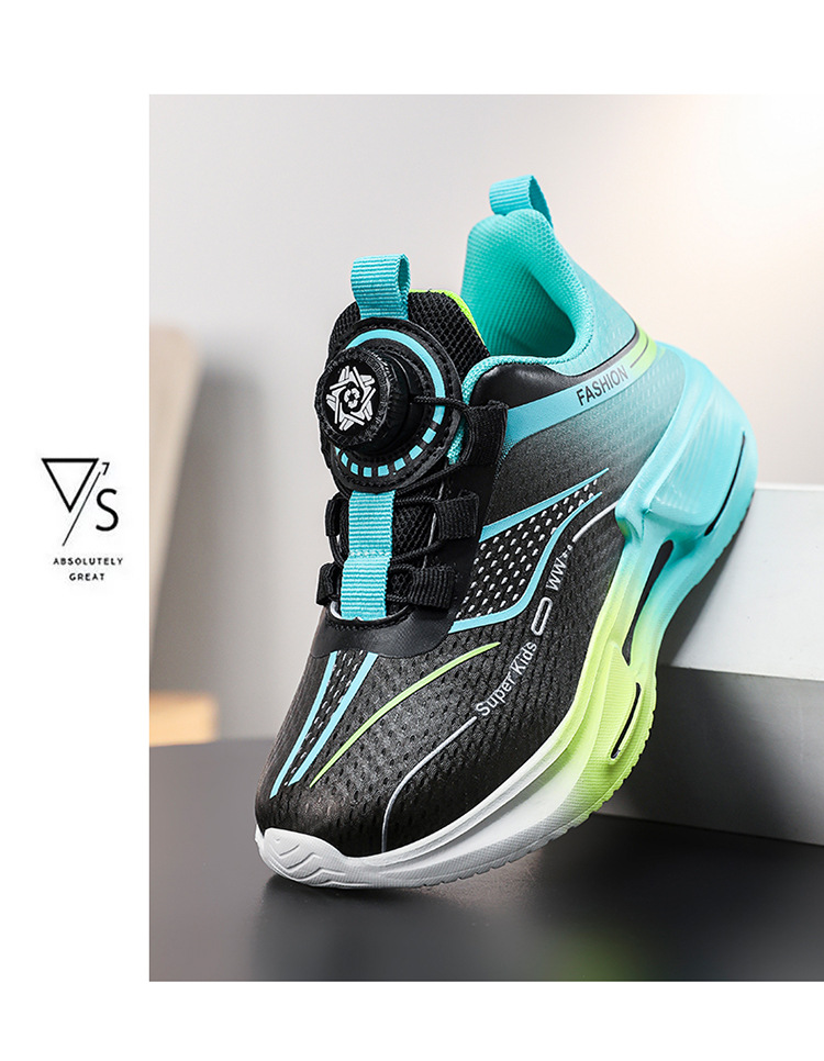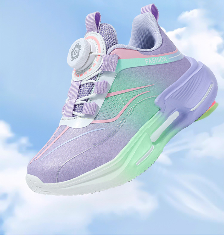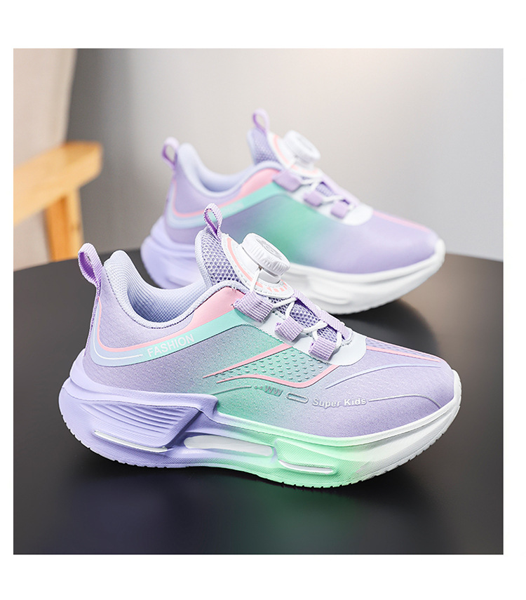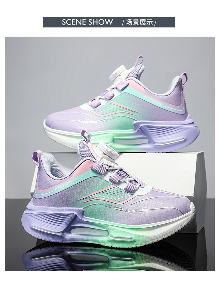 Fábrica directa de botón giratorio para niños zapatos de carrera primavera y otoño antideslizante para niños y niñas zapatos deportivos transpirables ligeros al aire libre cómodos