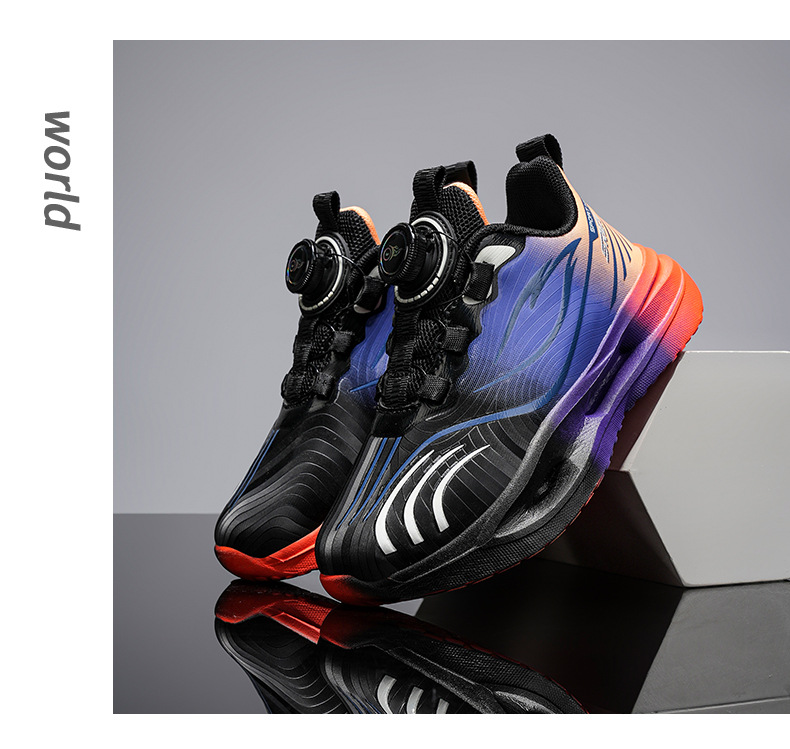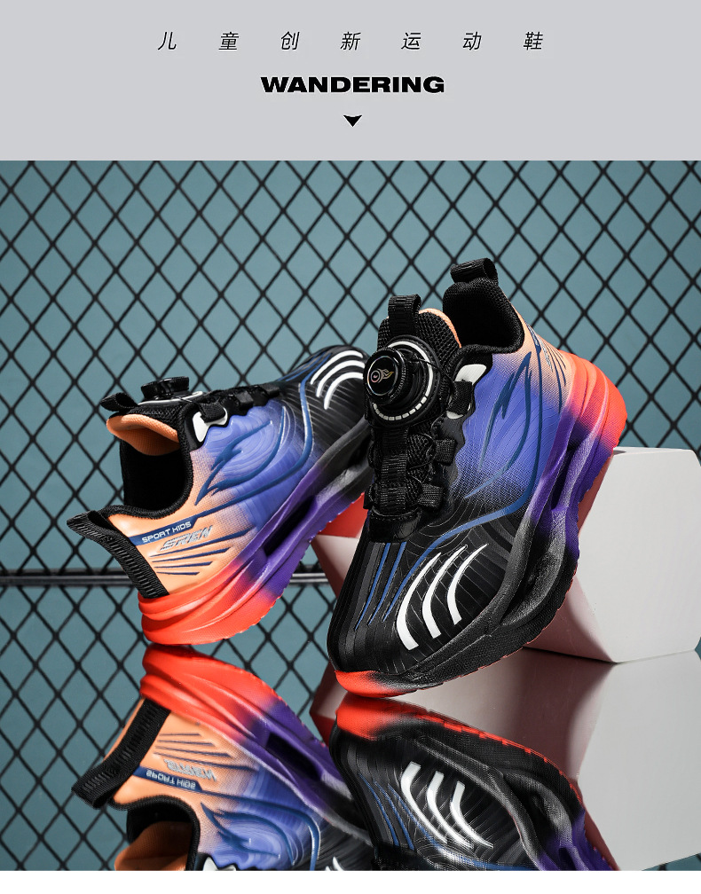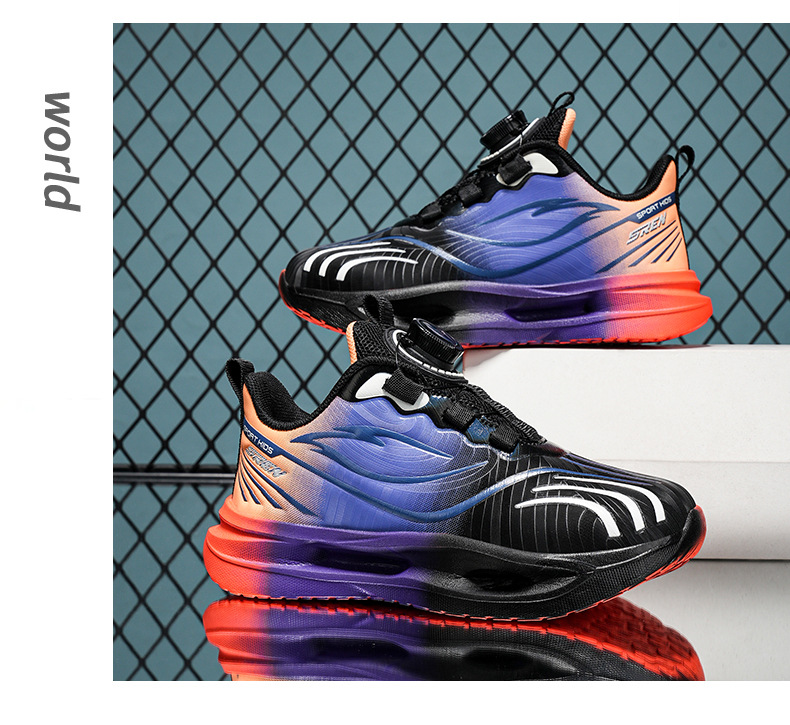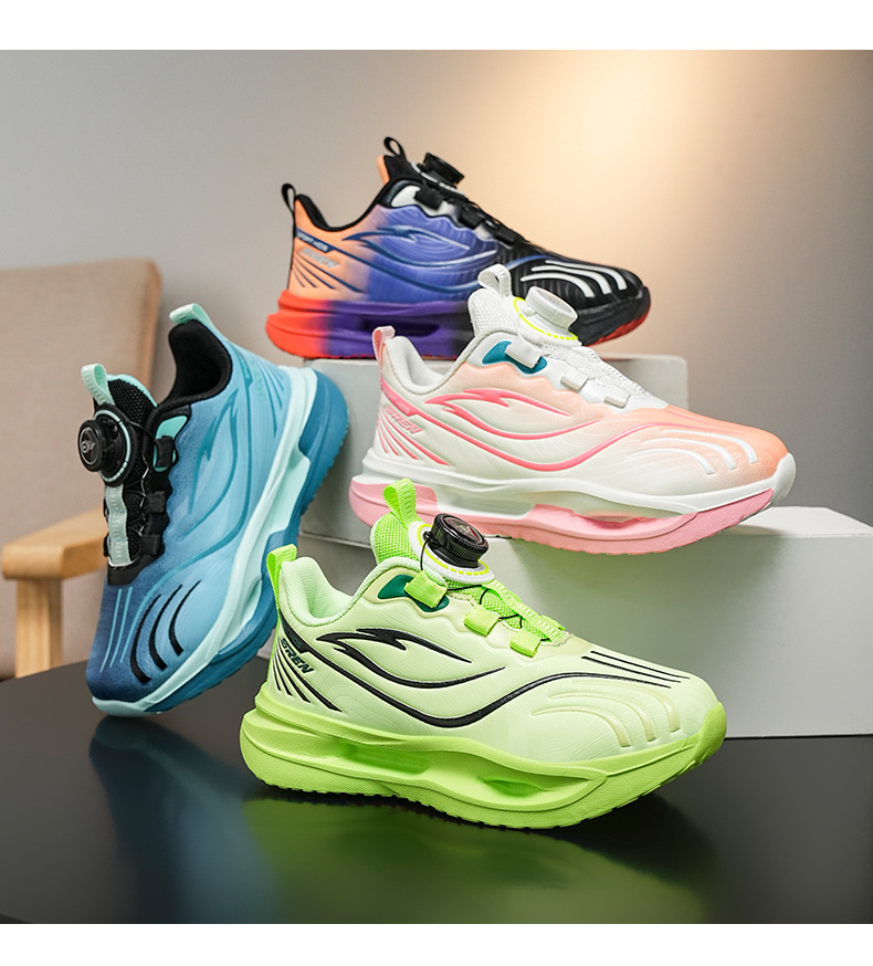 Niños callejera de marea zapatos 2025 nuevos niños coloridos zapatos transpirables casuales giratorios botones zapatos de corrida al aire libre para niñas