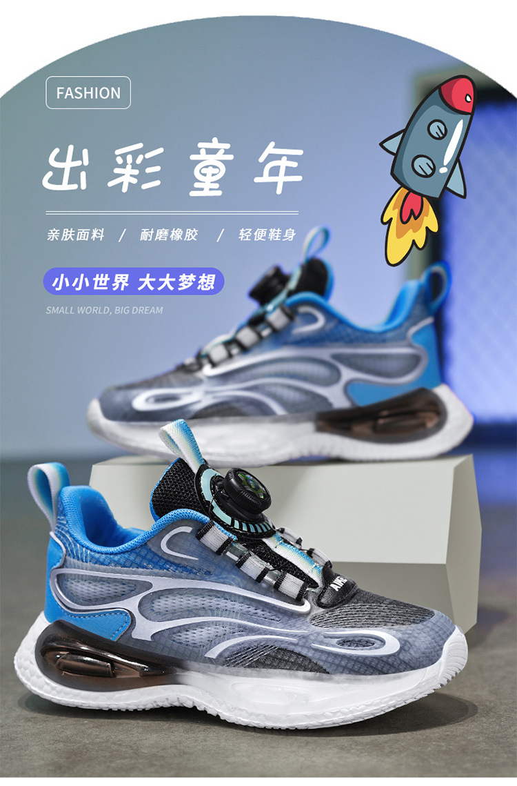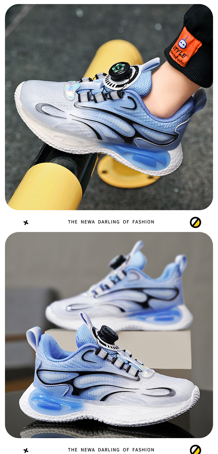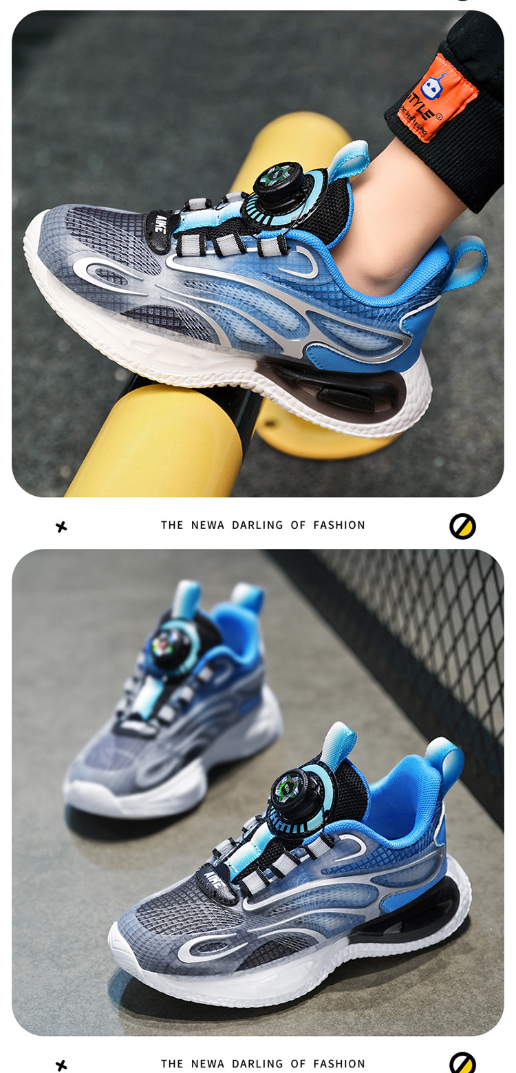 Zapatos para niños 2025 primavera y verano nuevos zapatos de deporte transpirables de malla para niños, zapatos de correr giratorios para niños grandes