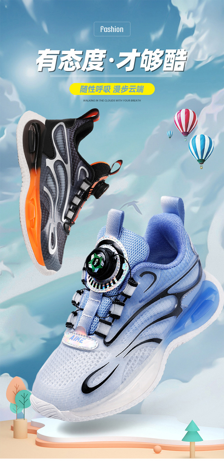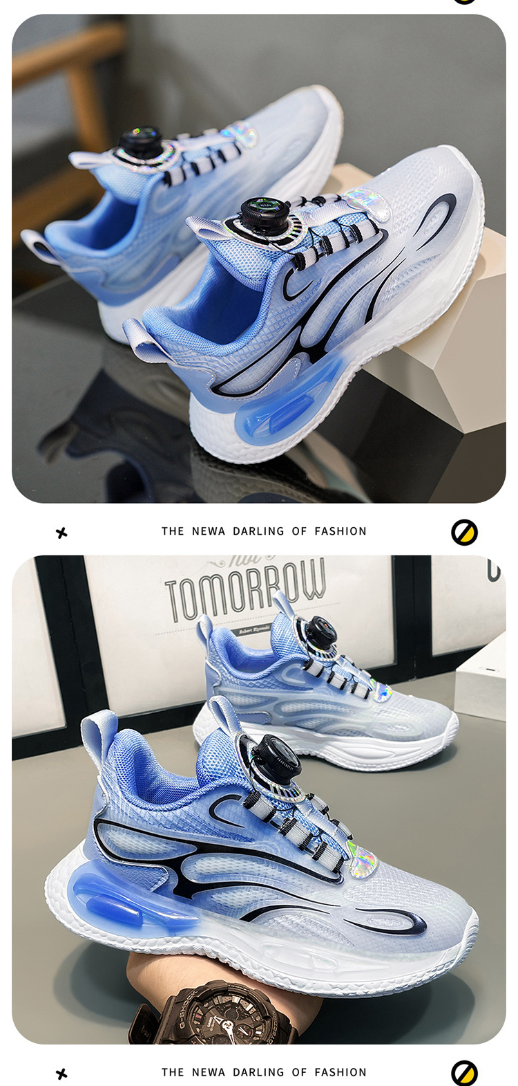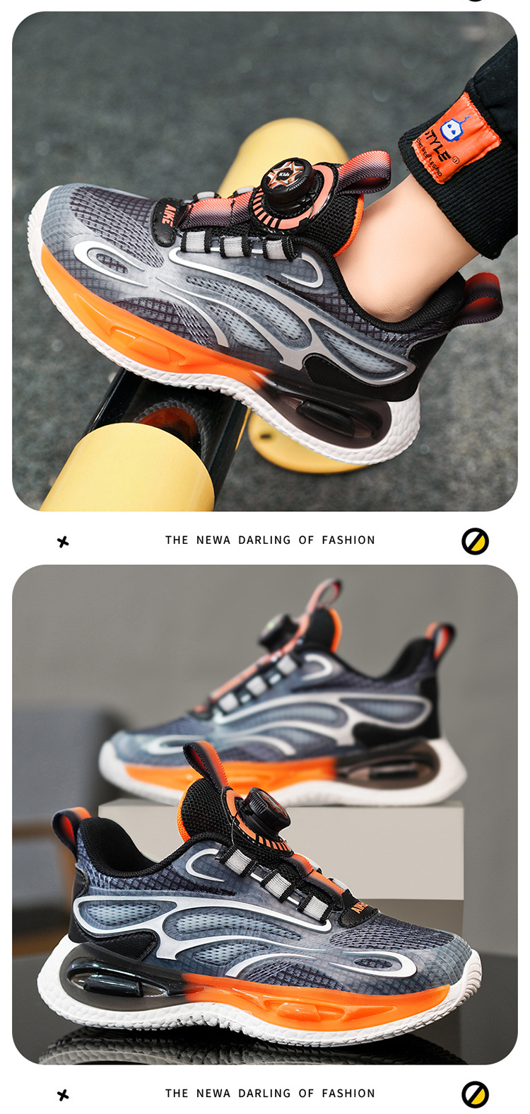 Zapatos para niños 2025 primavera y verano nuevos zapatos de deporte transpirables de malla para niños, zapatos de correr giratorios para niños grandes