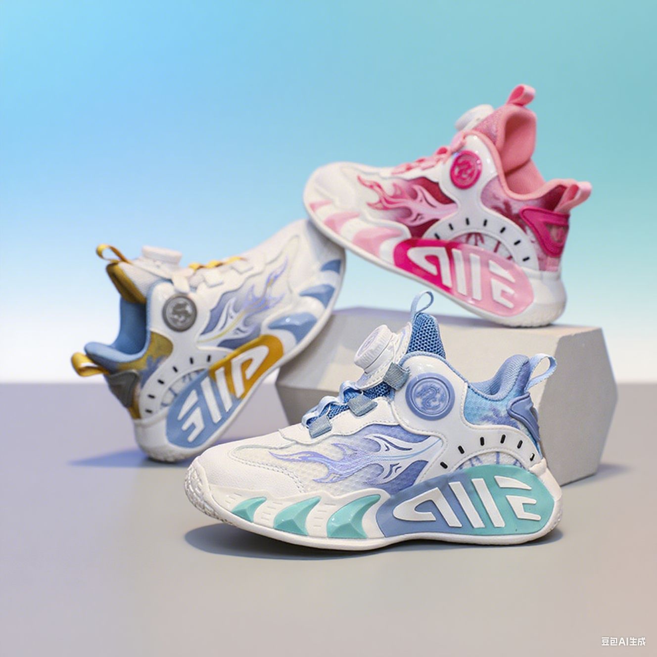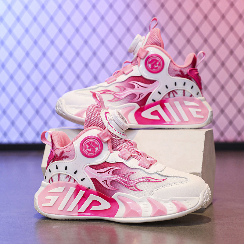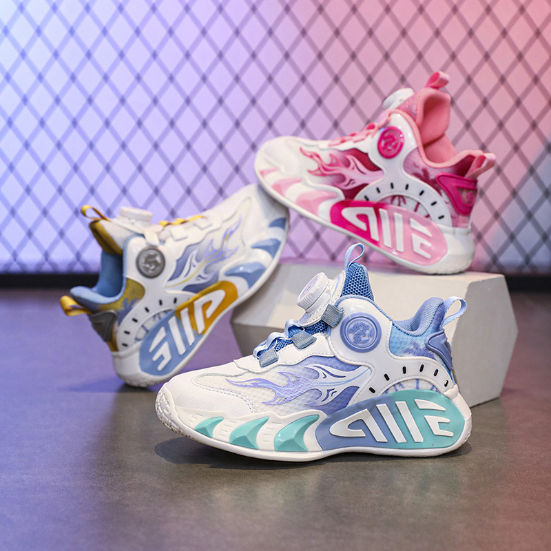 2025 otoño nuevos zapatos infantiles zapatos deportivos infantiles ligeros botones giratorios de suela suave zapatos de baloncesto para niños y niñas zapatos para correr