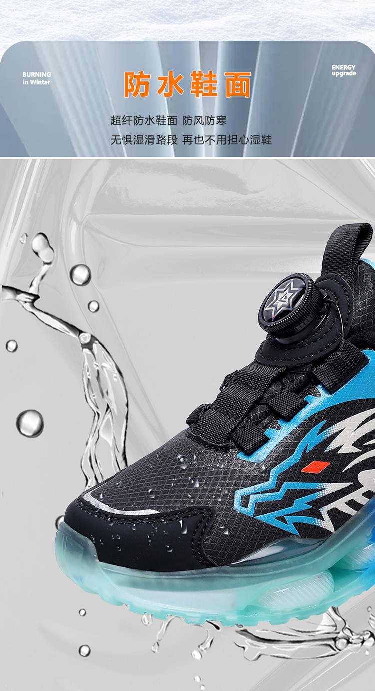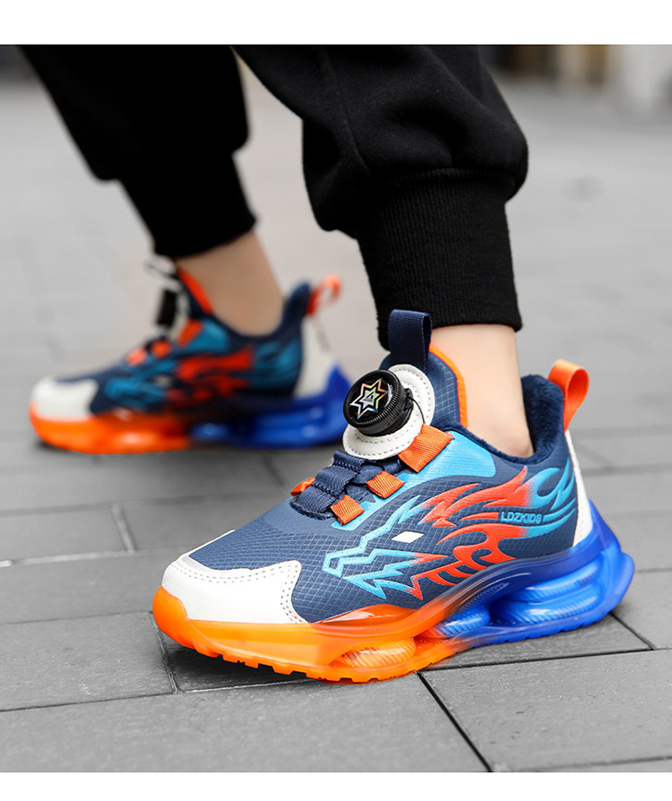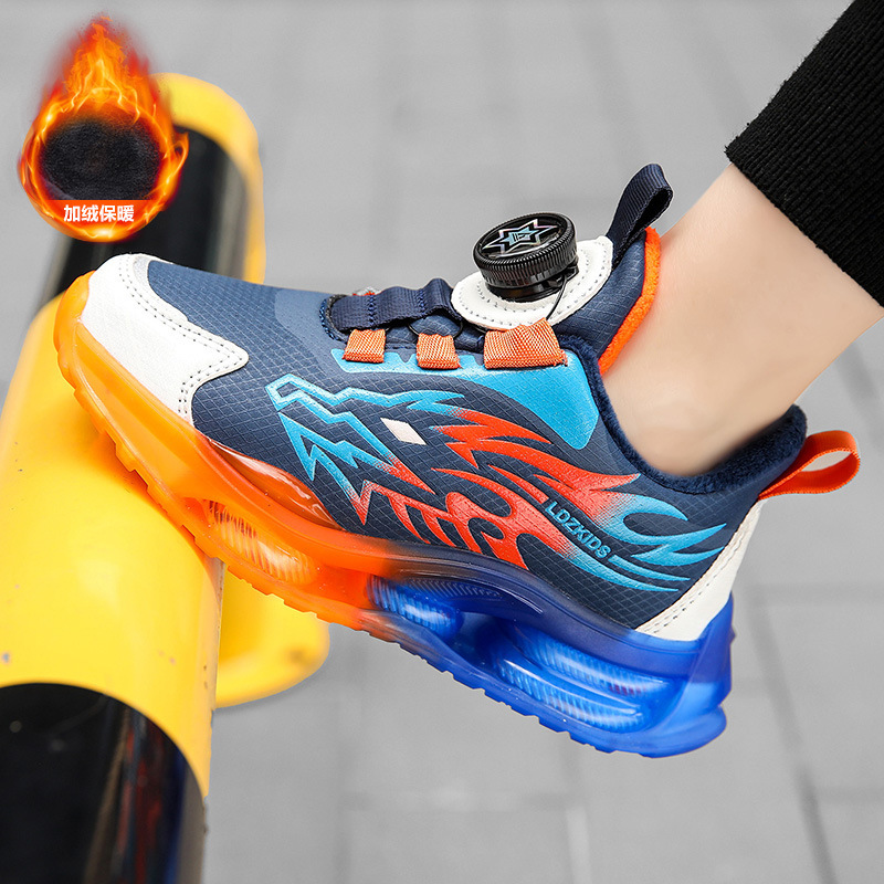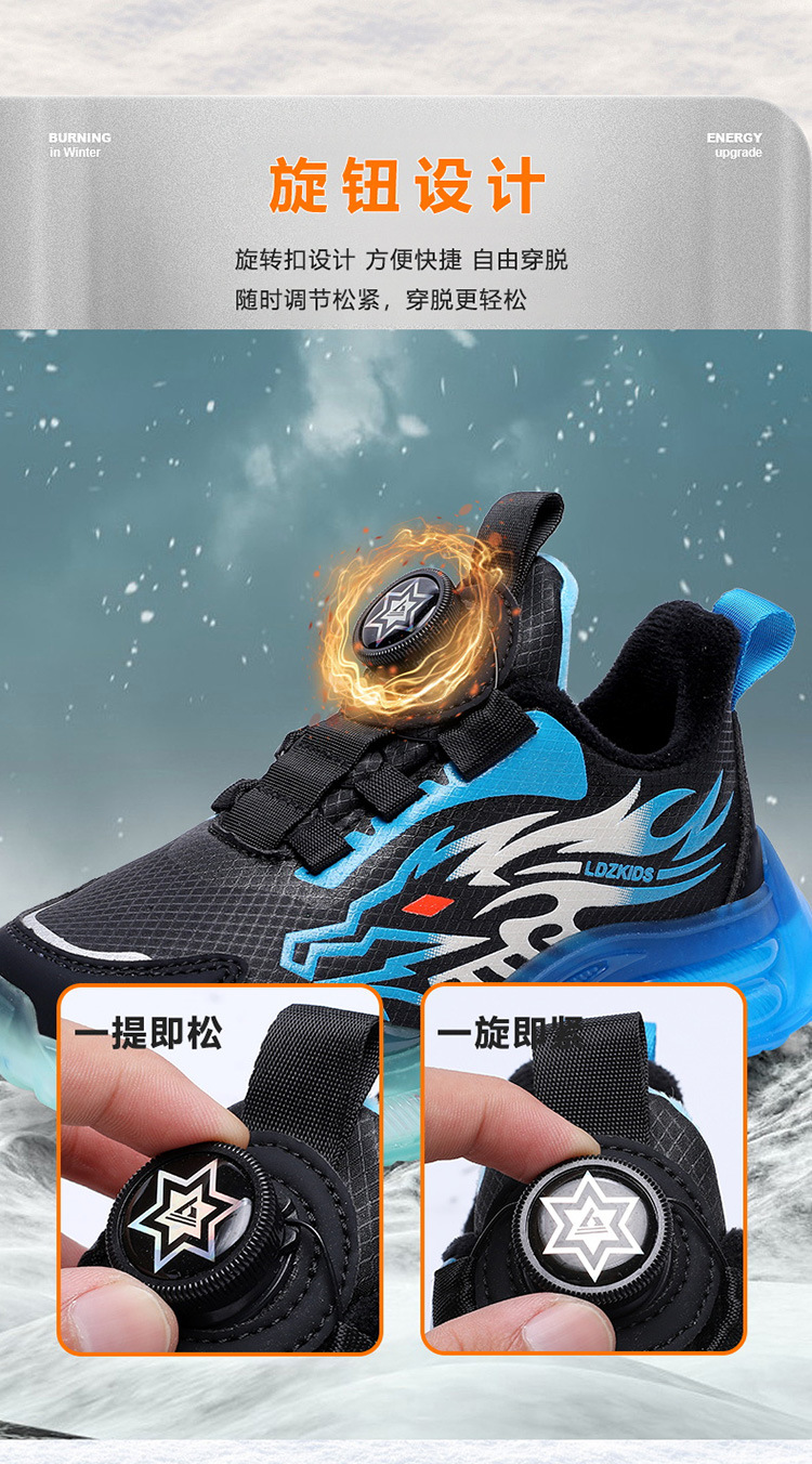 Zapatos para niños con algodón de cacho 2025, zapatos de cuero de otoño y invierno para niños, botón giratorio, zapatos de correr para niños grandes