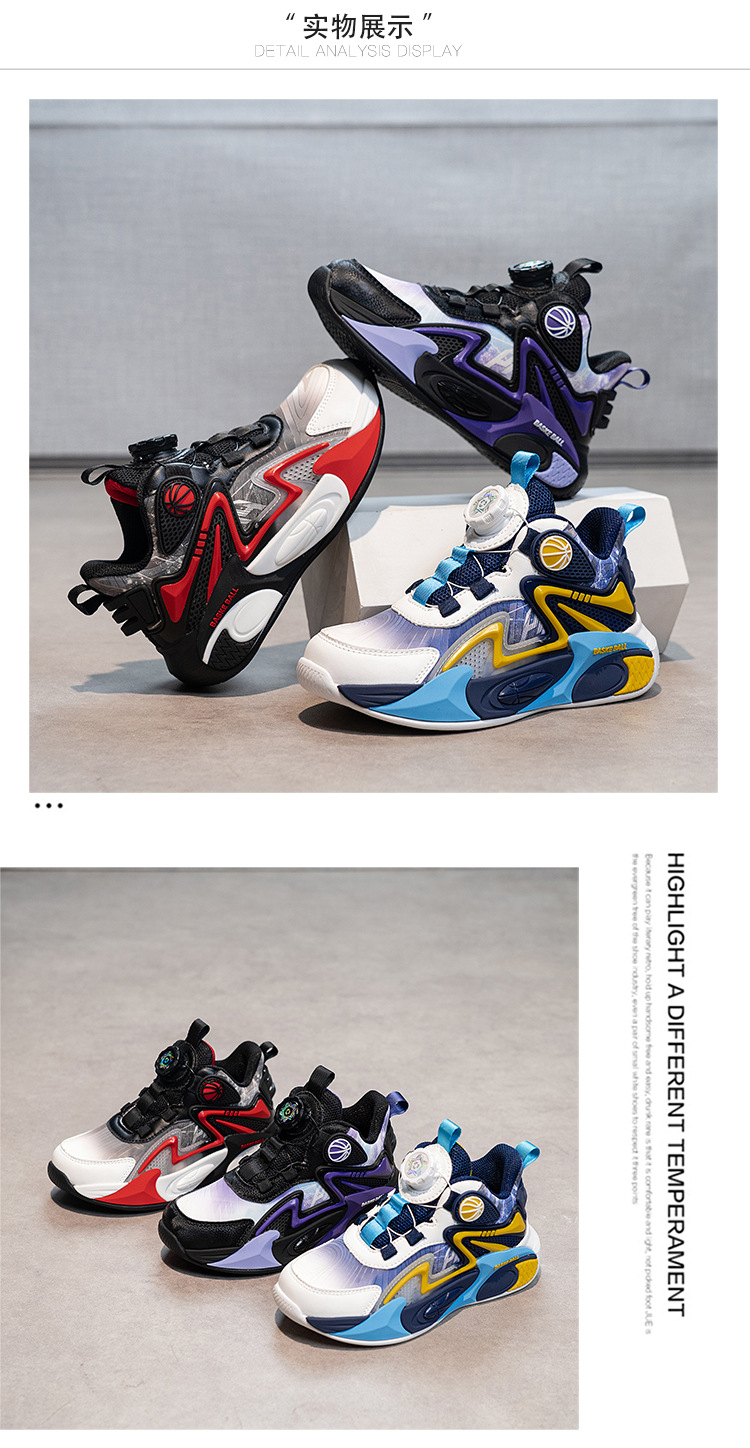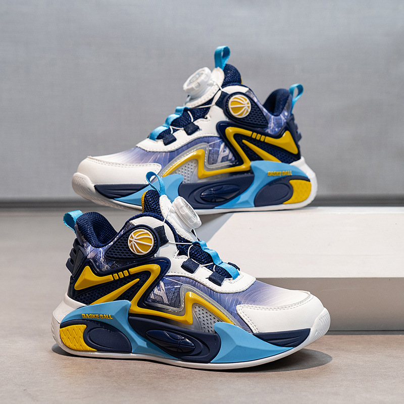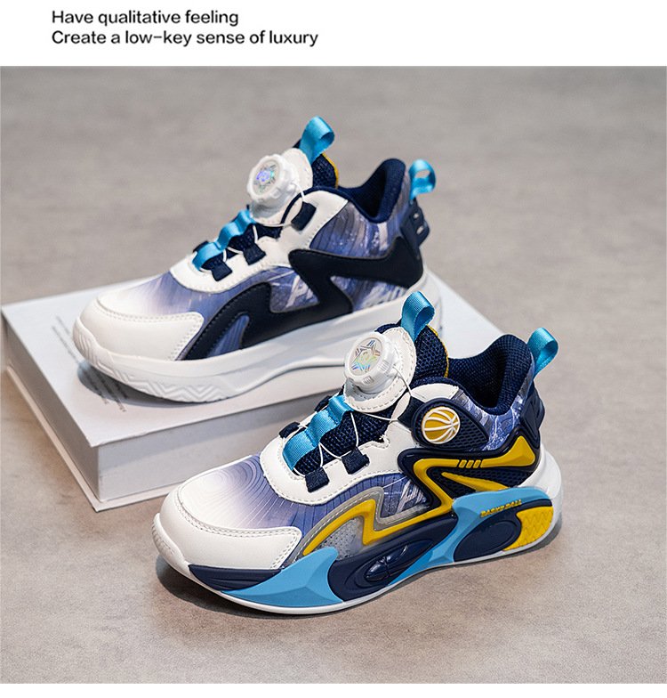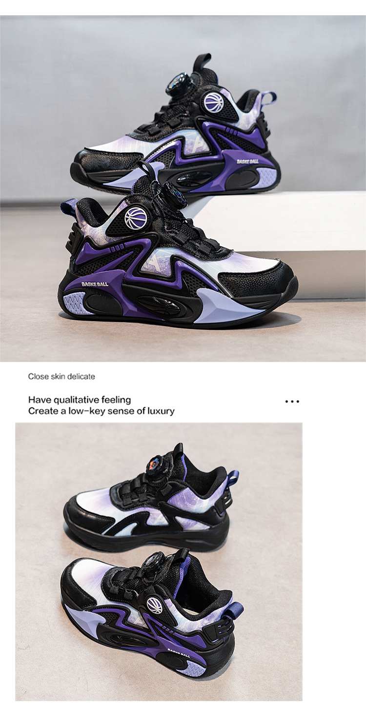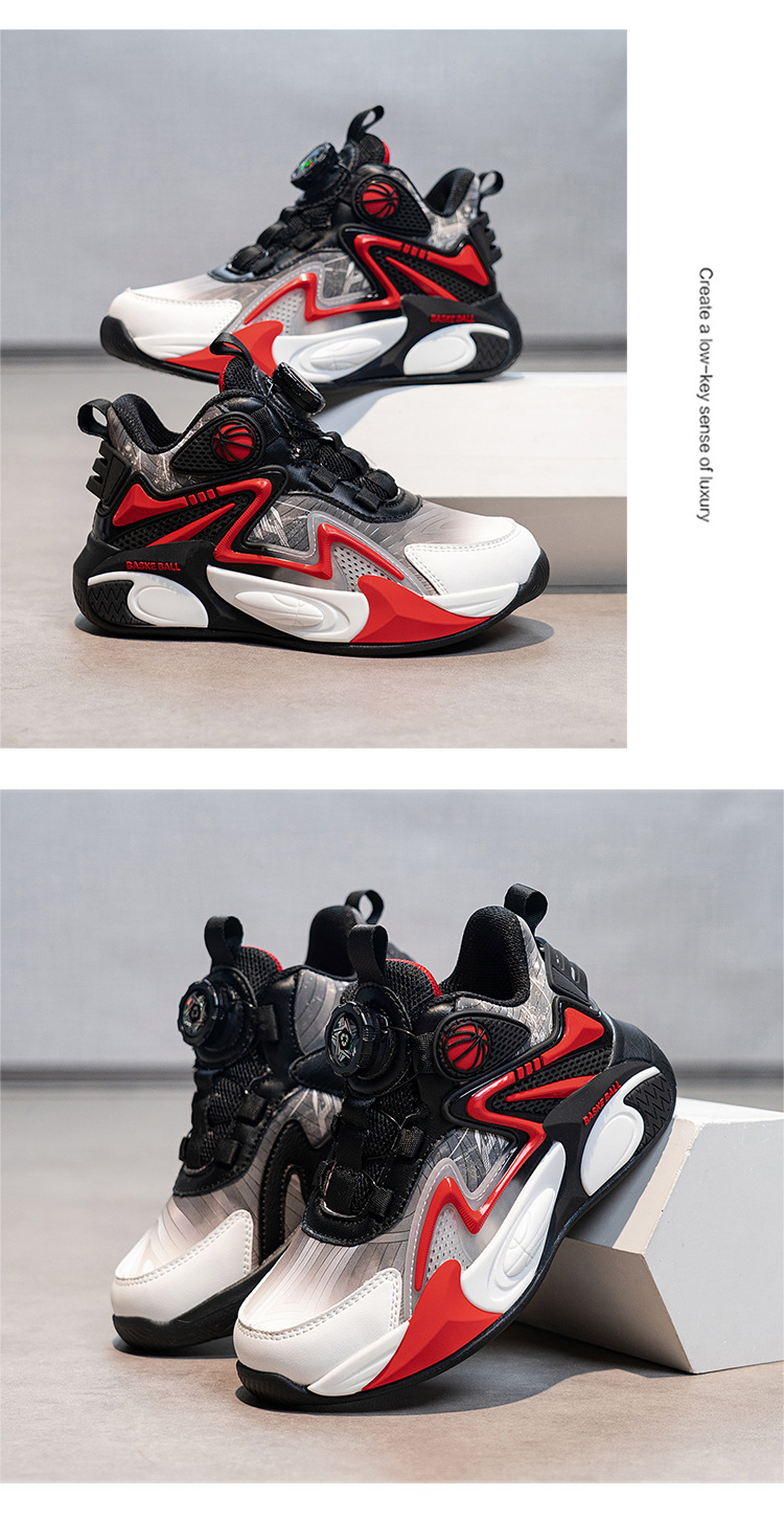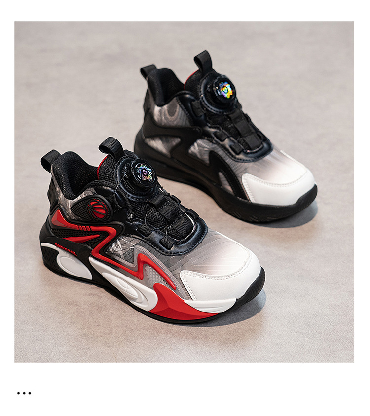 Niños de otoño 2025 nuevos zapatos de baloncesto para niños botones giratorios zapatos deportivos impermeables de cuero para niños