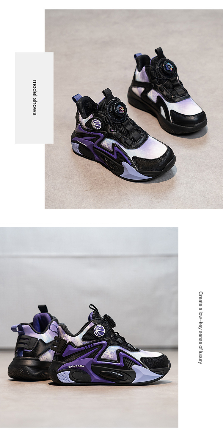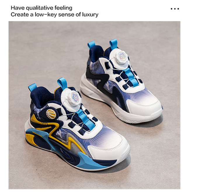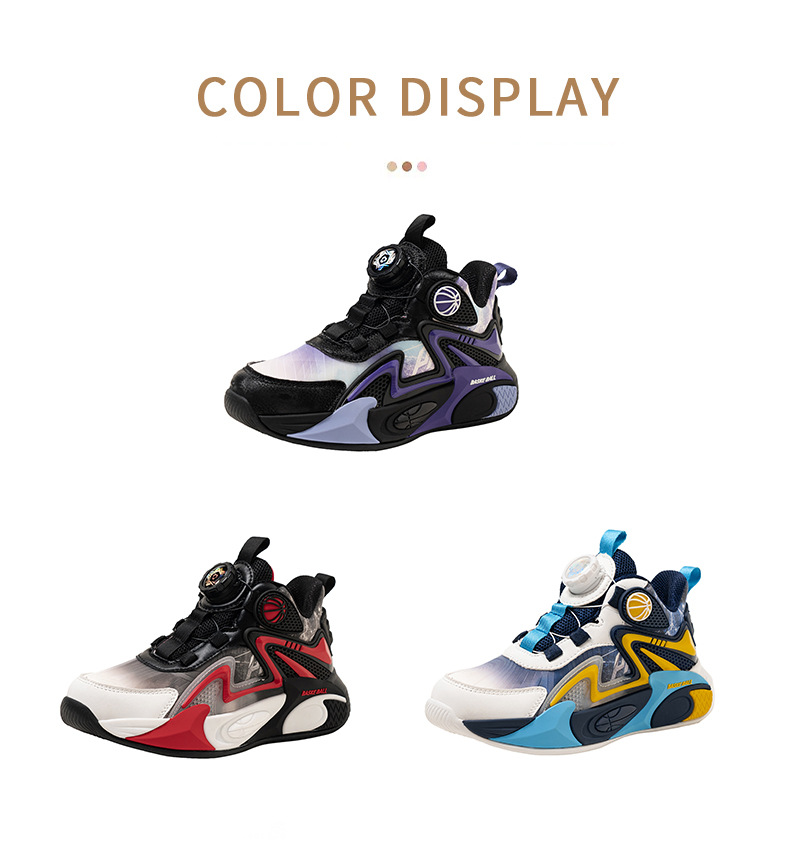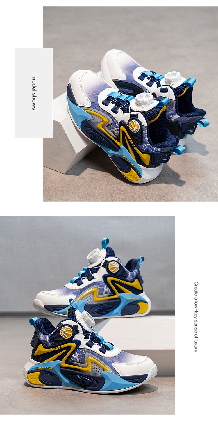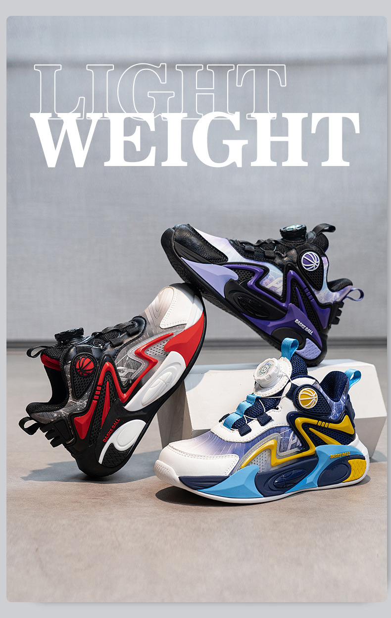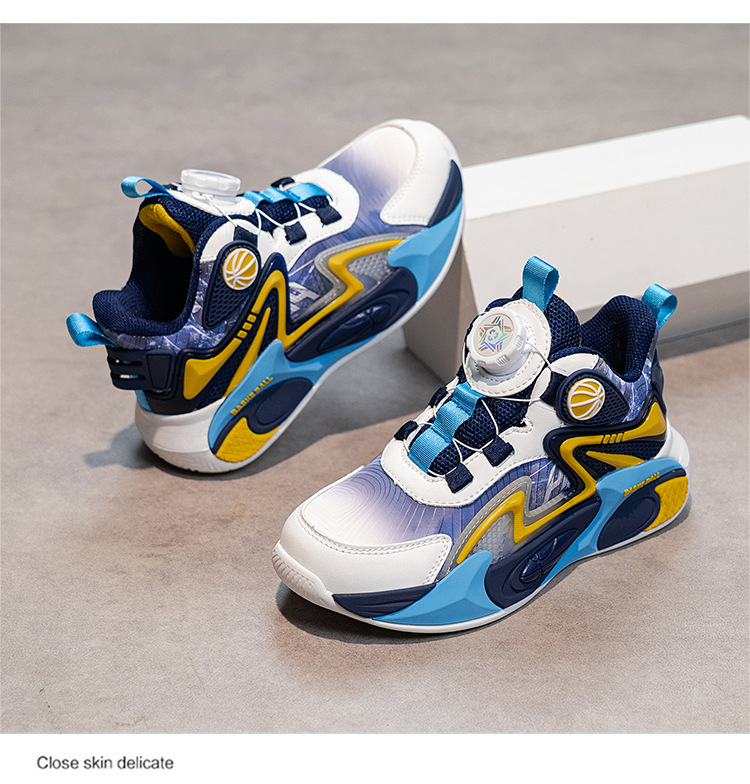 Niños de otoño 2025 nuevos zapatos de baloncesto para niños botones giratorios zapatos deportivos impermeables de cuero para niños