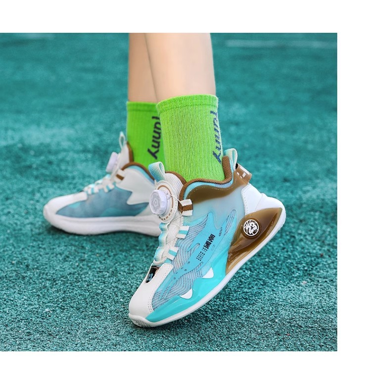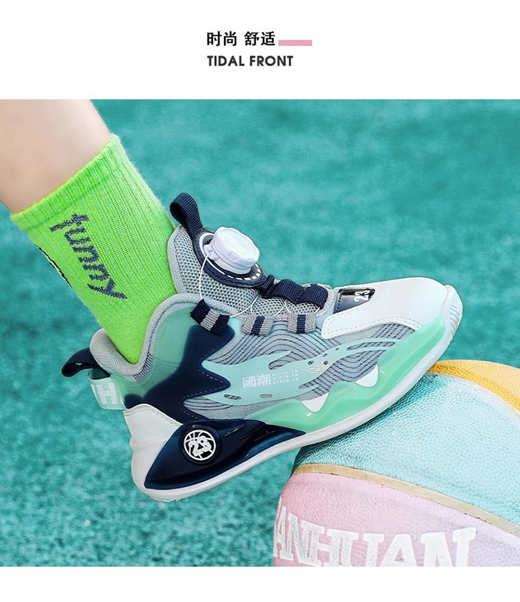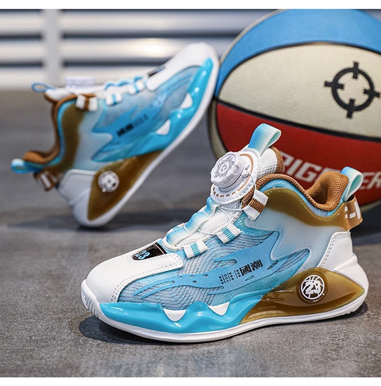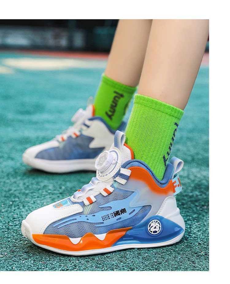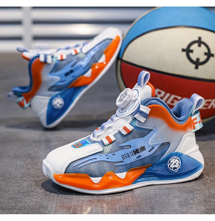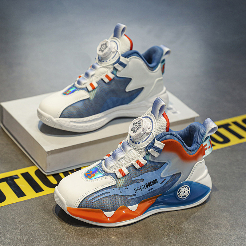 Zapatos de botón giratorio para niños zapatos deportivos 2025 nuevos zapatos de baloncesto infantiles primavera y otoño zapatos para niños guapos zapatos para correr