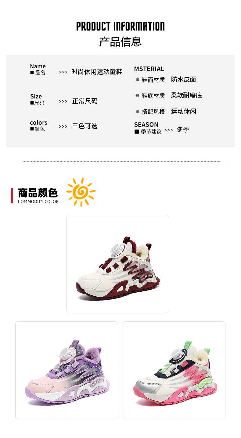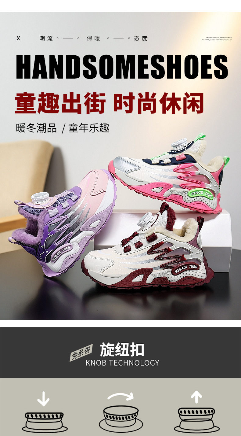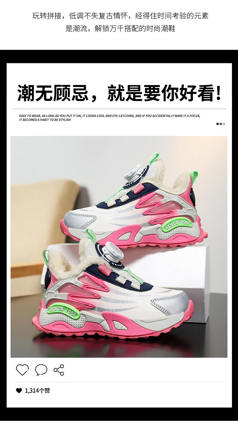 Zapatos de niñas de invierno nuevos zapatos de algodón, zapatos casuales para niños antideslizantes, calentamiento, zapatos deportivos para niños mayores