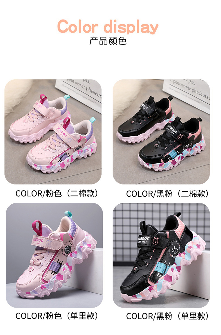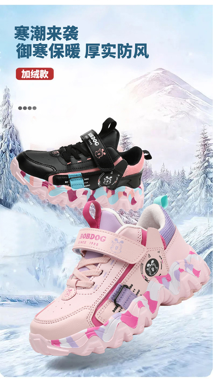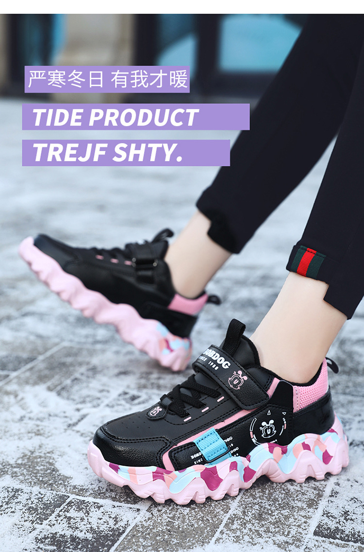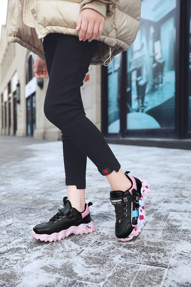 Babu Bean zapatos para niños zapatos deportivos de niñas otoño y invierno cuero impermeable calentamiento zapatos de algodón con lana gruesa zapatos de algodón ligeros