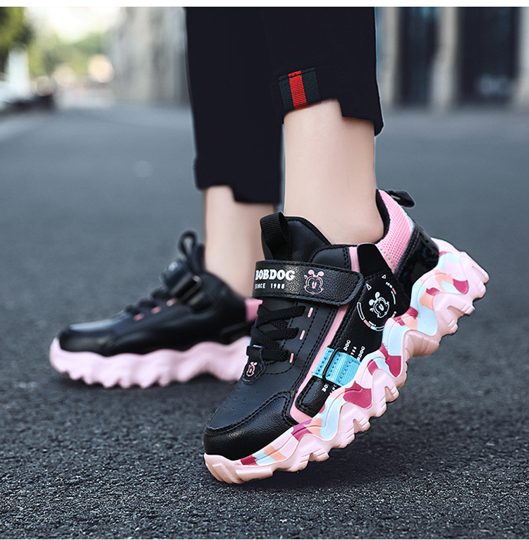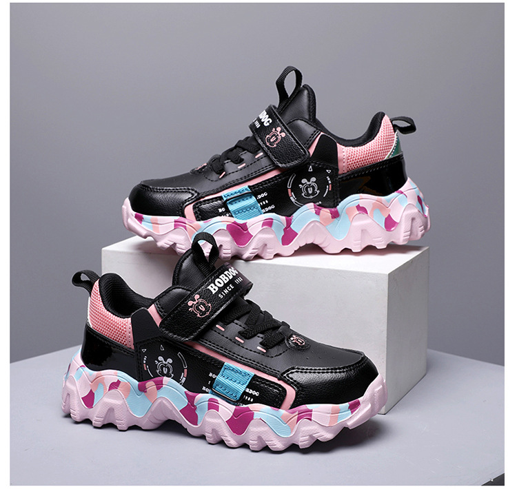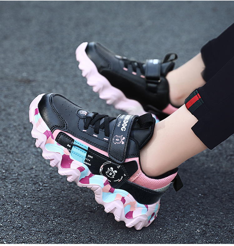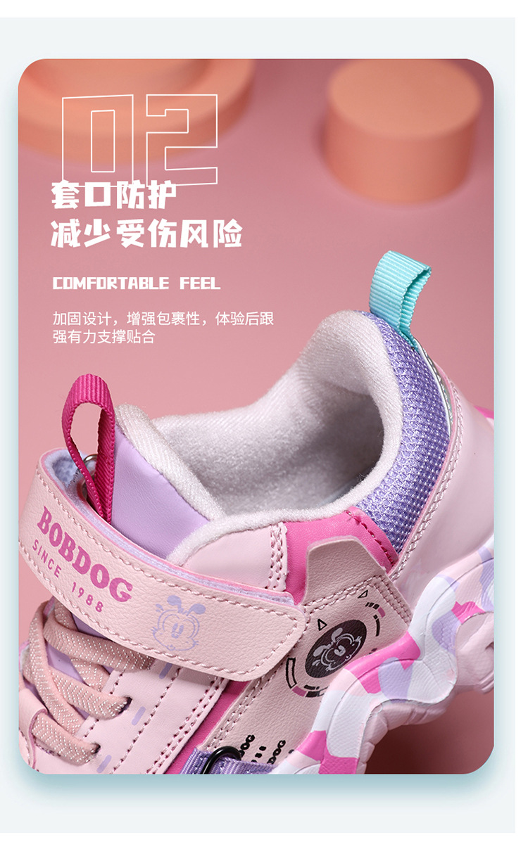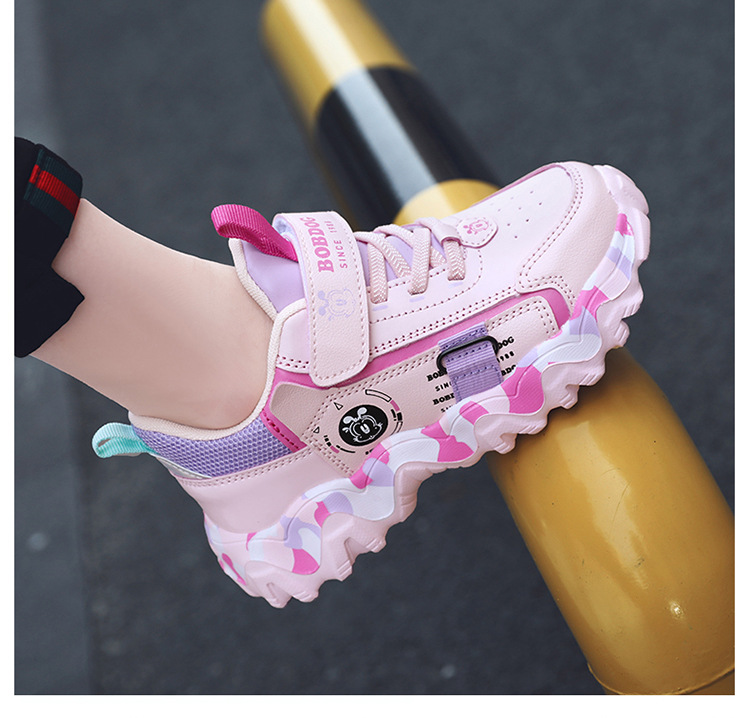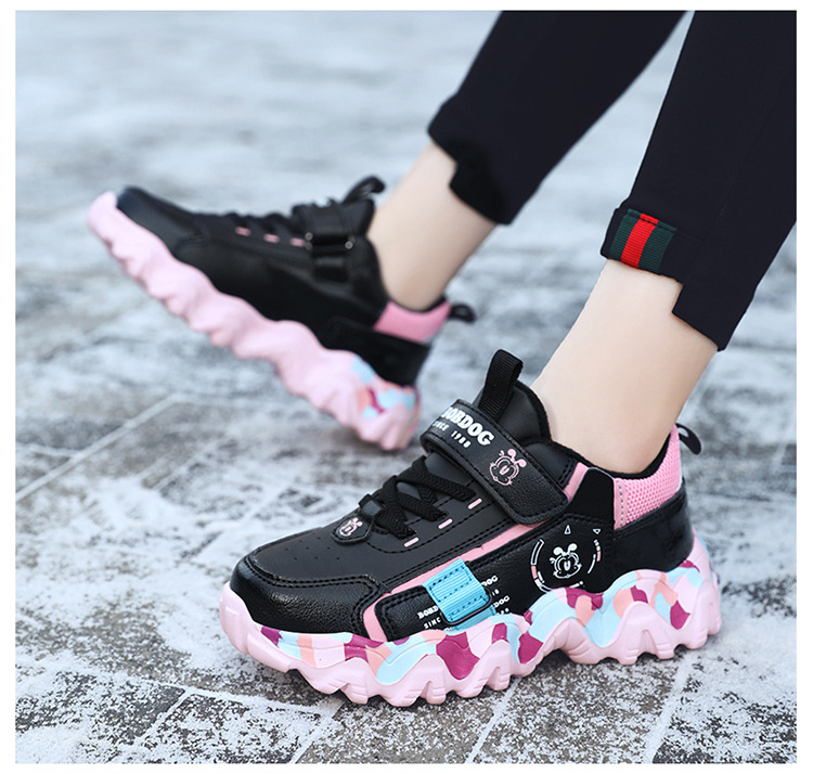 Babu Bean zapatos para niños zapatos deportivos de niñas otoño y invierno cuero impermeable calentamiento zapatos de algodón con lana gruesa zapatos de algodón ligeros