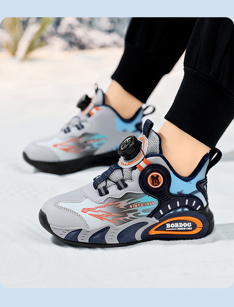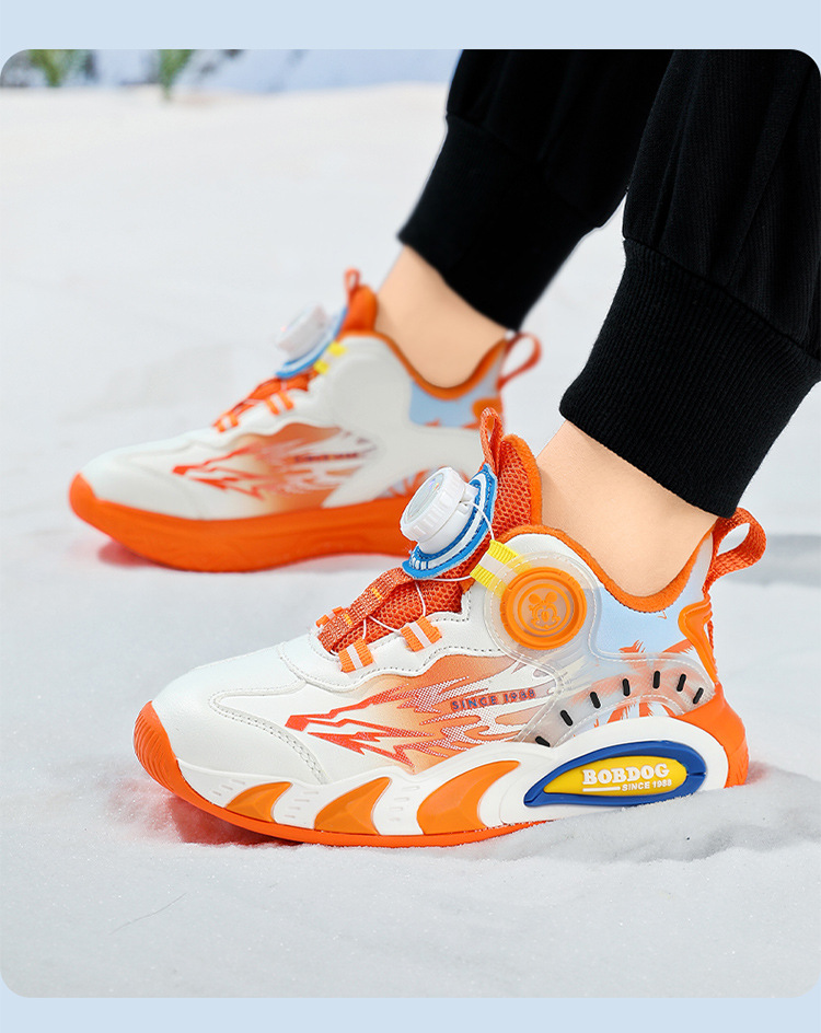 Babu Bean zapatos de algodón para niños invierno nuevos zapatos de baloncesto de cuero antideslizante para niños con calentamiento de algodón para niños