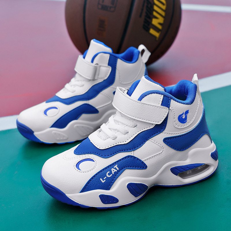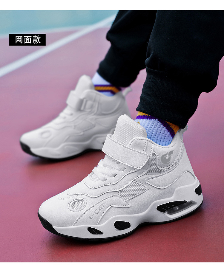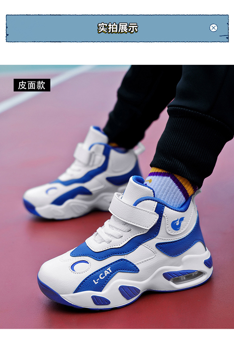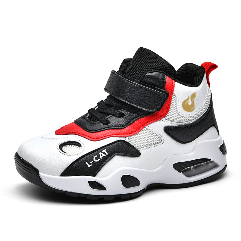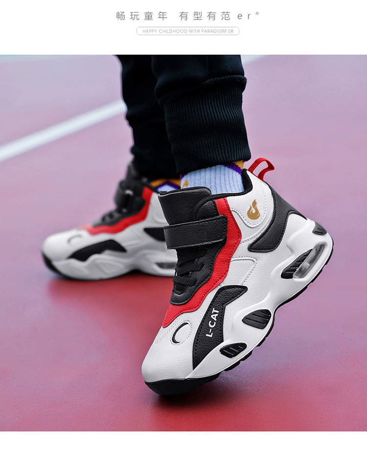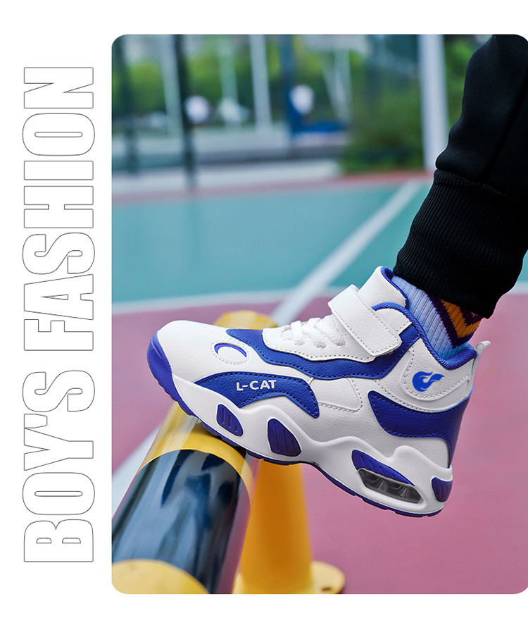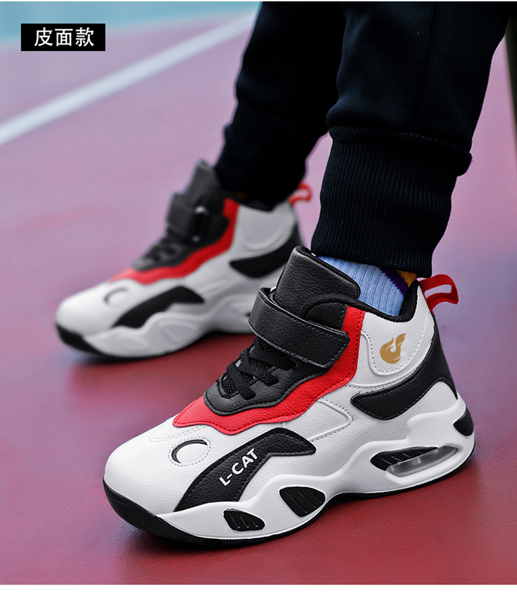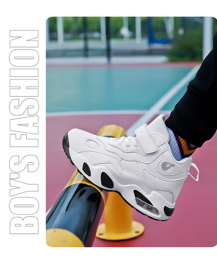 Fábrica directa de zapatos de baloncesto infantil primavera cuero zapatos casuales velcro antideslizante aire al aire libre zapatos deportivos