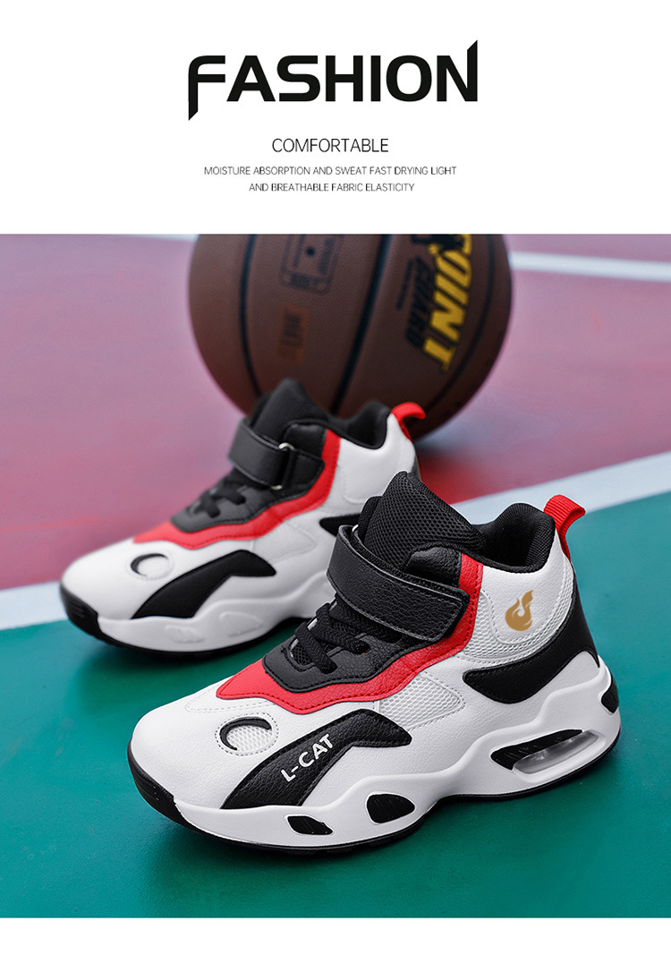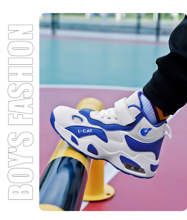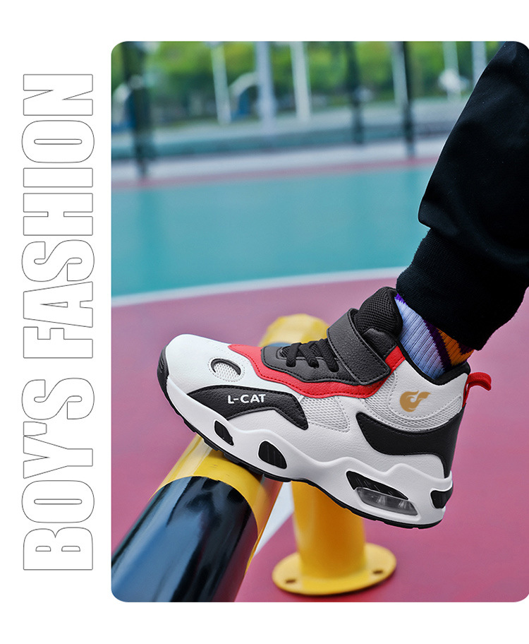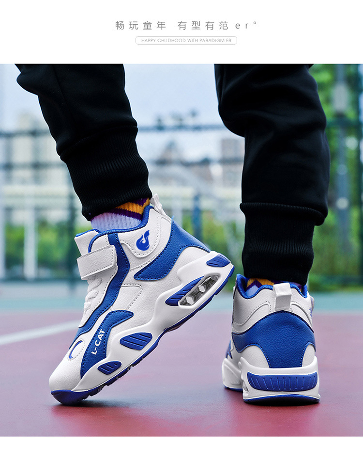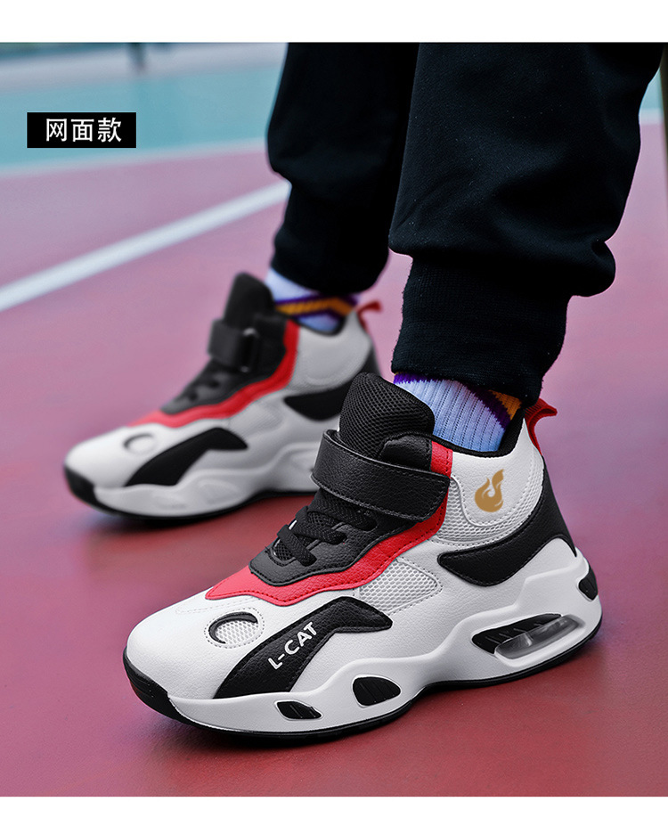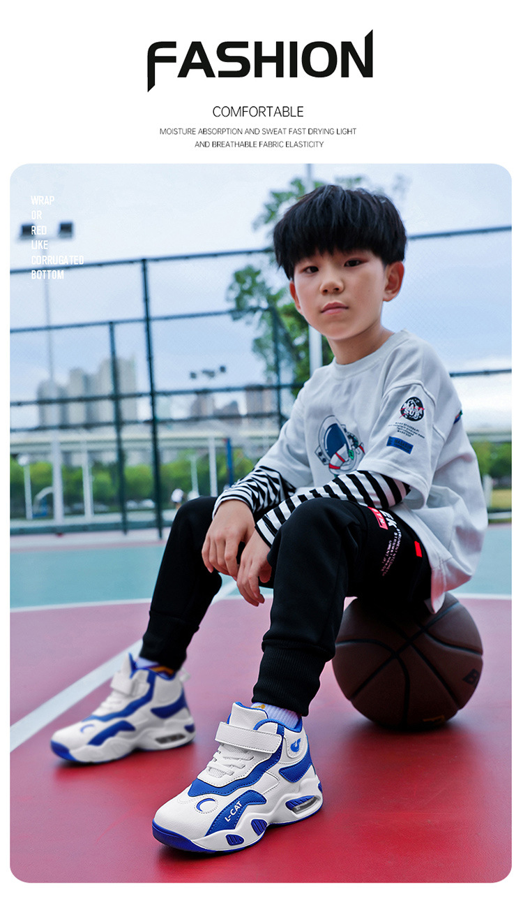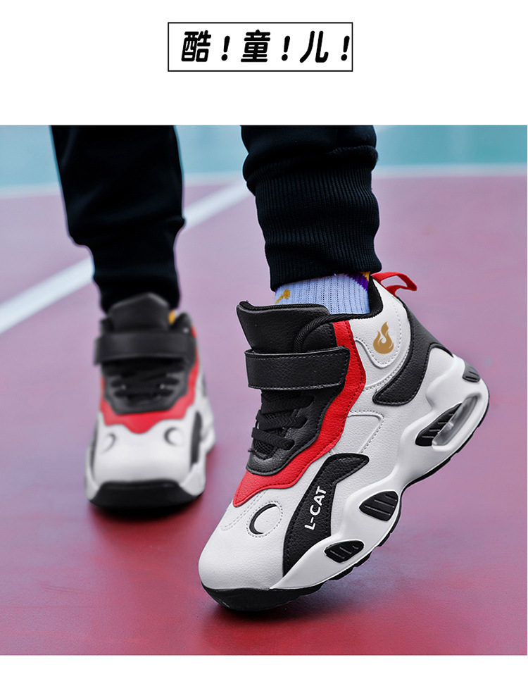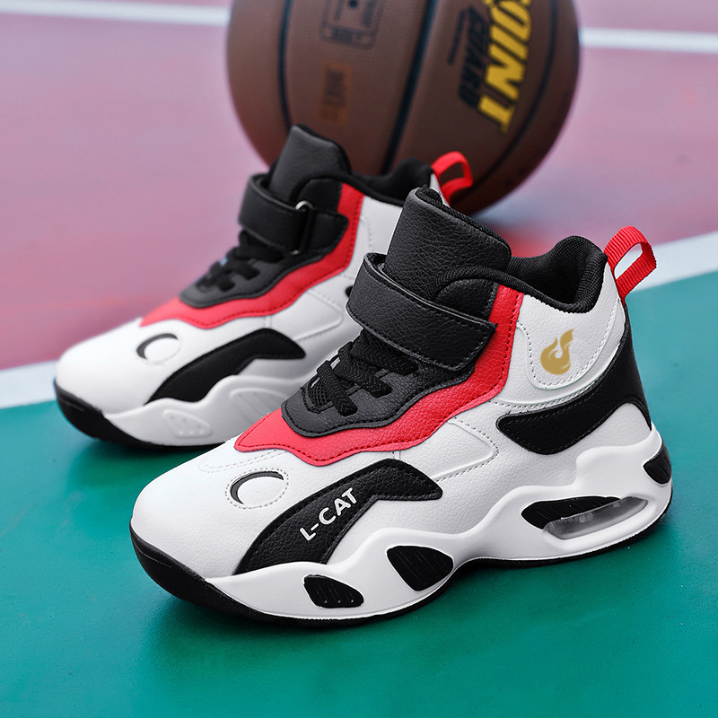 Fábrica directa de zapatos de baloncesto infantil primavera cuero zapatos casuales velcro antideslizante aire al aire libre zapatos deportivos