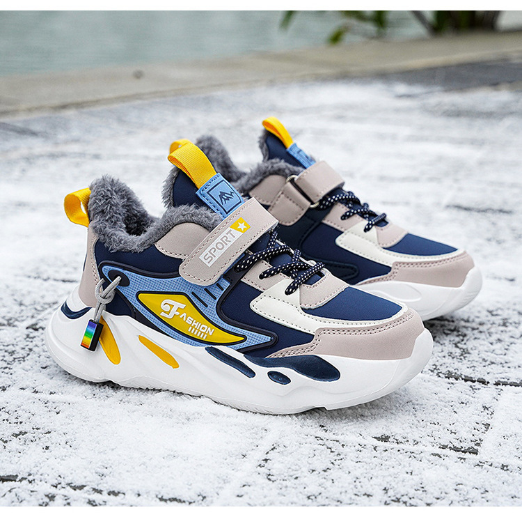 Zapatos de niño de invierno nuevos zapatos deportivos de algodón de piel gruesa para niños, zapatos de running para niños