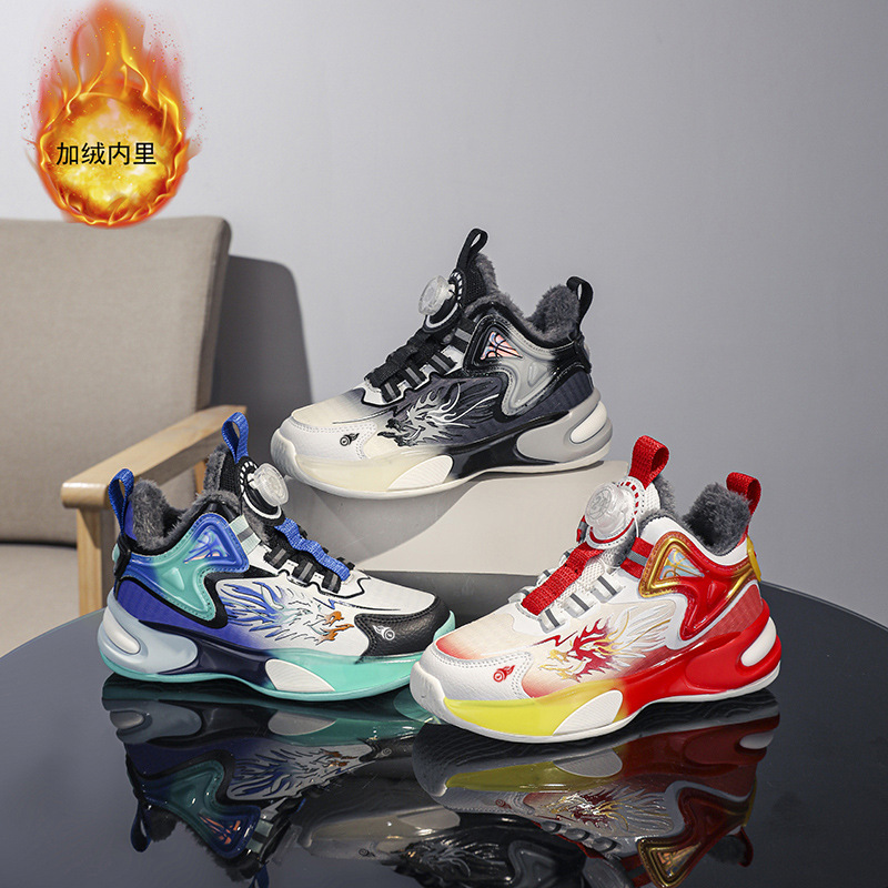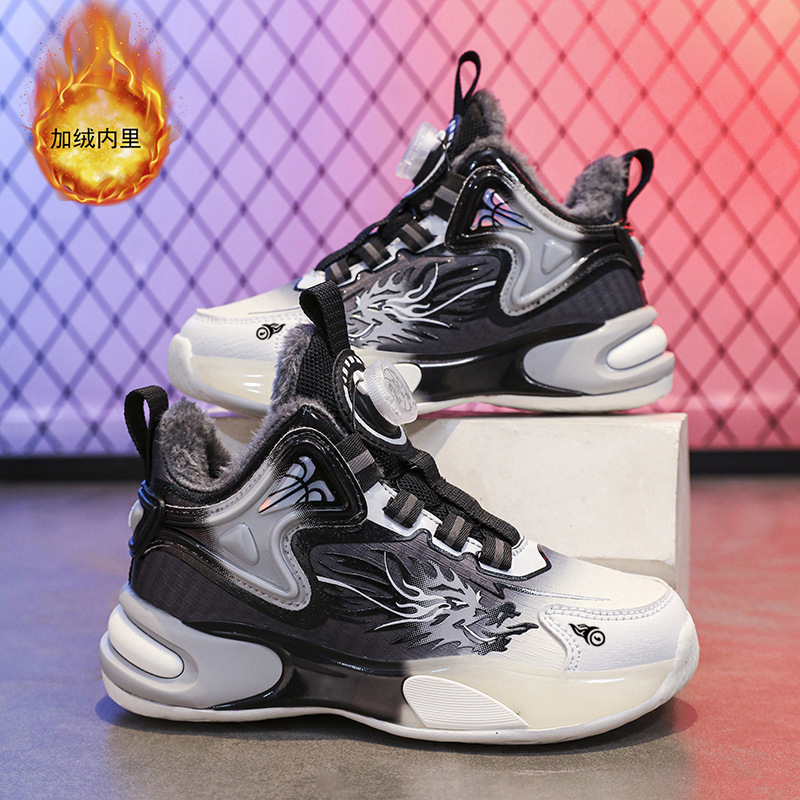 Zapatos de baloncesto para niños otoño y invierno nuevos zapatos de algodón para niños grandes antiderrapante impermeable zapatos de cuero