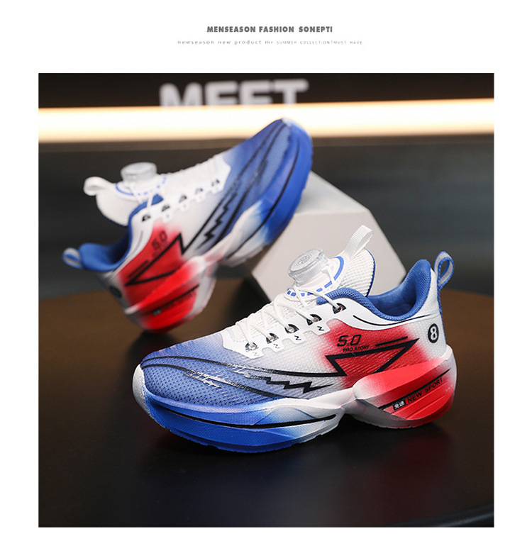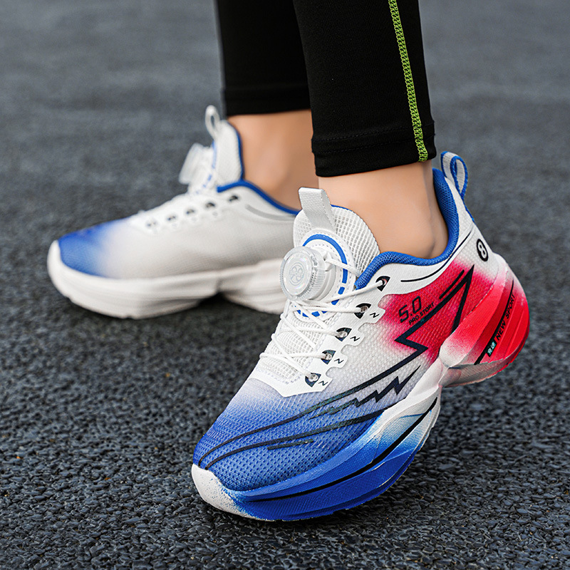 2025 primavera nueva educación física de los estudiantes de primaria zapatos para correr conejo rojo zapatos deportivos para niños botones de red de suela suave