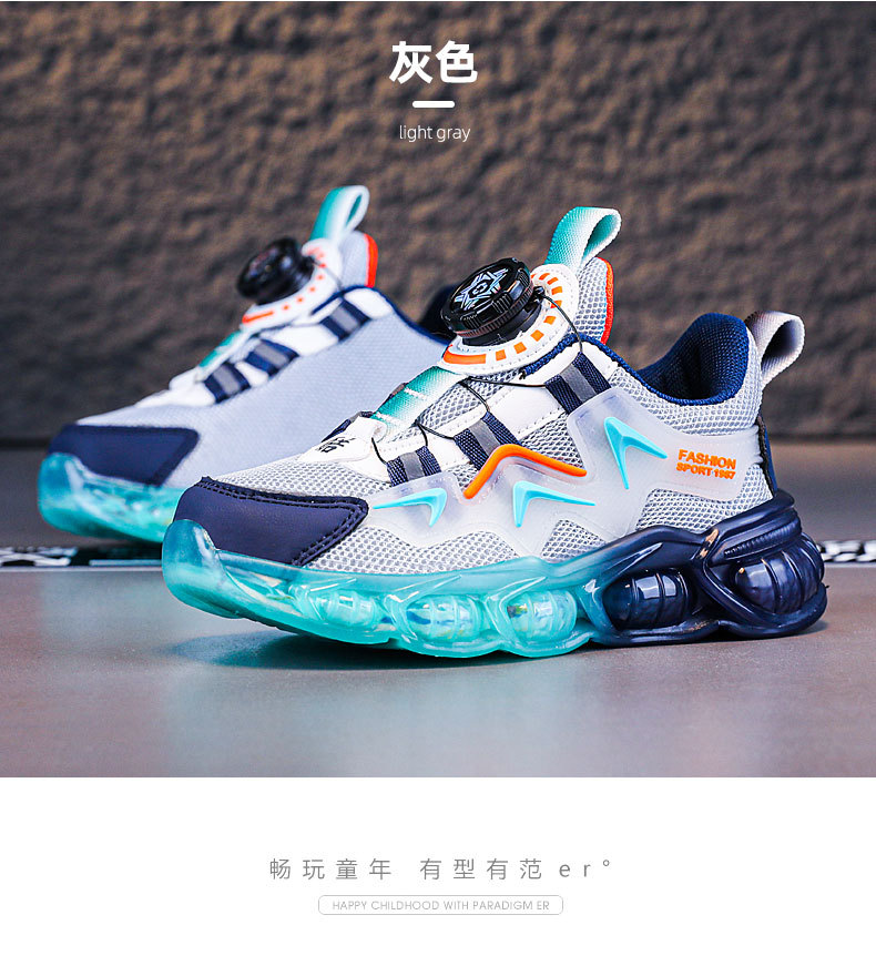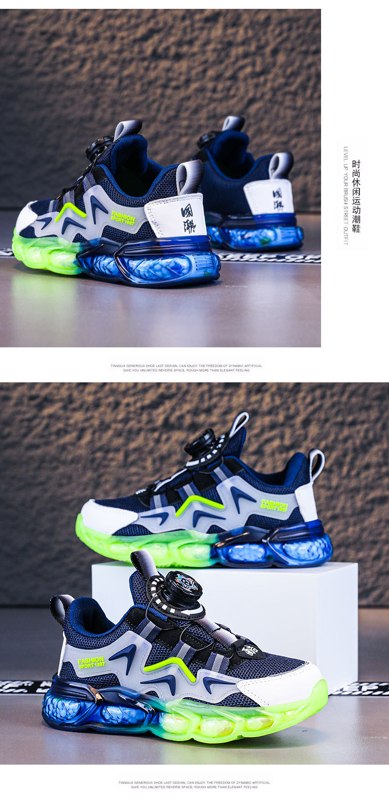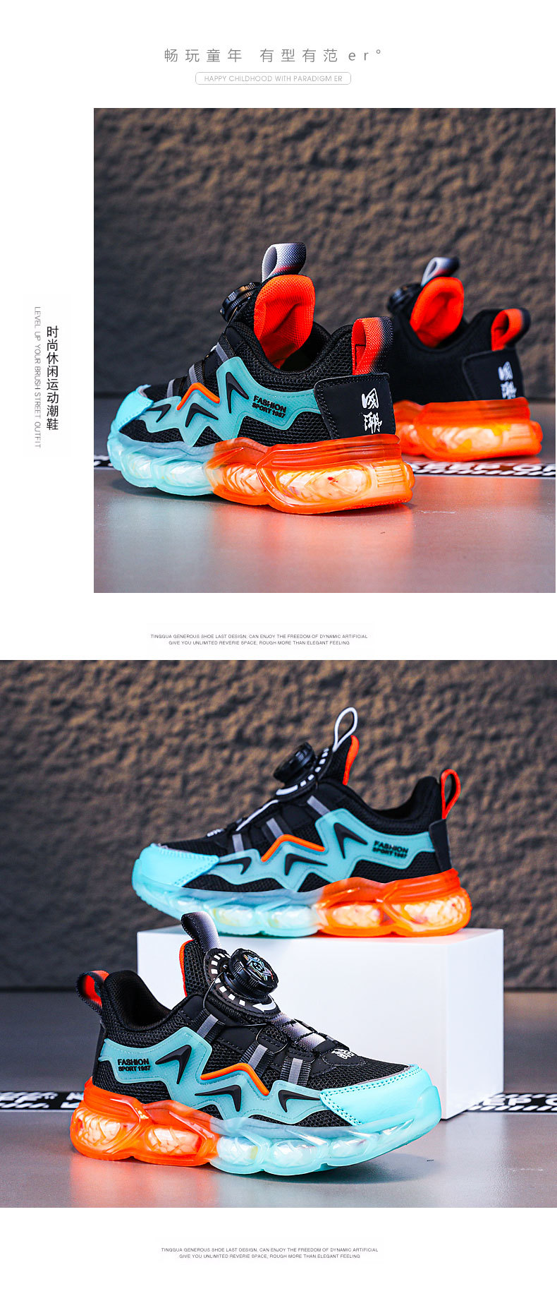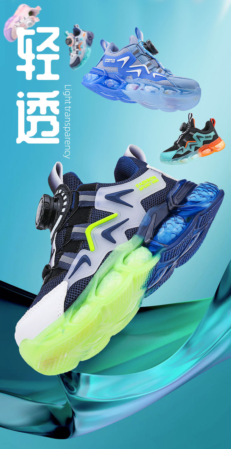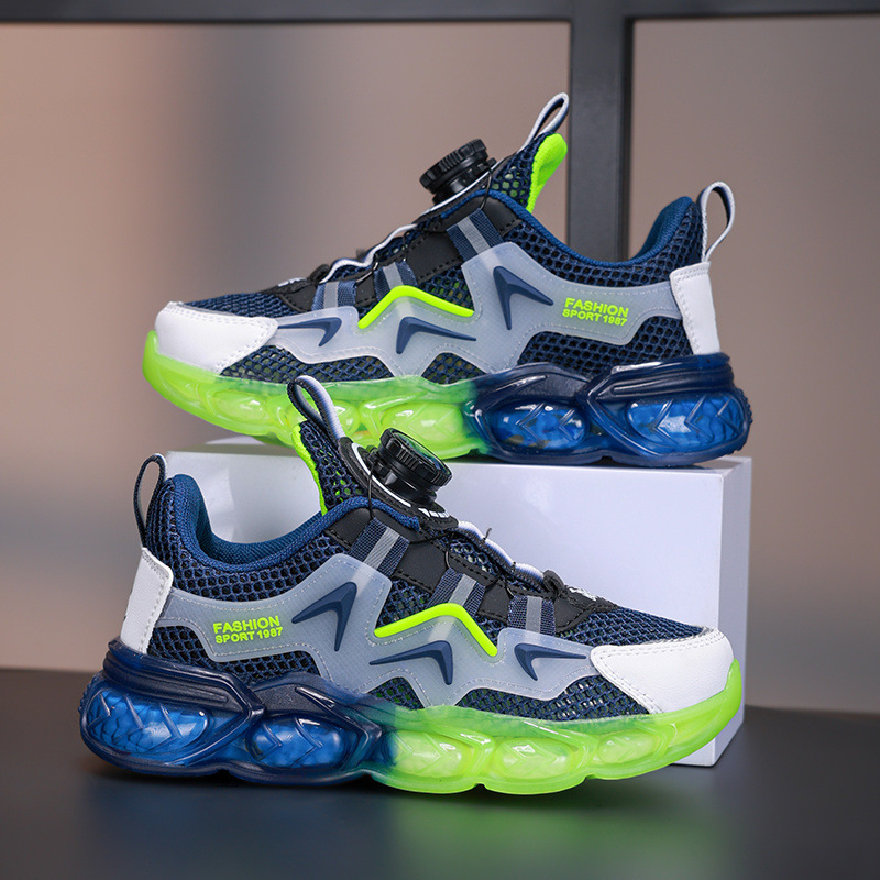2025 verano nuevo botón giratorio zapatos de malla estudiantes zapatos de correr ligeros zapatos transpirables ociosos para niños