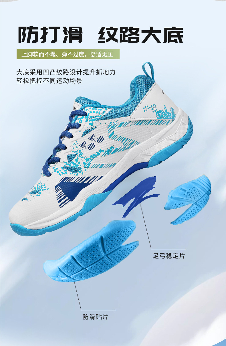 Transfronterizos de tamaño grande nuevos zapatos deportivos con suela de goma, entrenamiento de bádminton, zapatos de tenis antideslizantes y transpirables, zapatos multi-escenarios